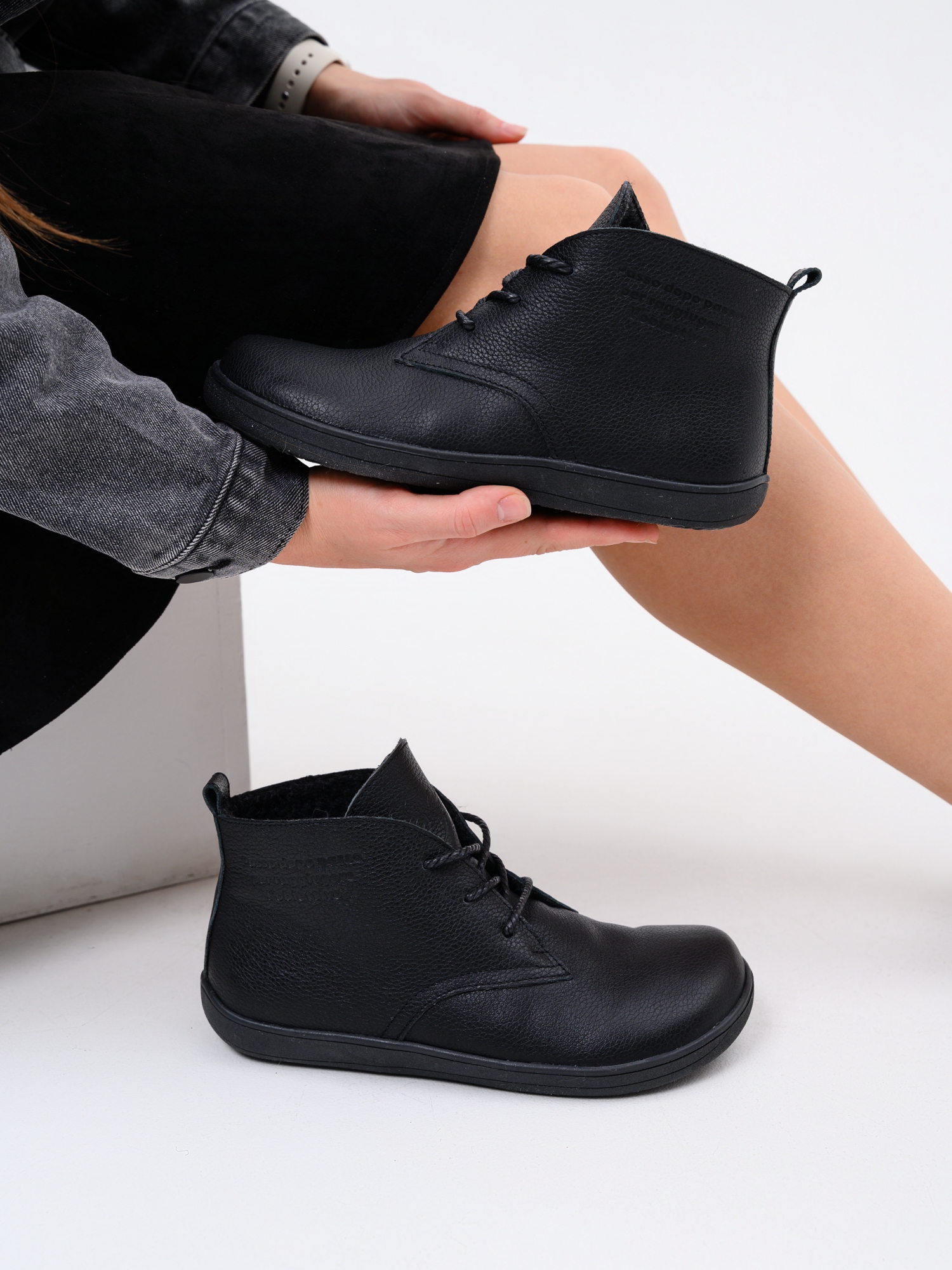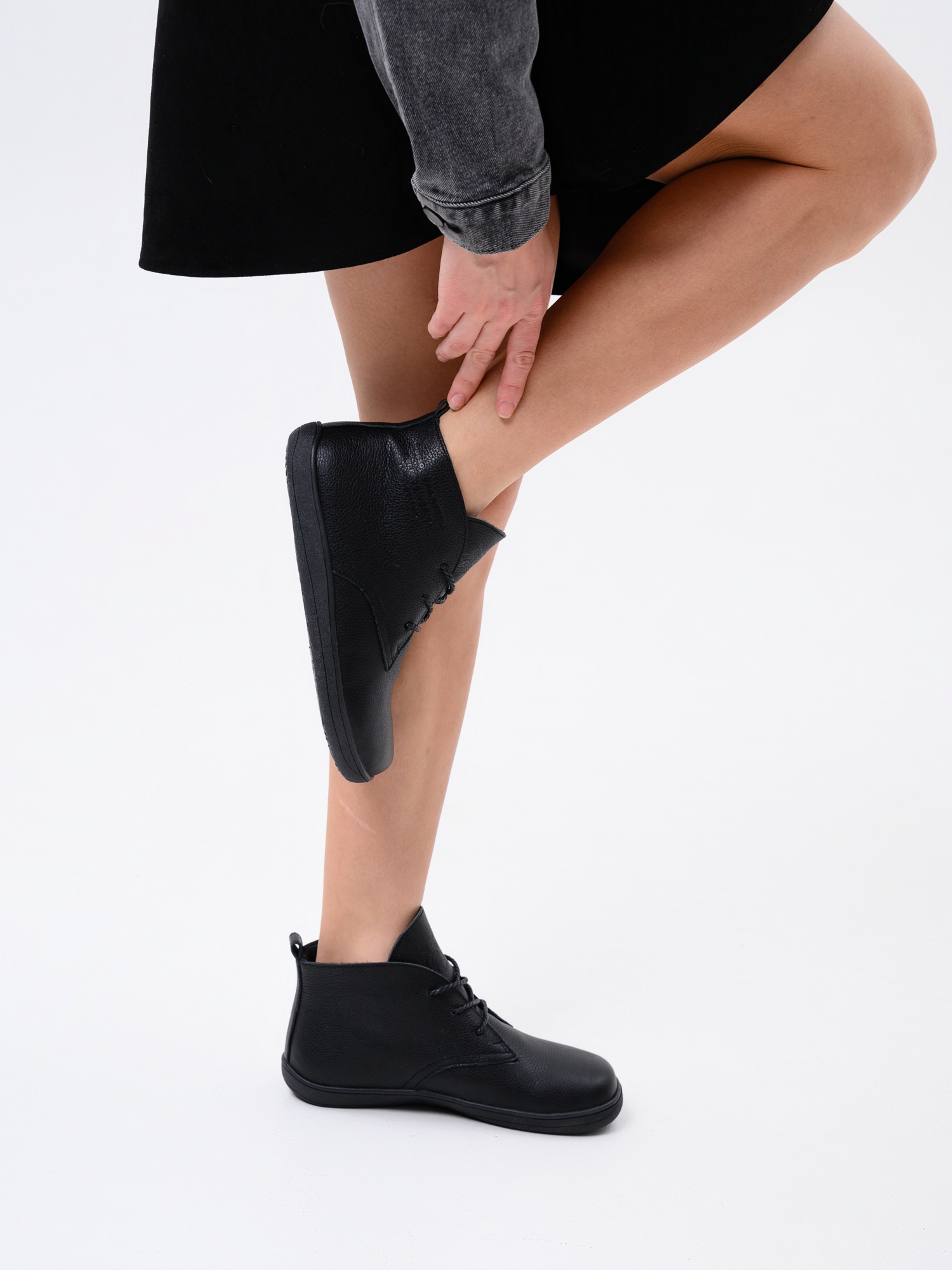 Ботинки босоногие кожаные черные