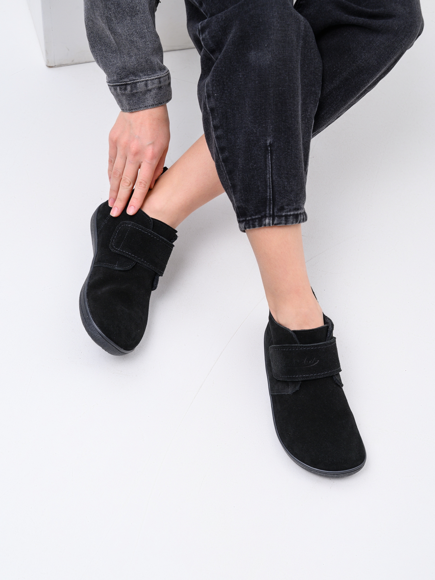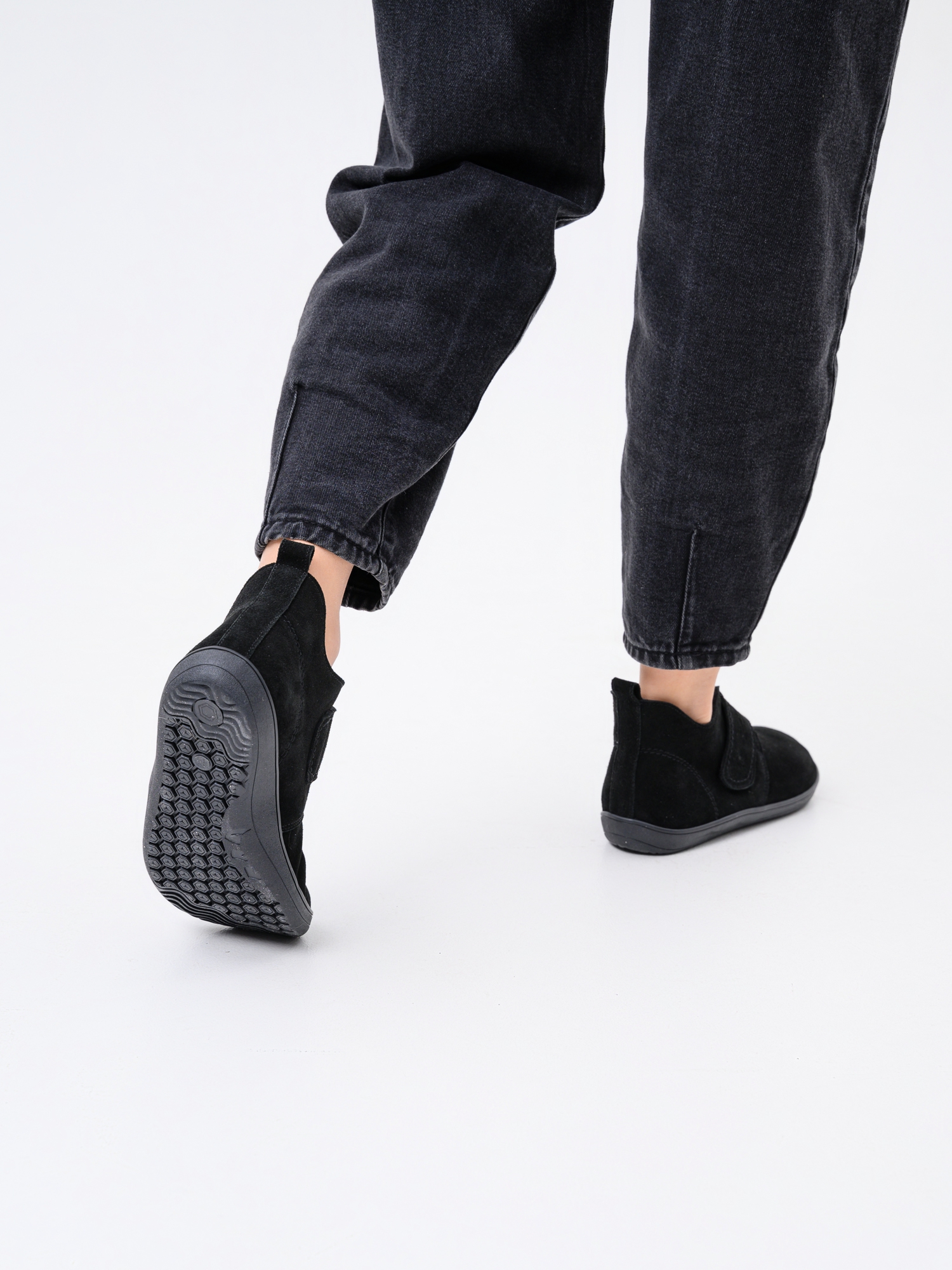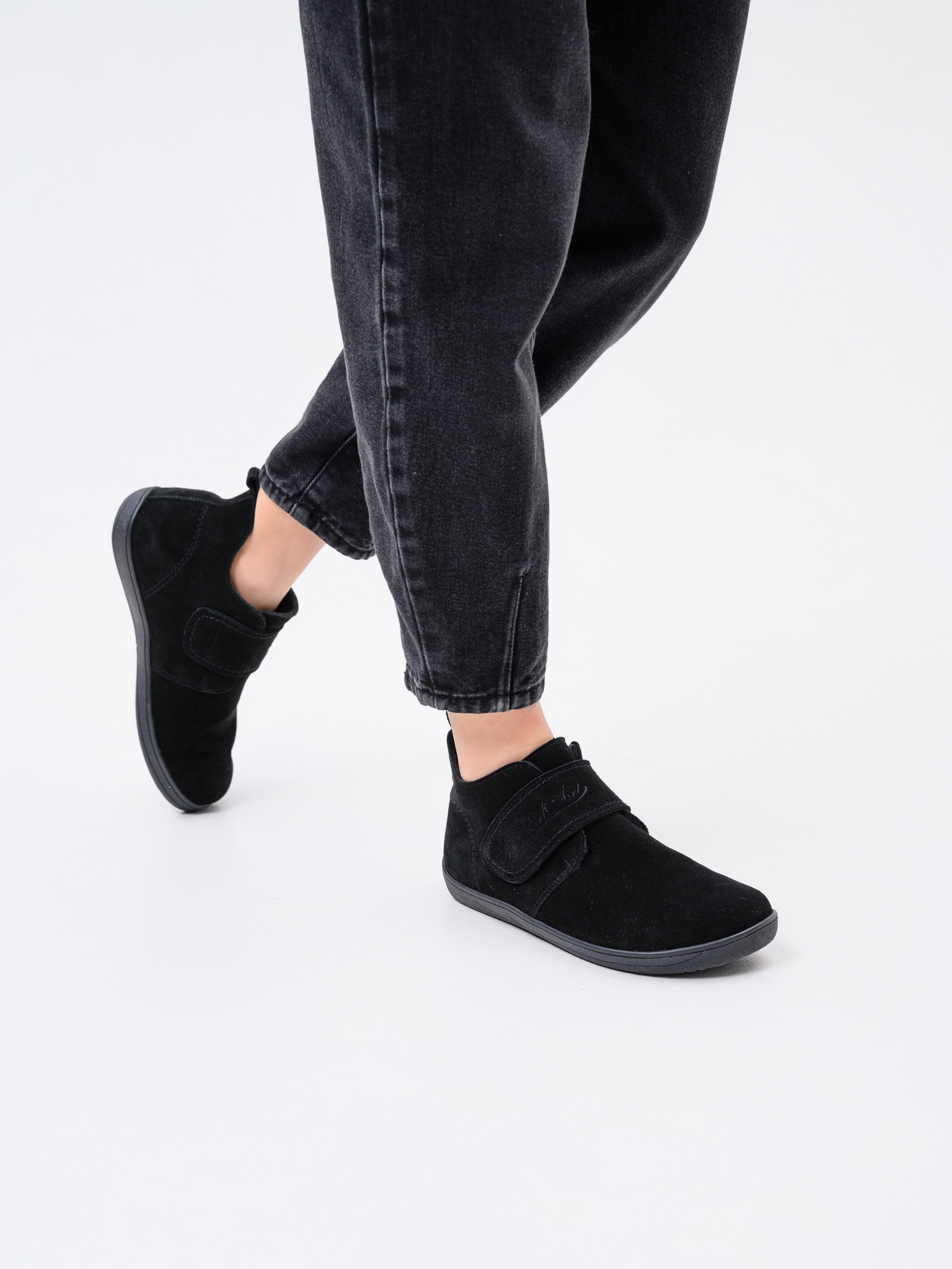 Ботинки босоногие на липучке черные