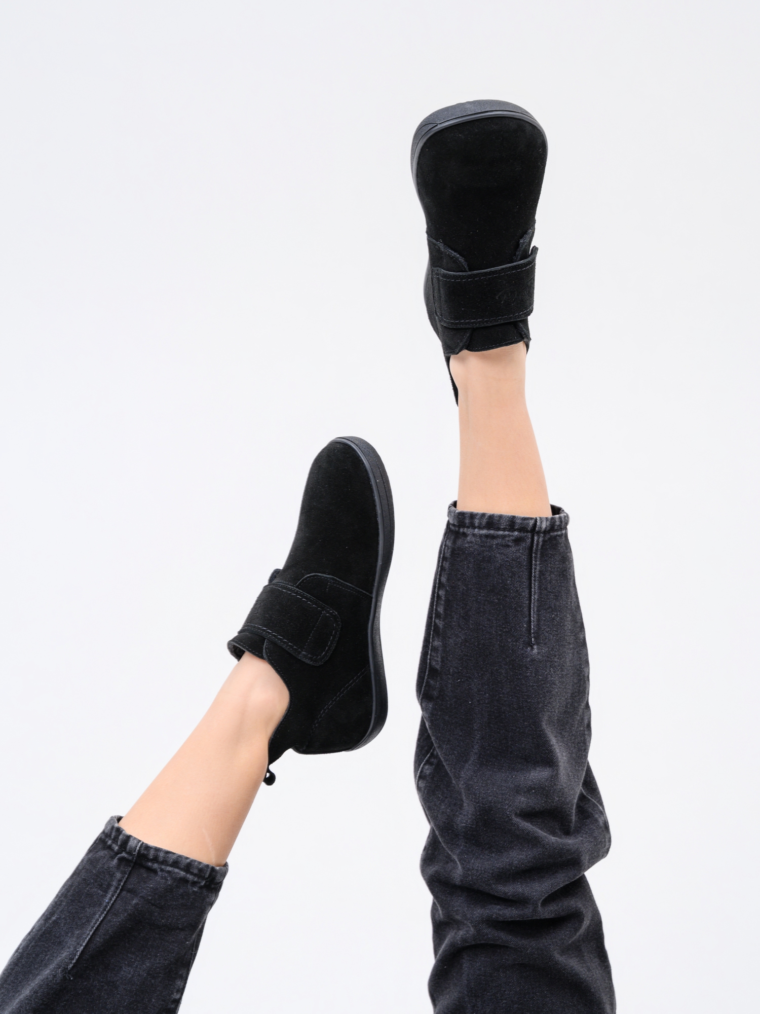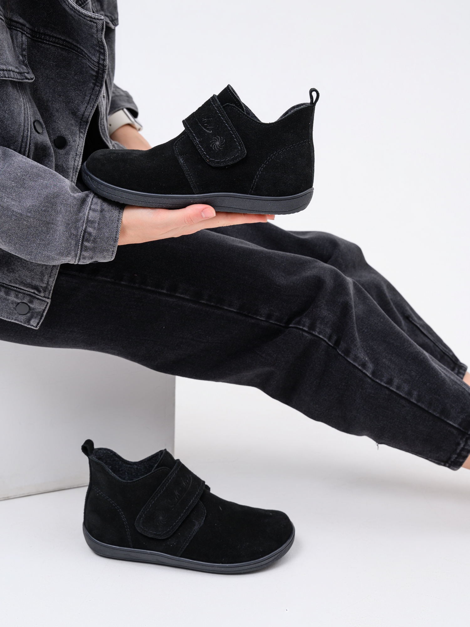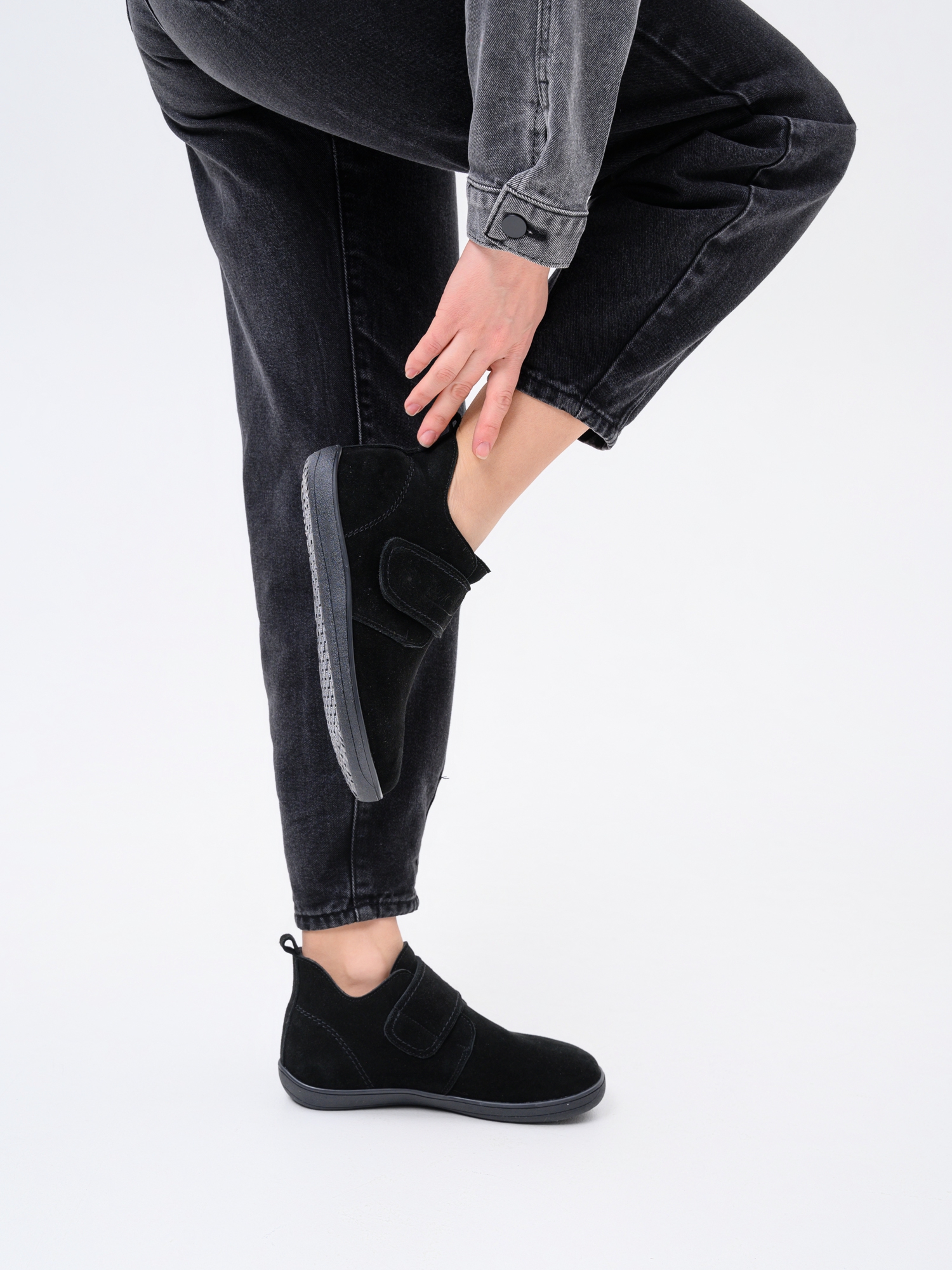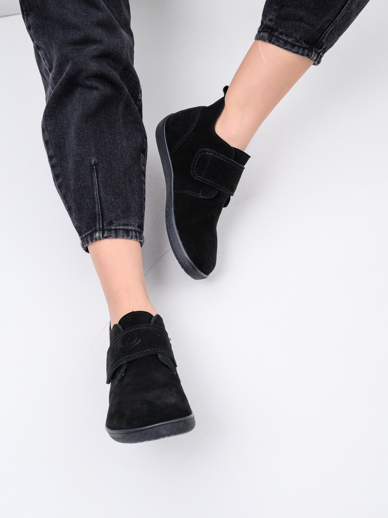 Ботинки босоногие на липучке черные