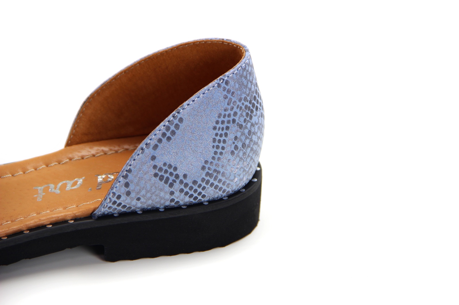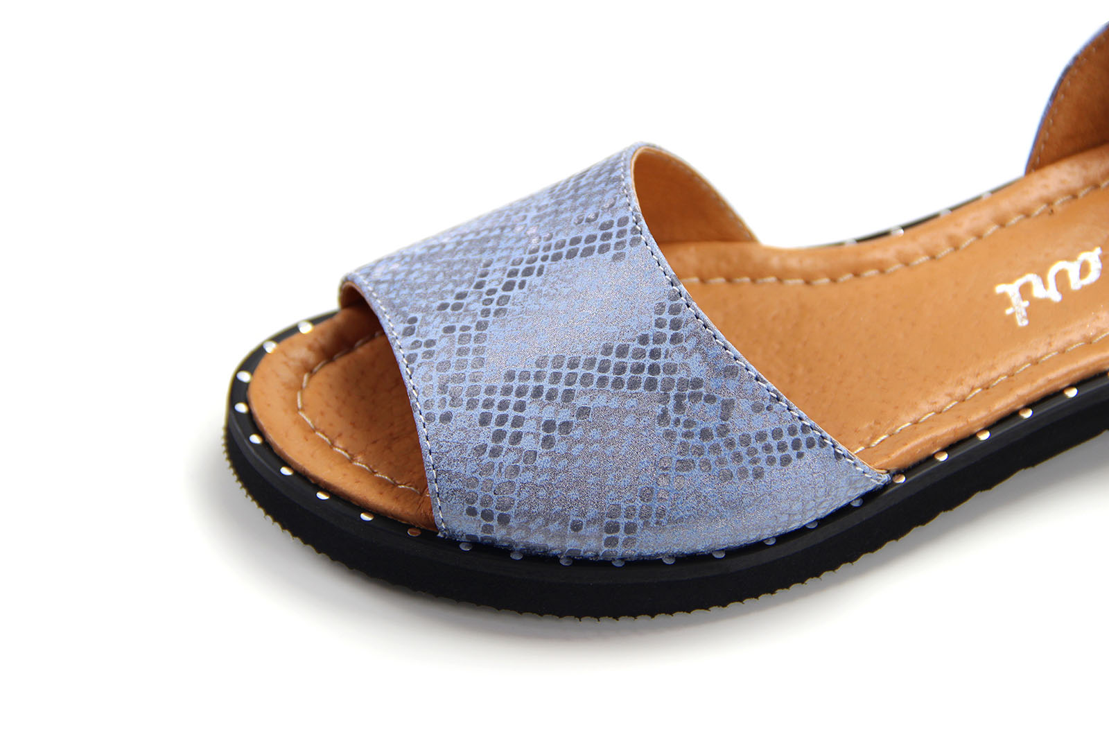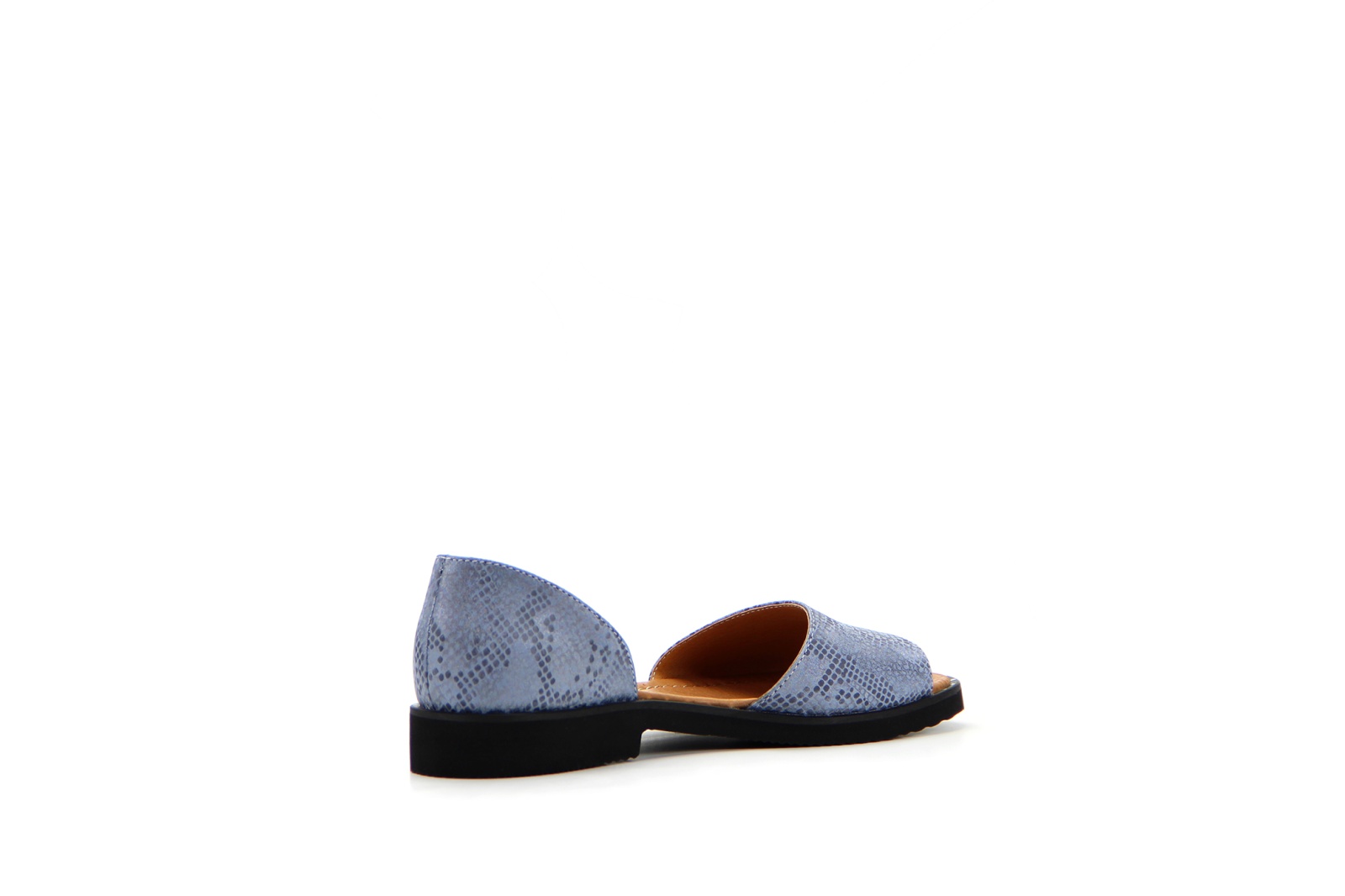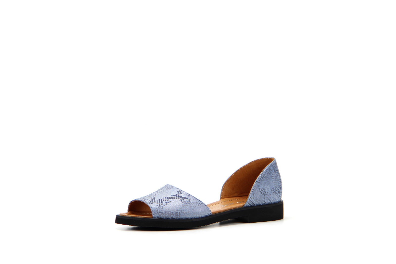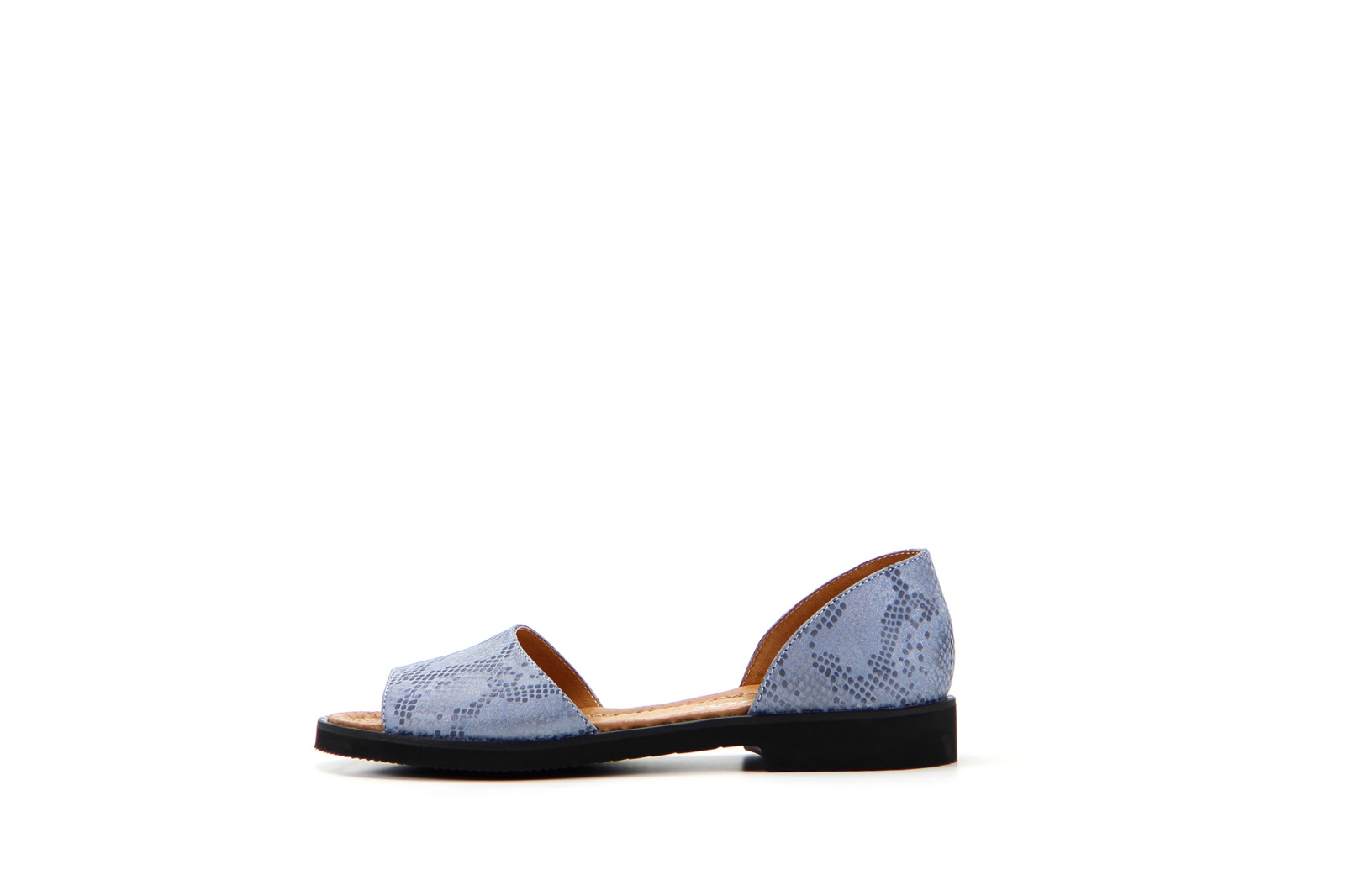 Босоножки кожаные голубые с принтом змеи