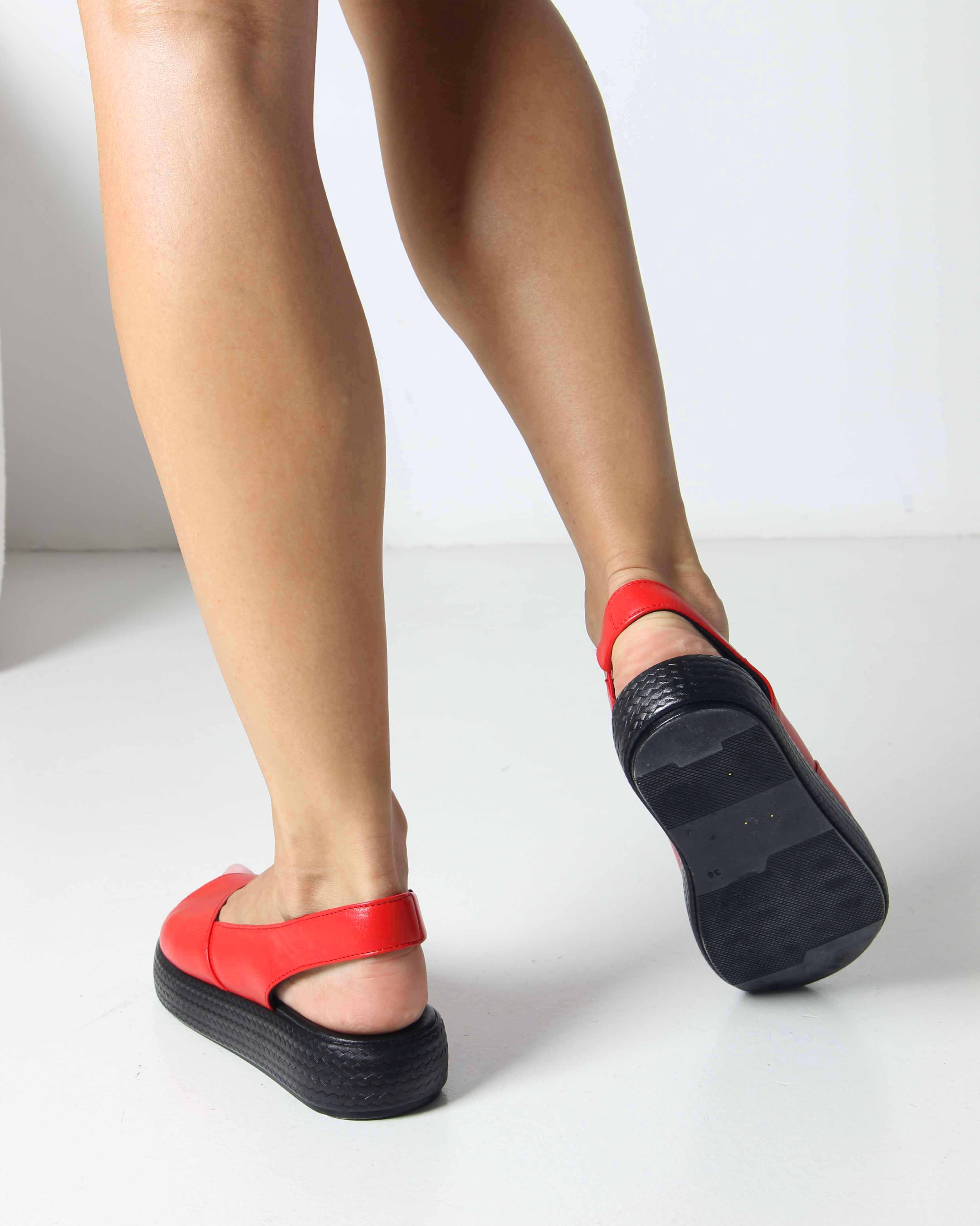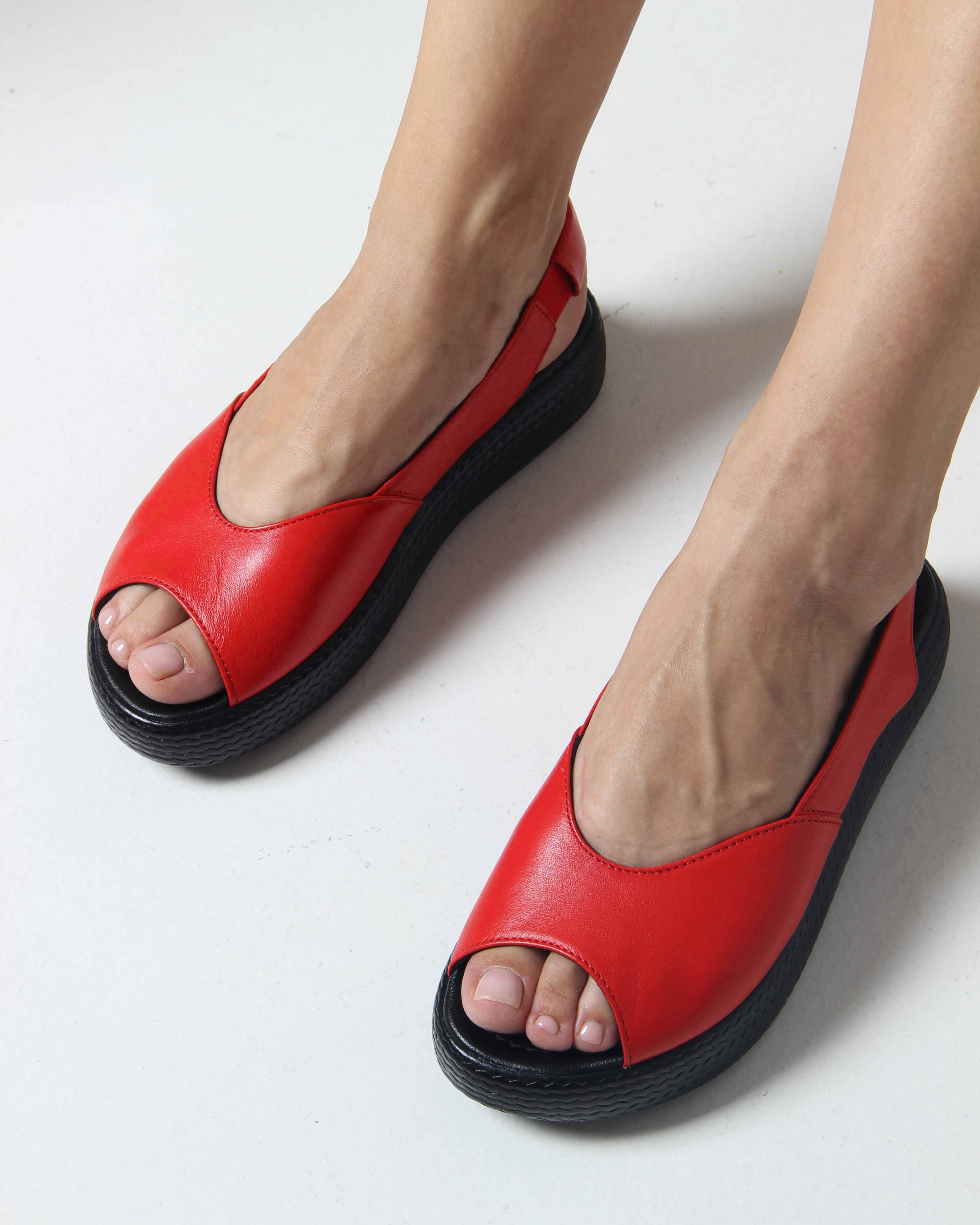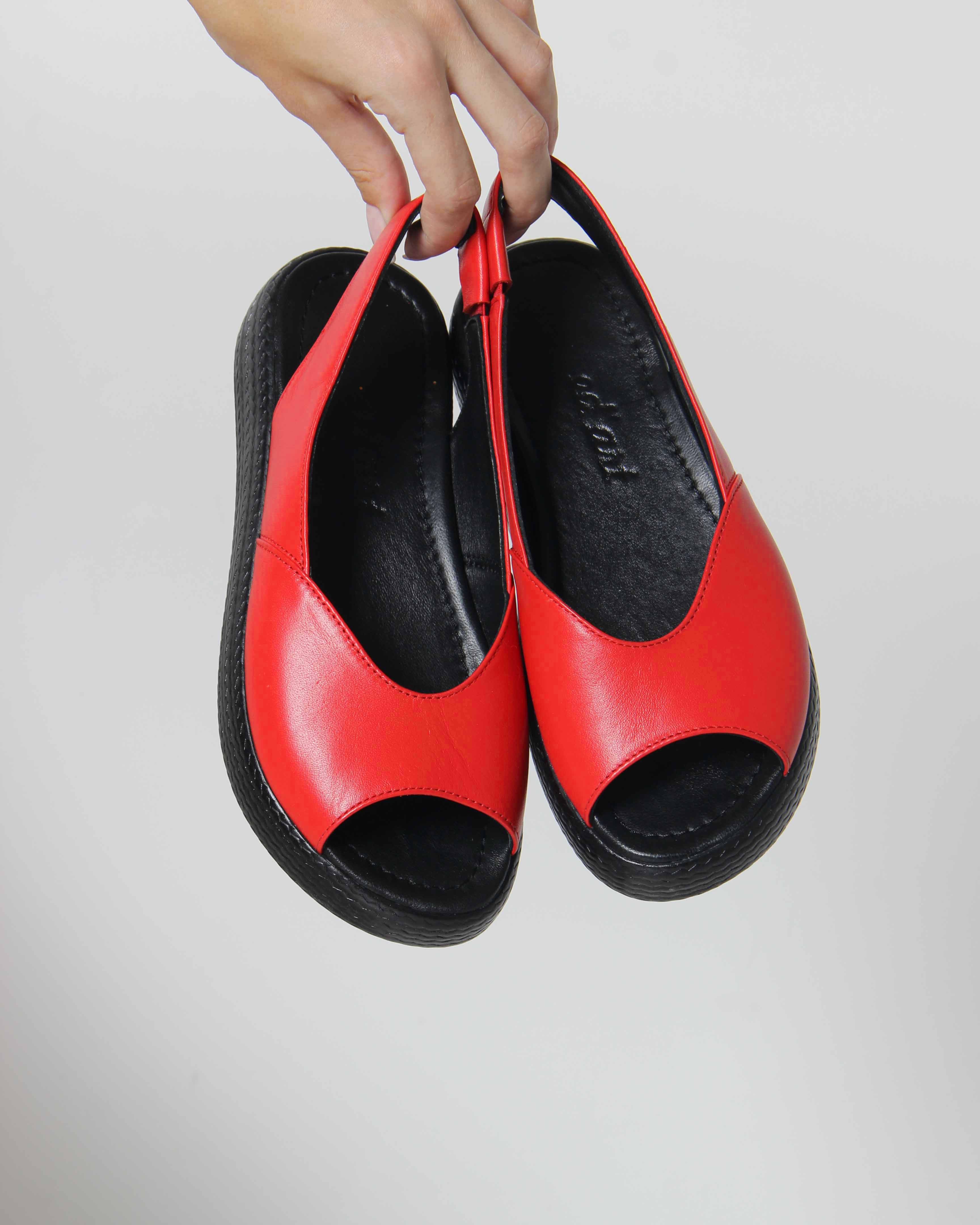 Босоножки кожаные красные