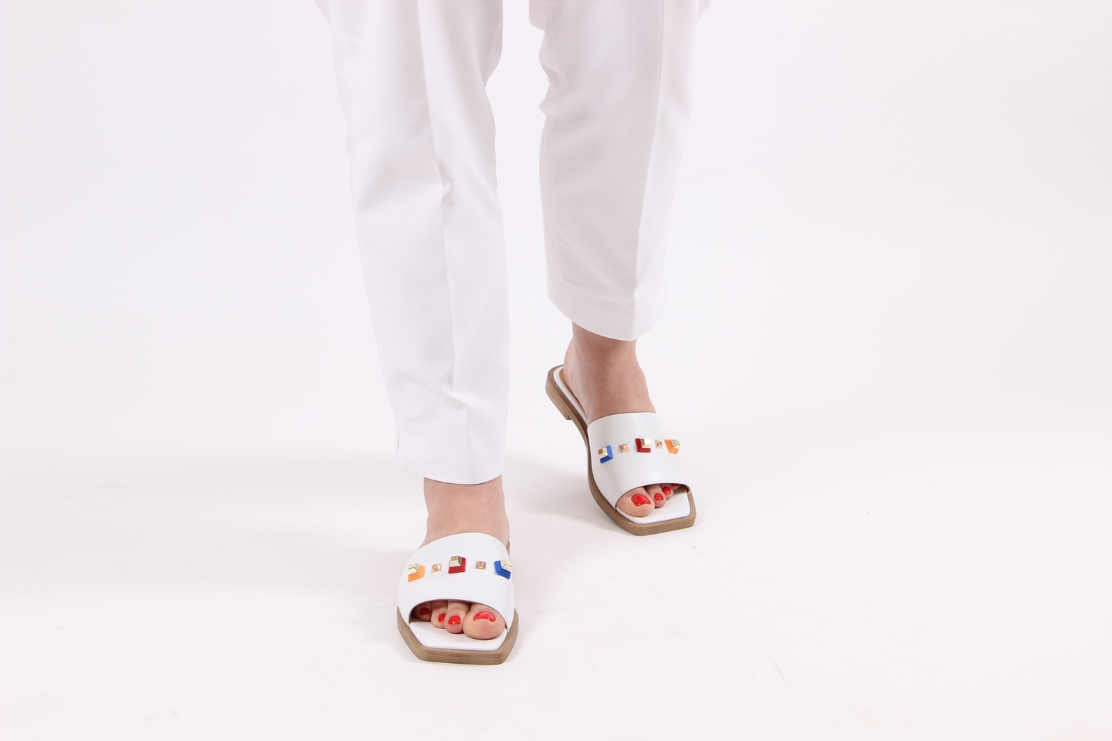 Мюли кожаные белые