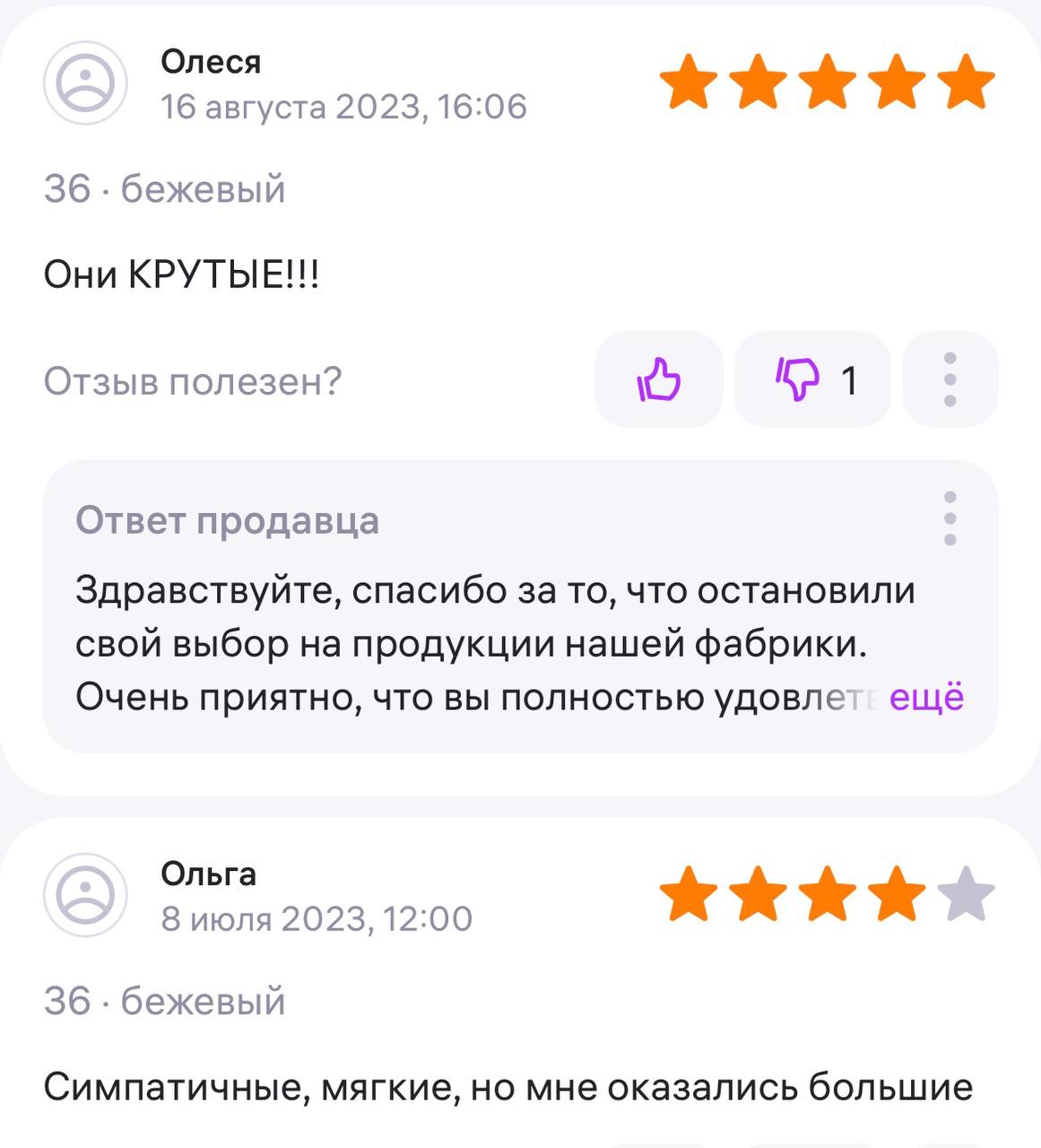 Ответ продавца