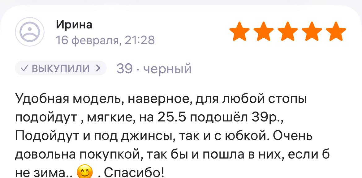 Ботинки хорошие, кажа мягкая, размеру соответствуют, но на пятке пришита заплатка из какой то пленки блесящей и когда первый раз померла она вся сморщилась и такое впечатление что сейчас лопнет. И я думаю со временем так и будет. Если бы не эта заплатка взяла бы удобные и мягкие