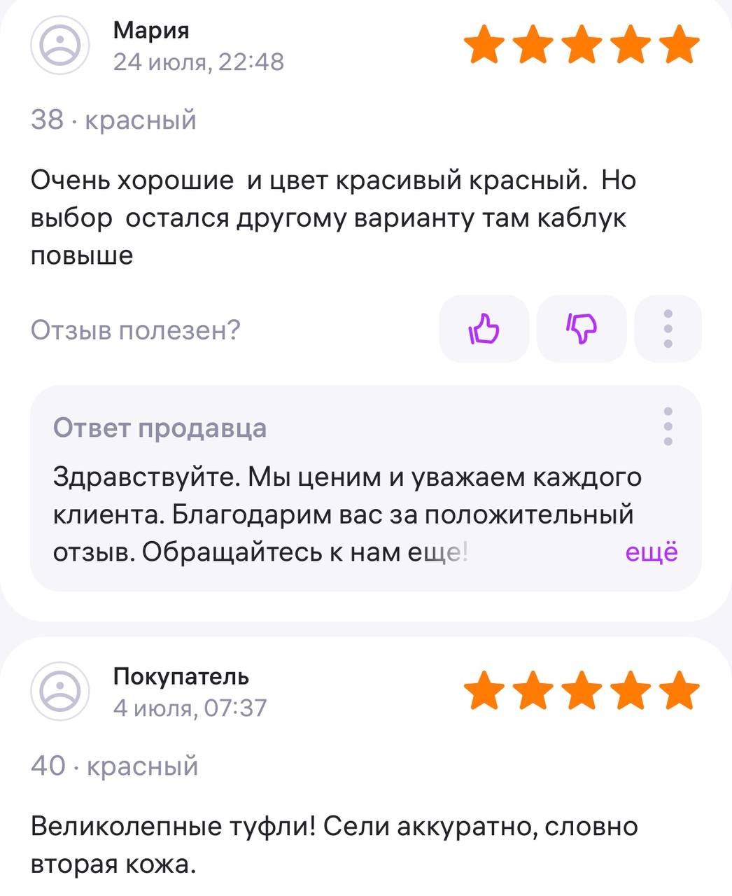 Ответ продавца