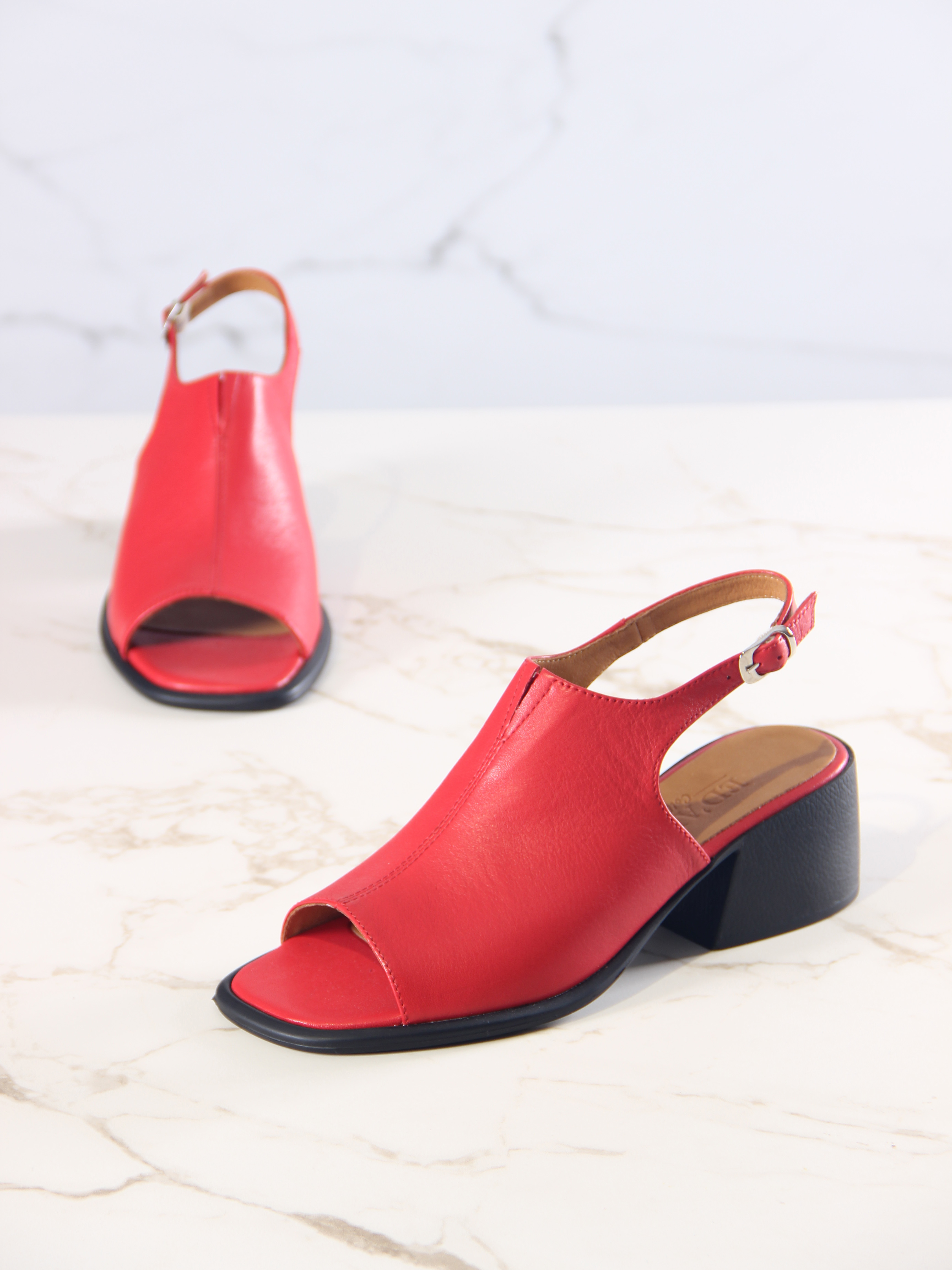 Босоножки кожаные красные