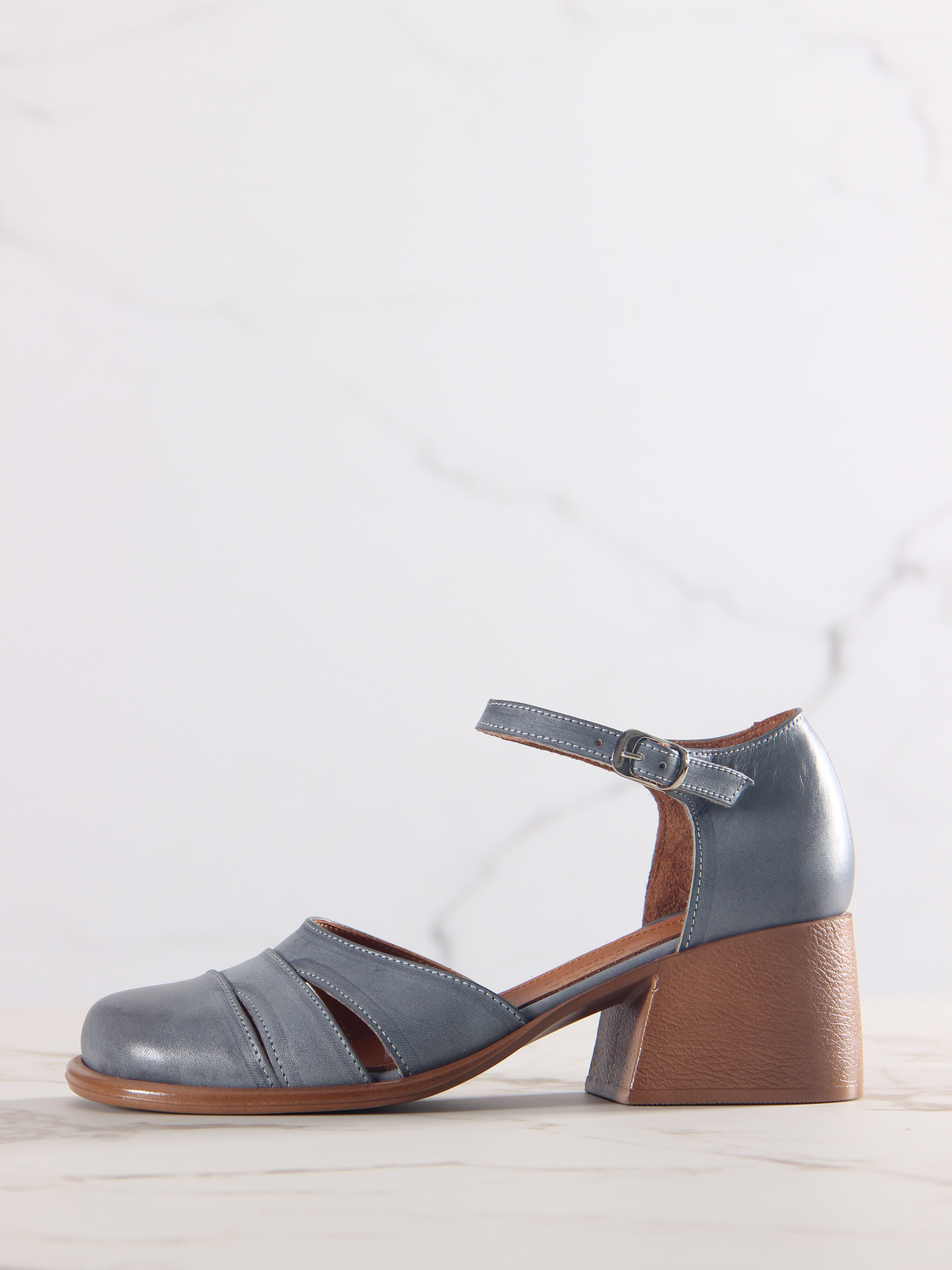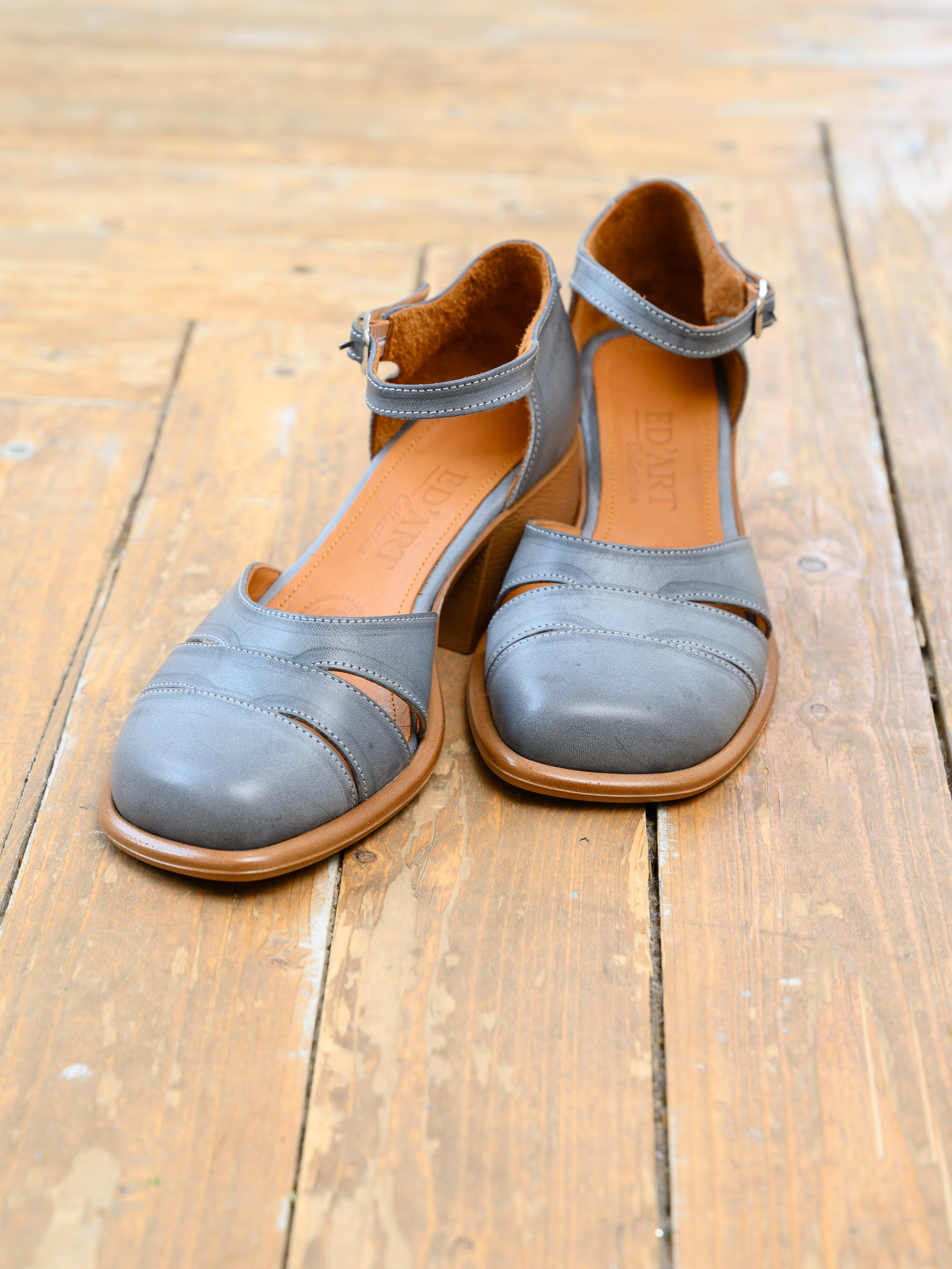 Босоножки кожаные серые