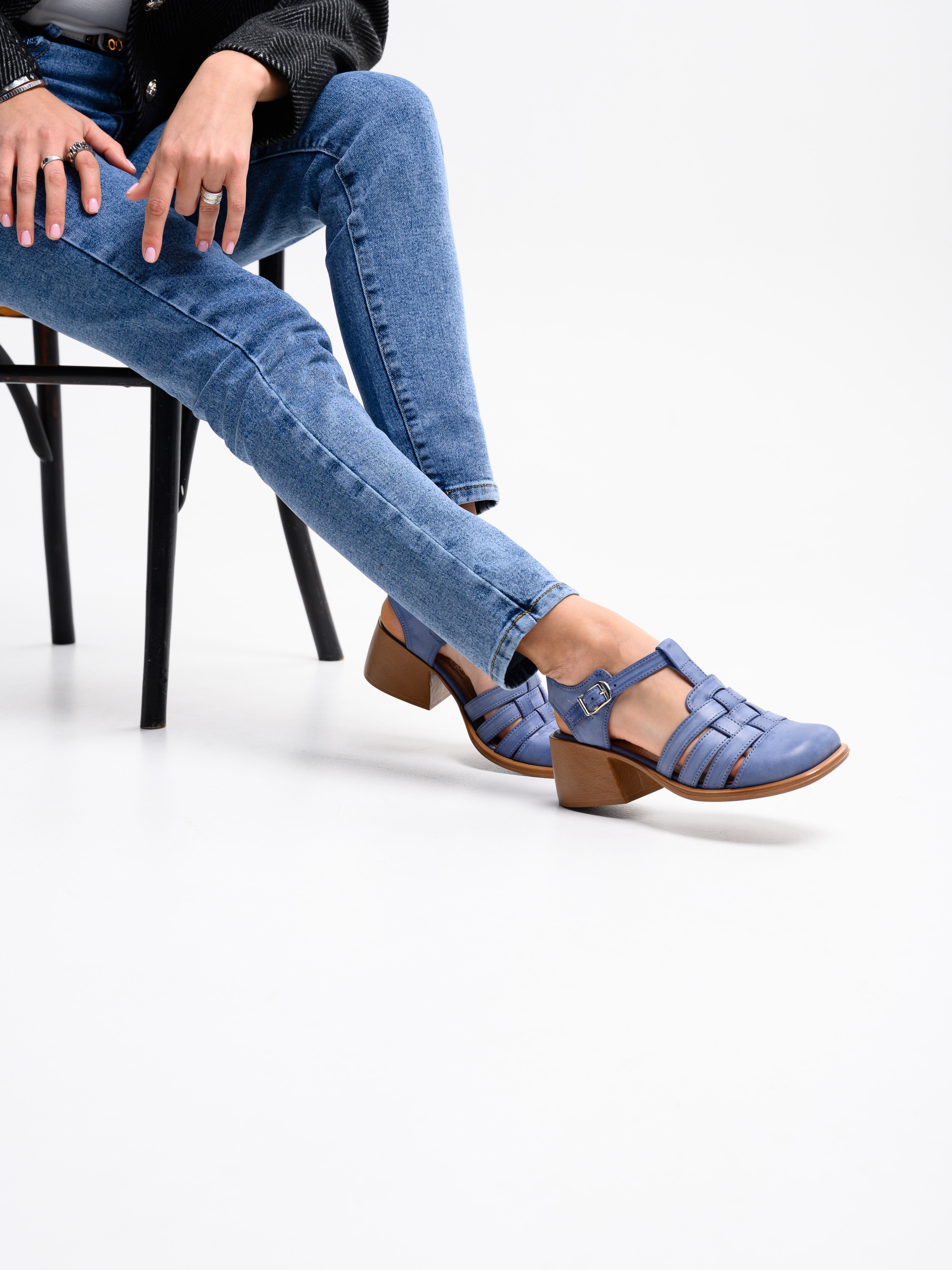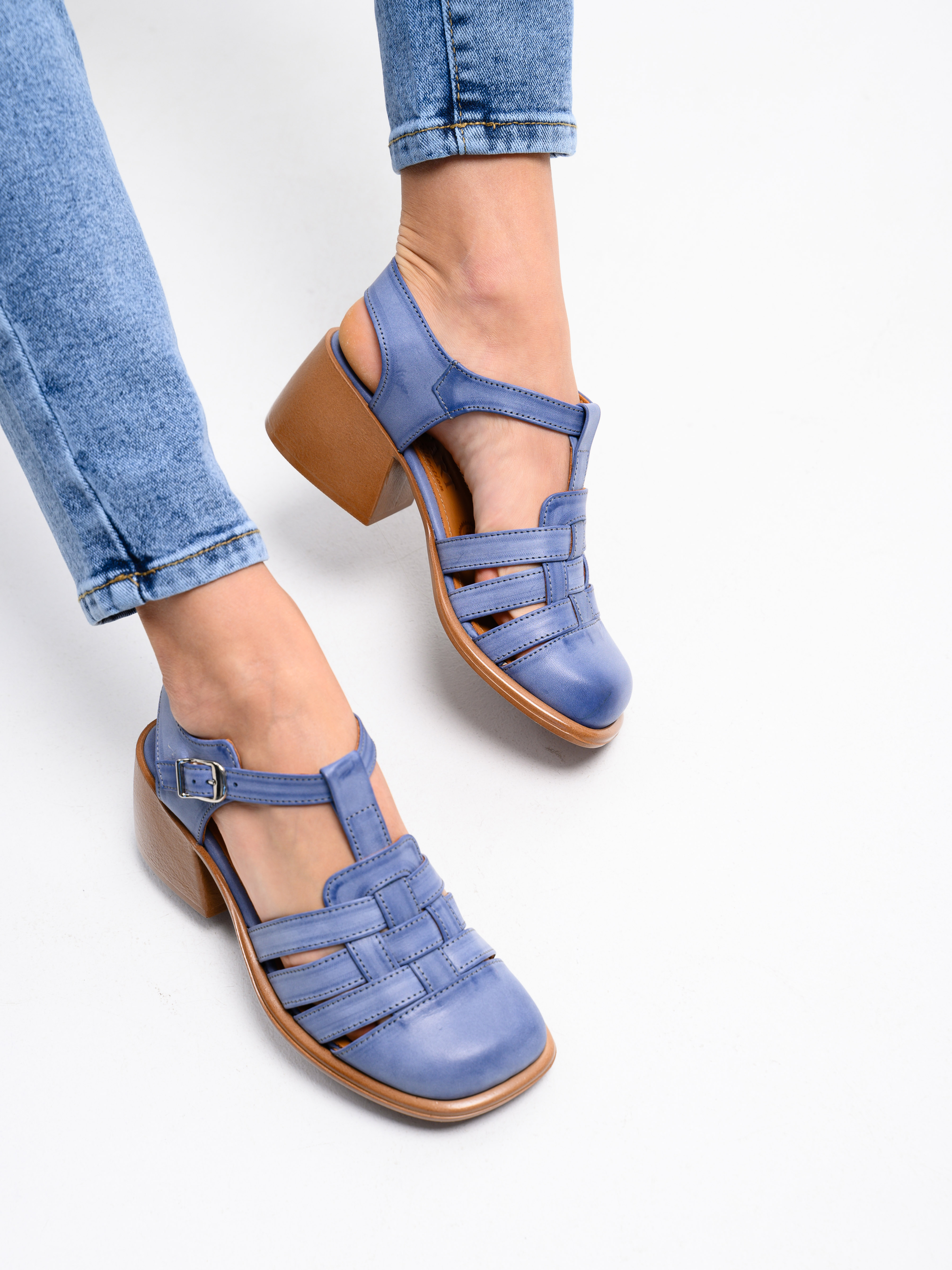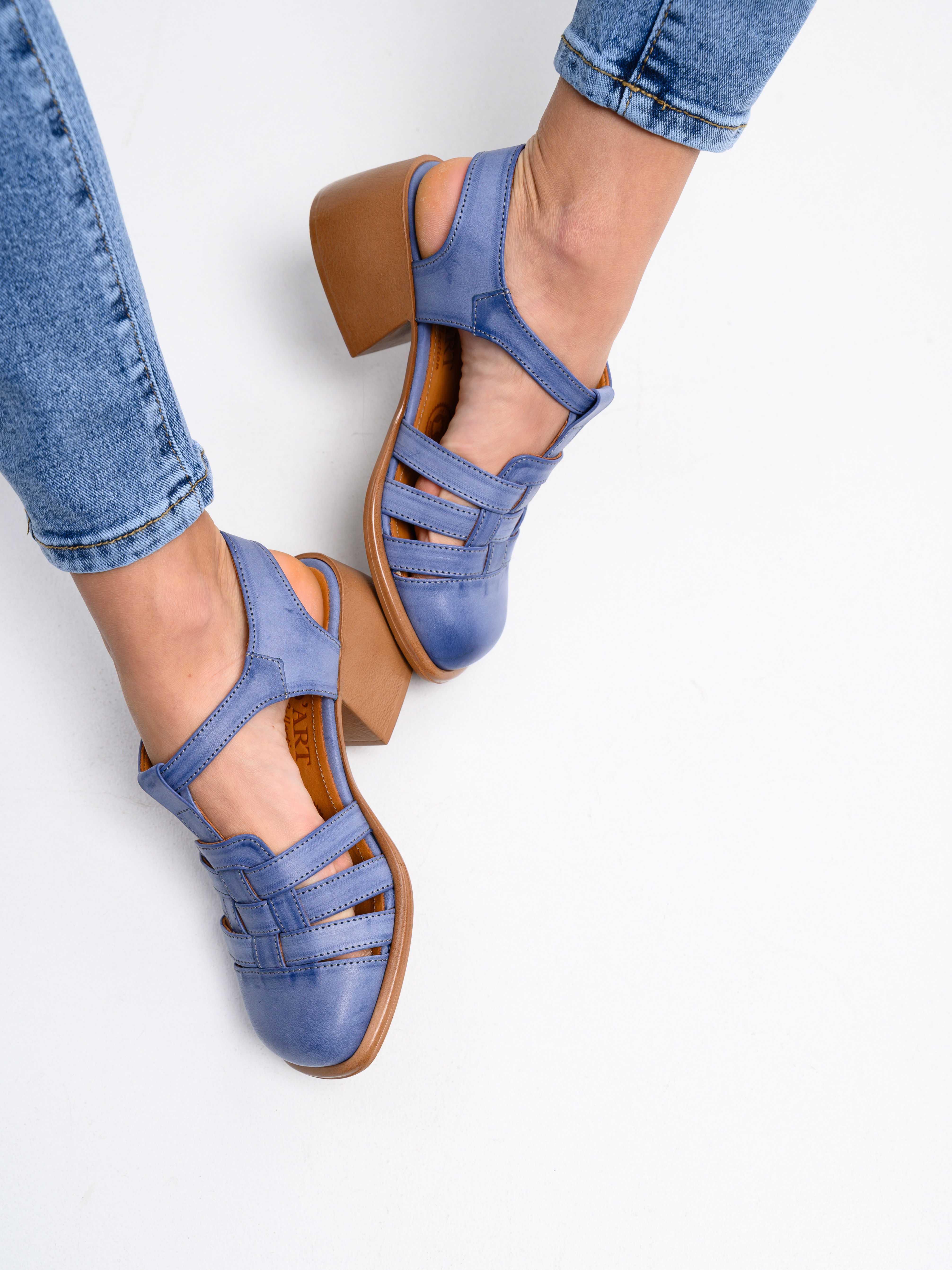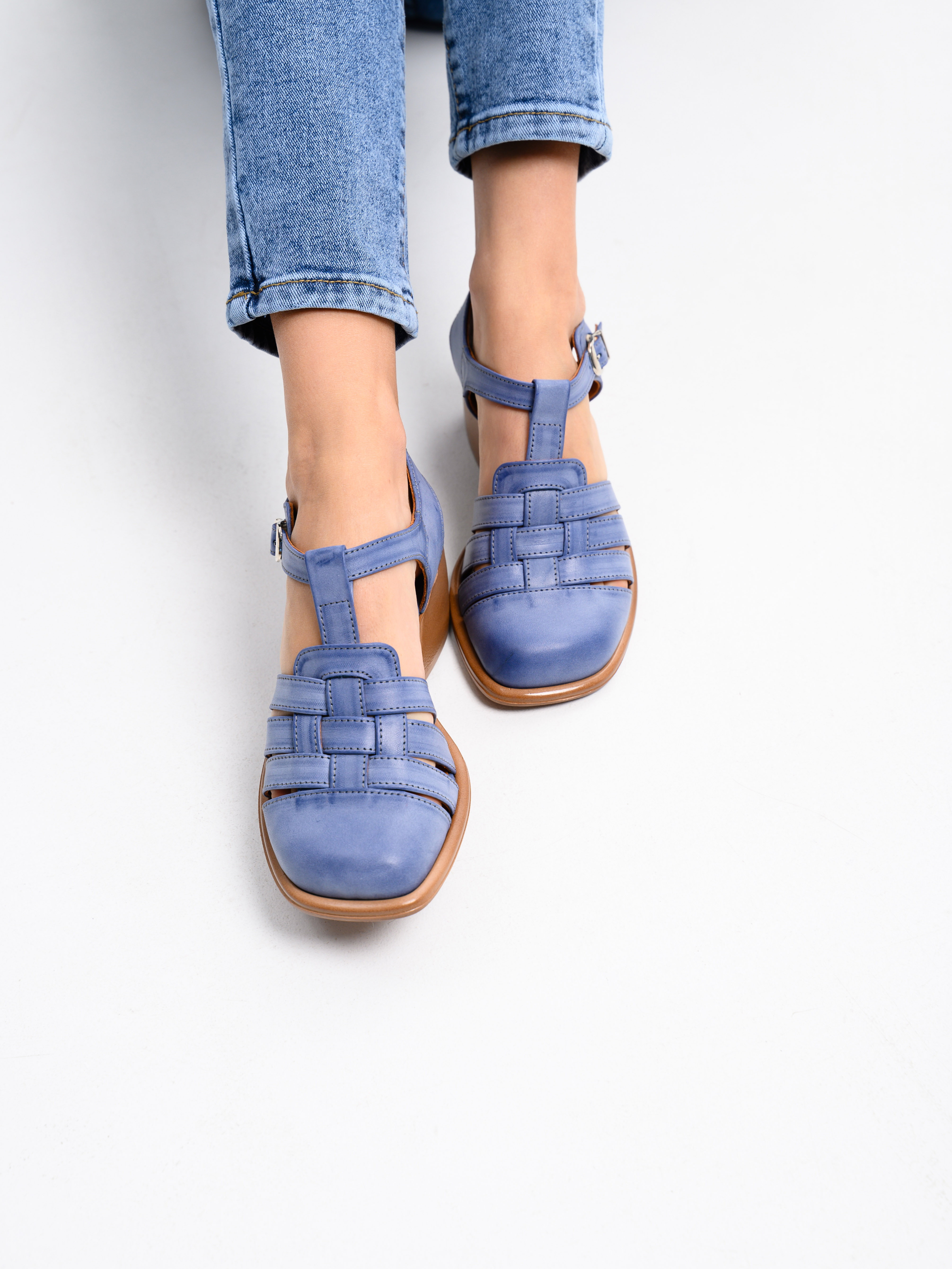 Босоножки кожаные синие