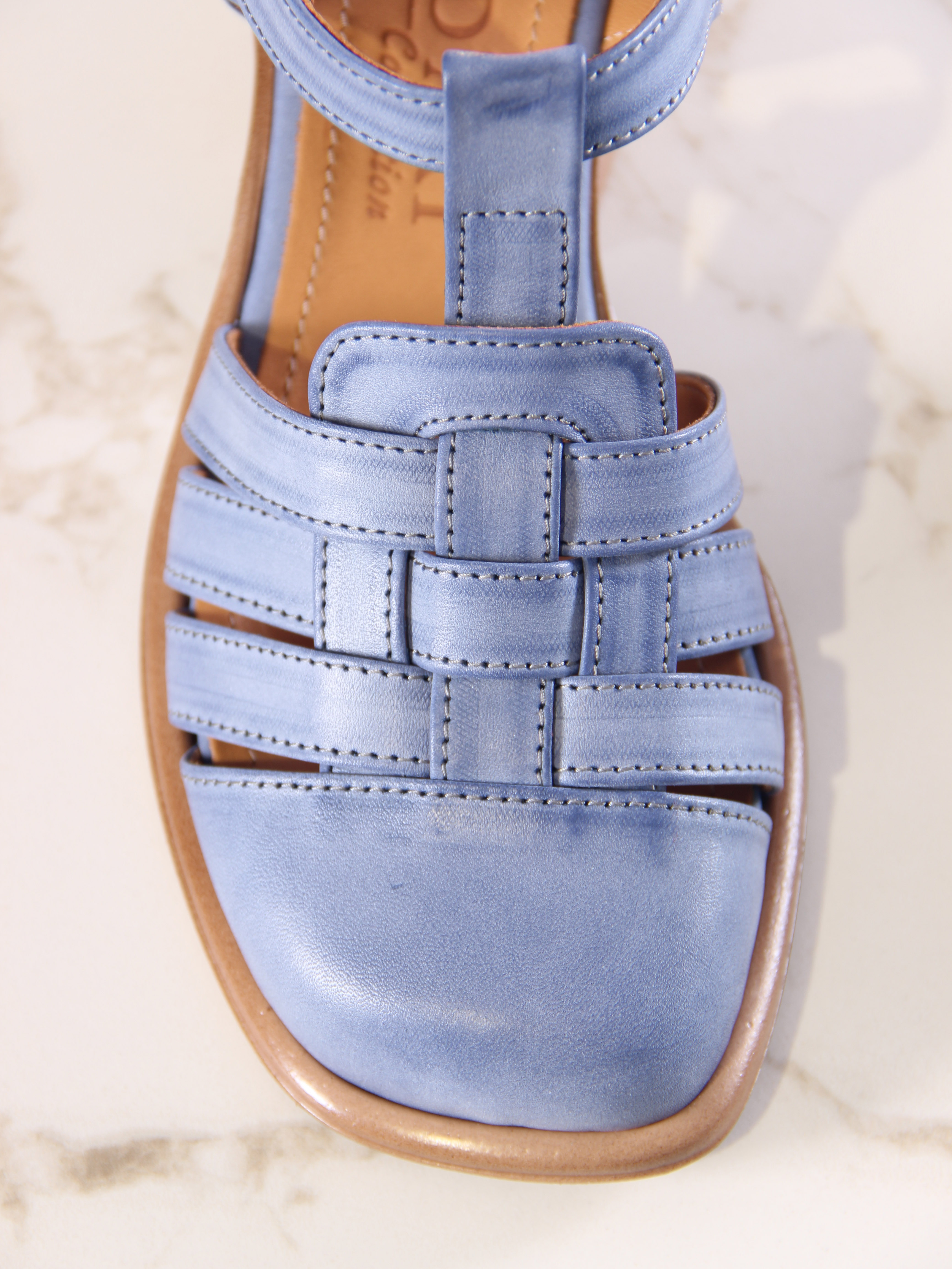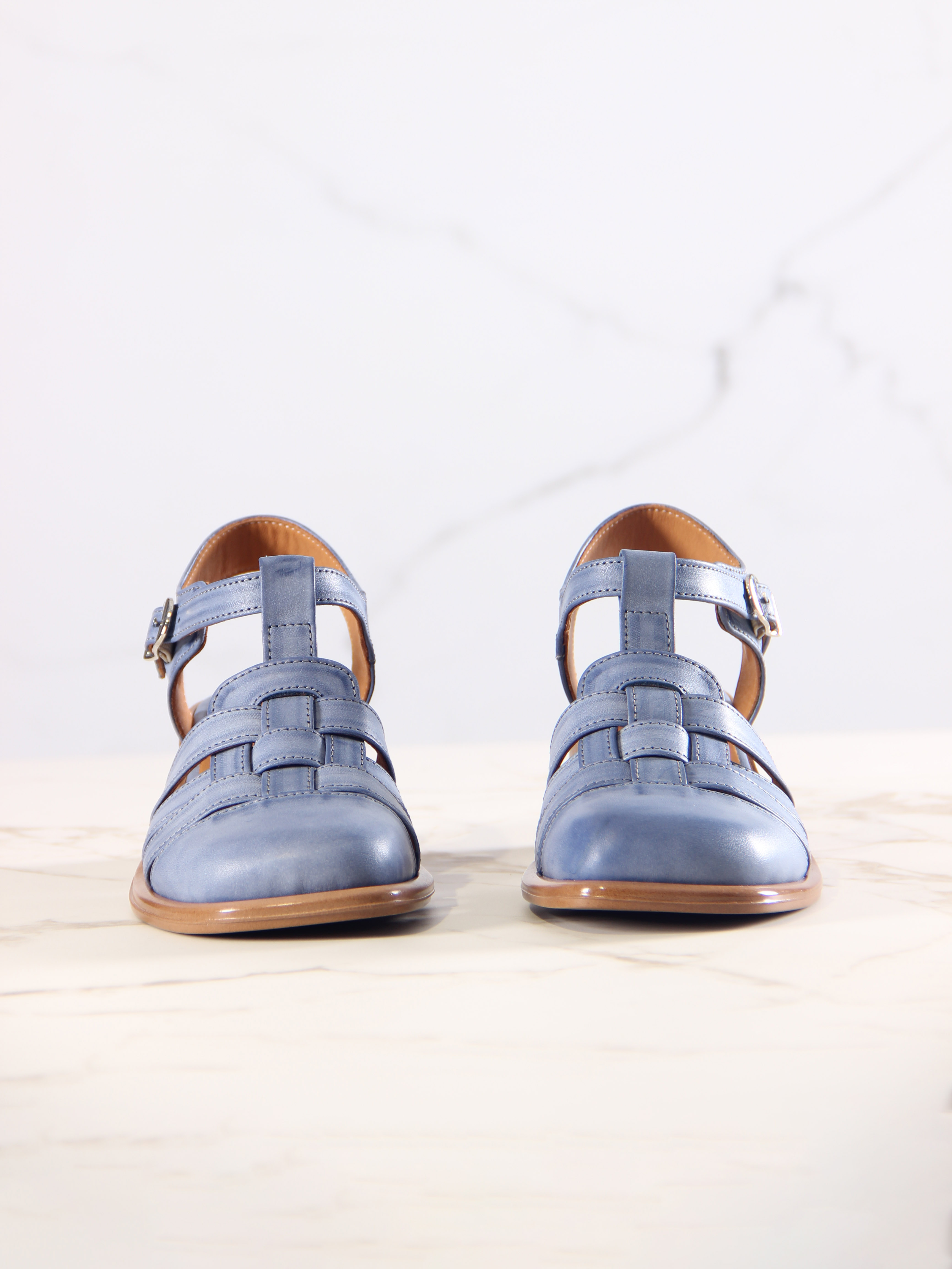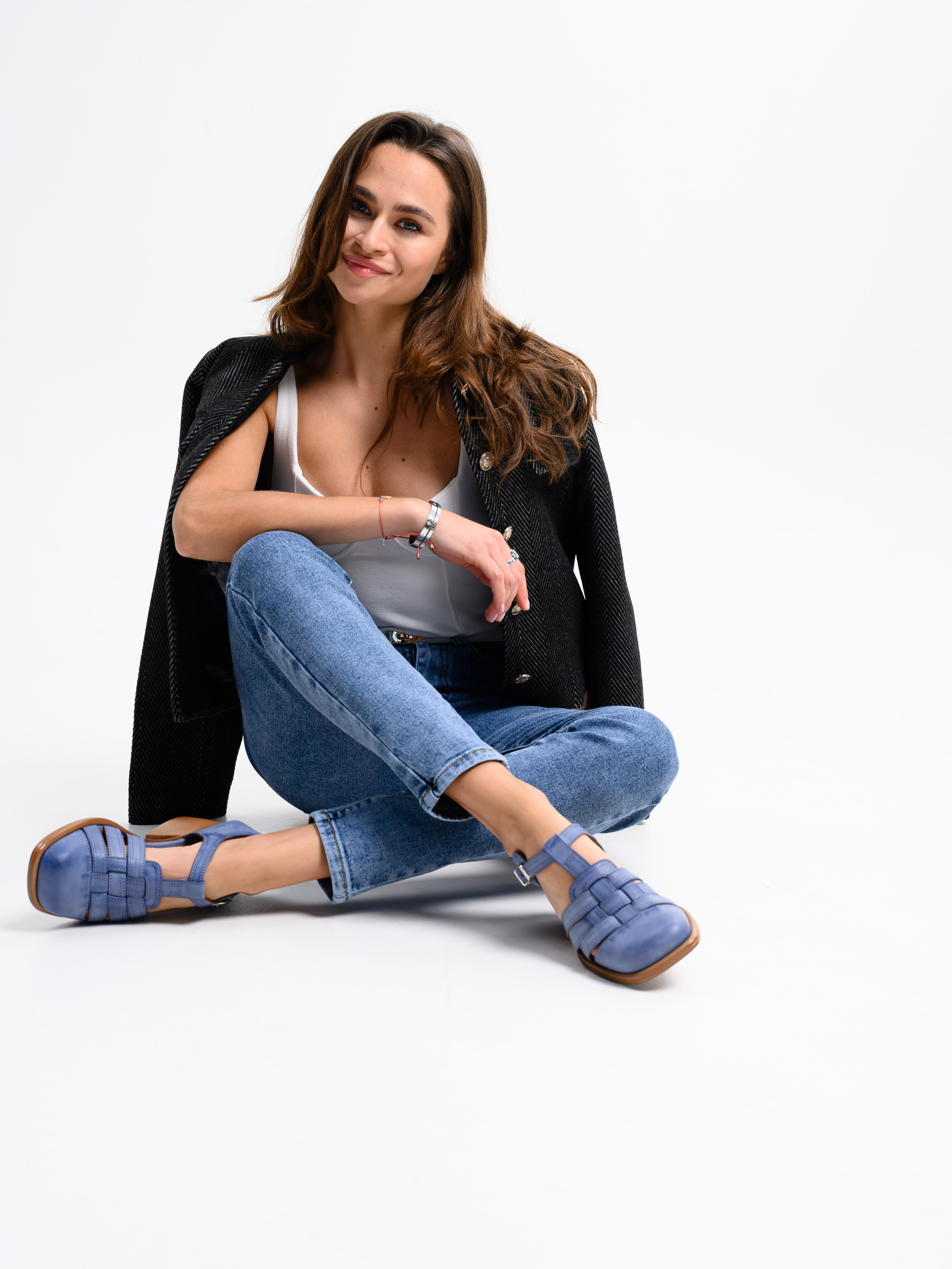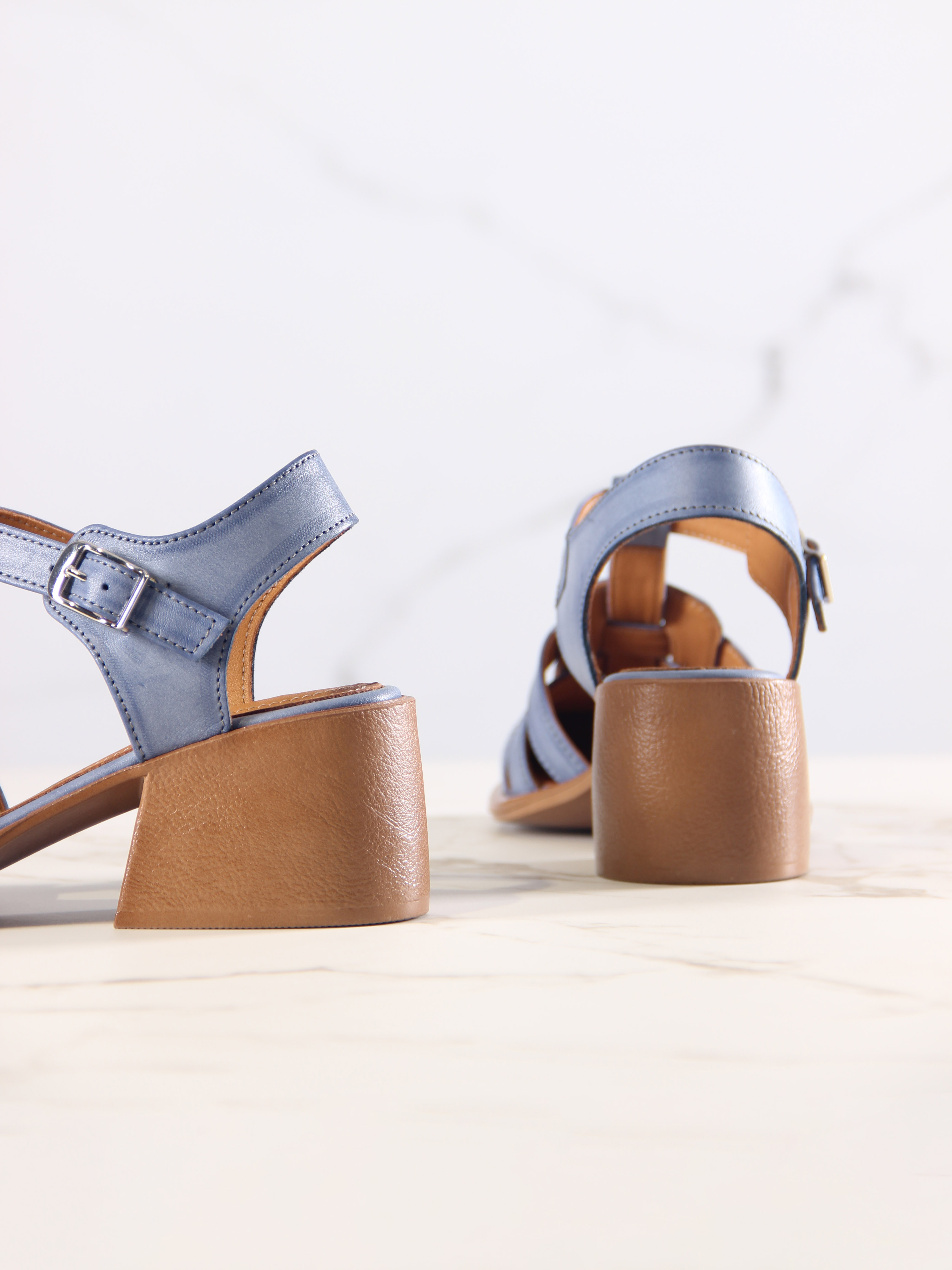 Босоножки кожаные синие