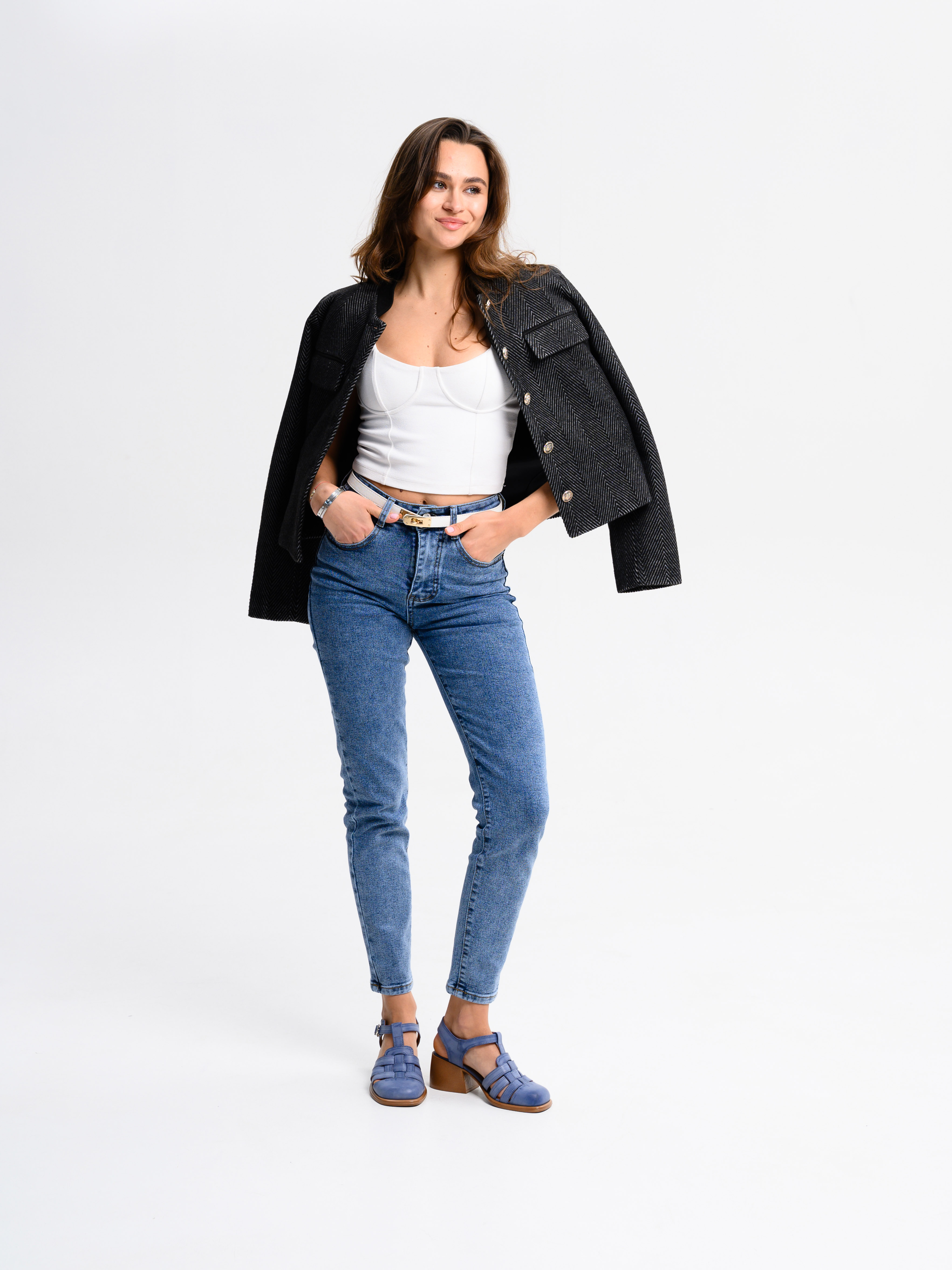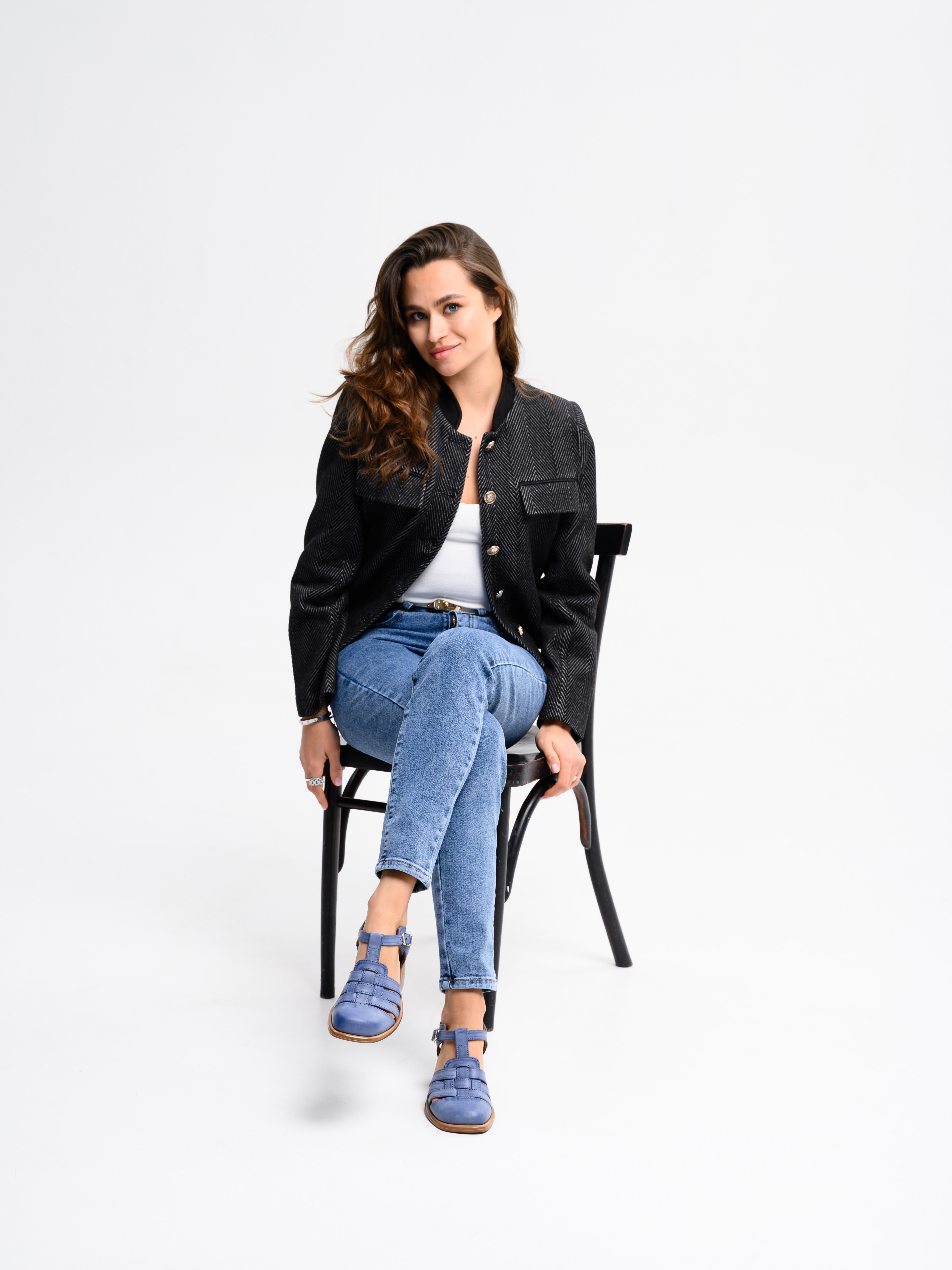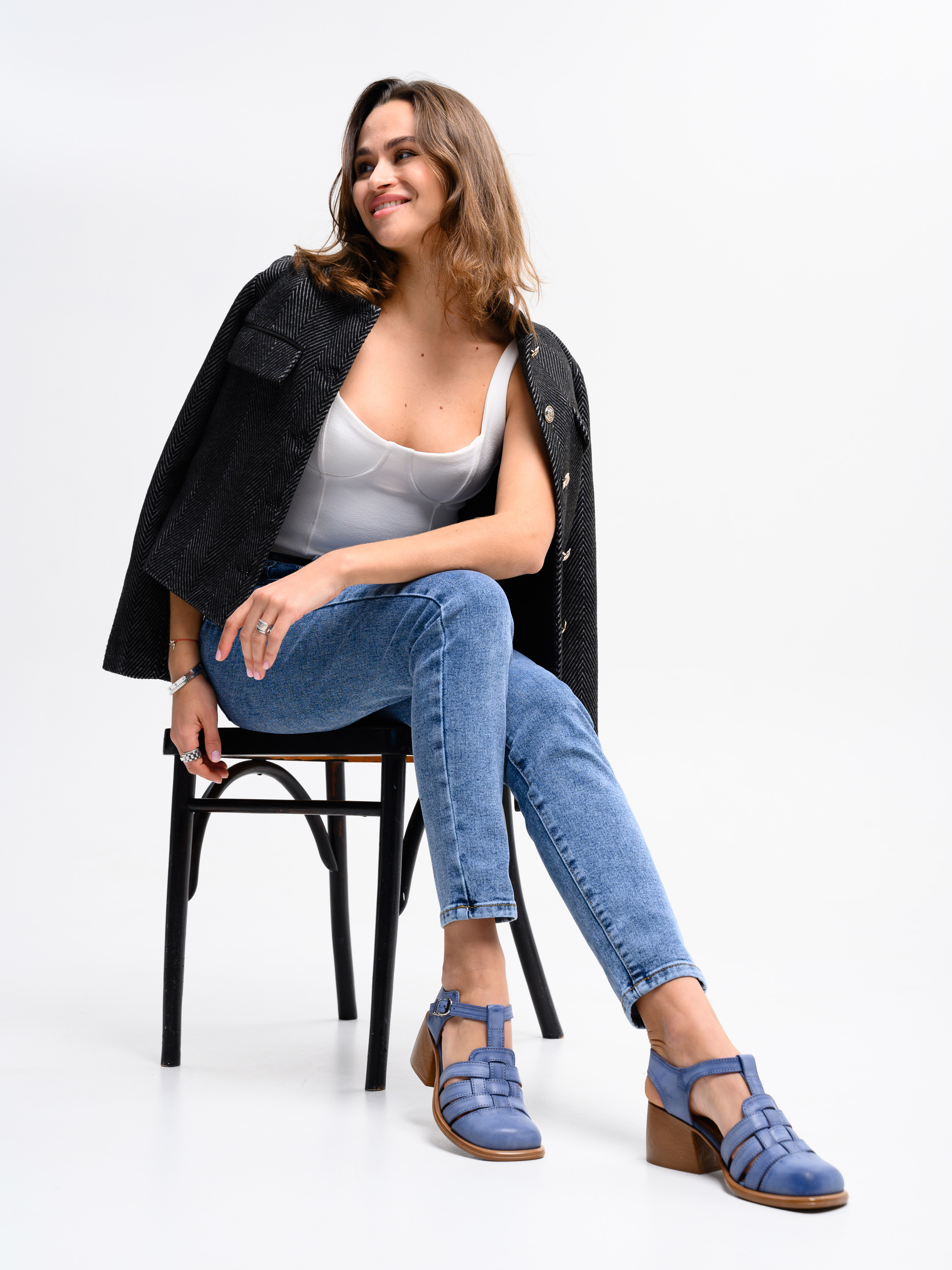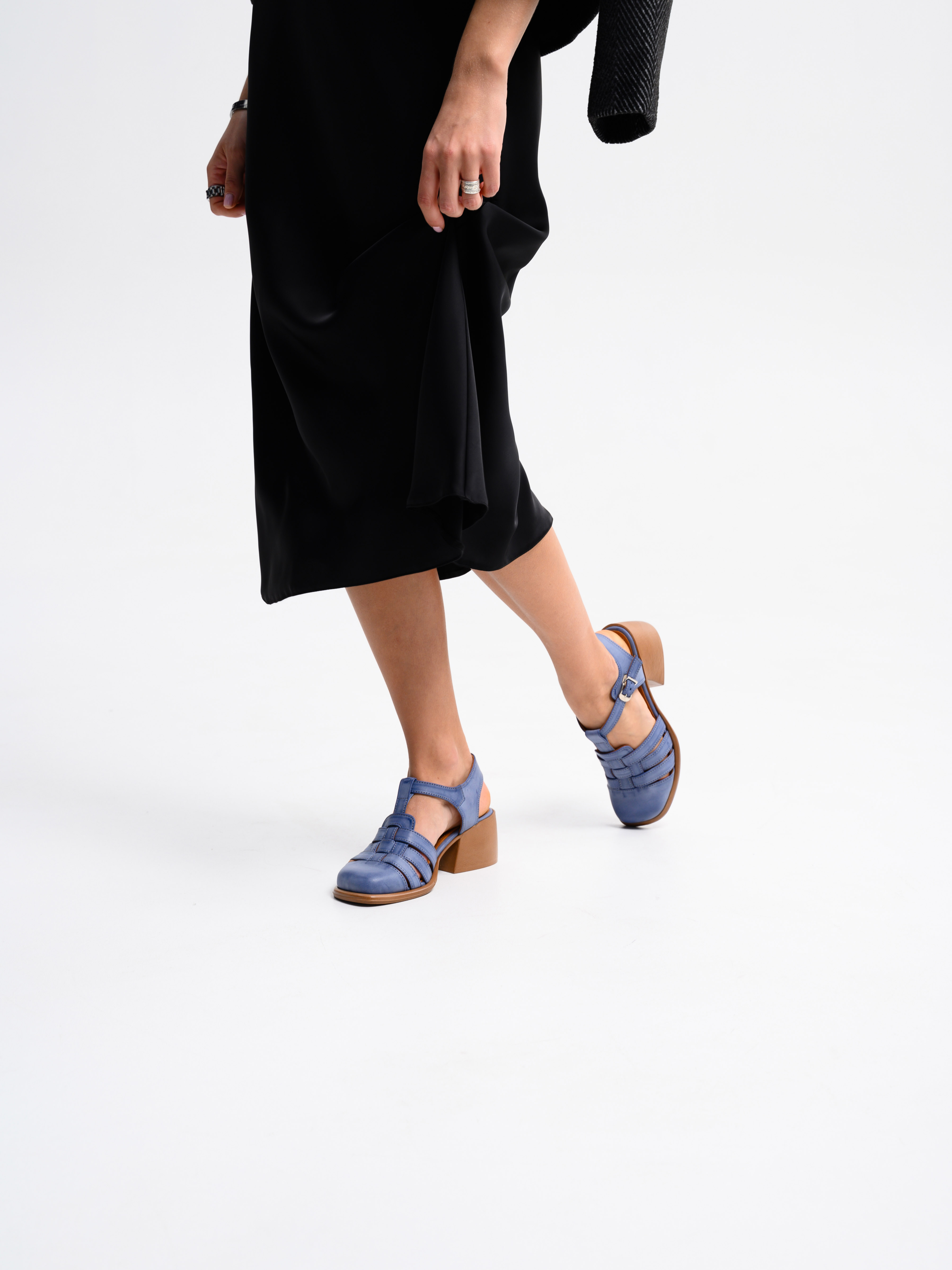 Босоножки кожаные синие