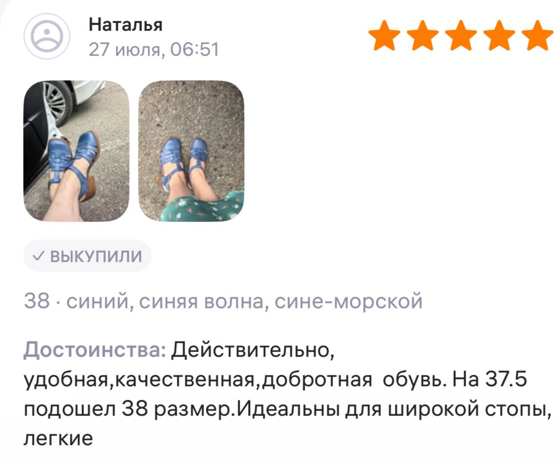 Ботинки хорошие, кажа мягкая, размеру соответствуют, но на пятке пришита заплатка из какой то пленки блесящей и когда первый раз померла она вся сморщилась и такое впечатление что сейчас лопнет. И я думаю со временем так и будет. Если бы не эта заплатка взяла бы удобные и мягкие