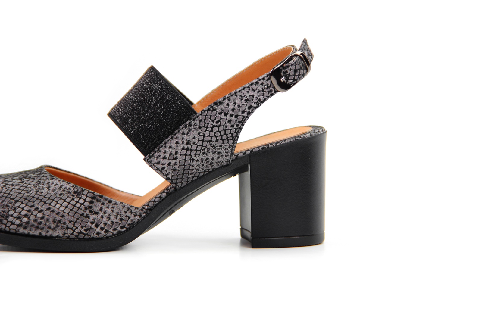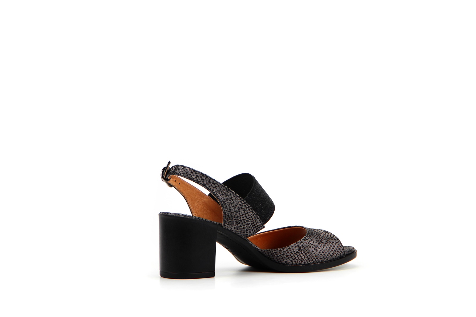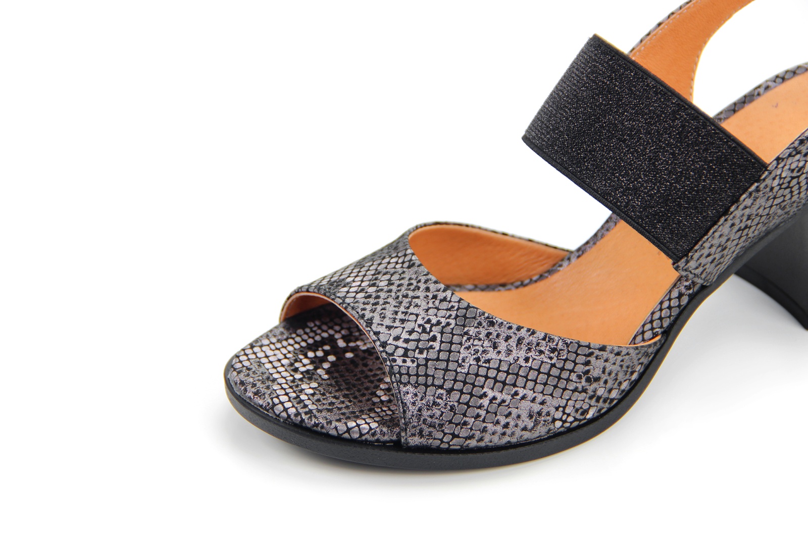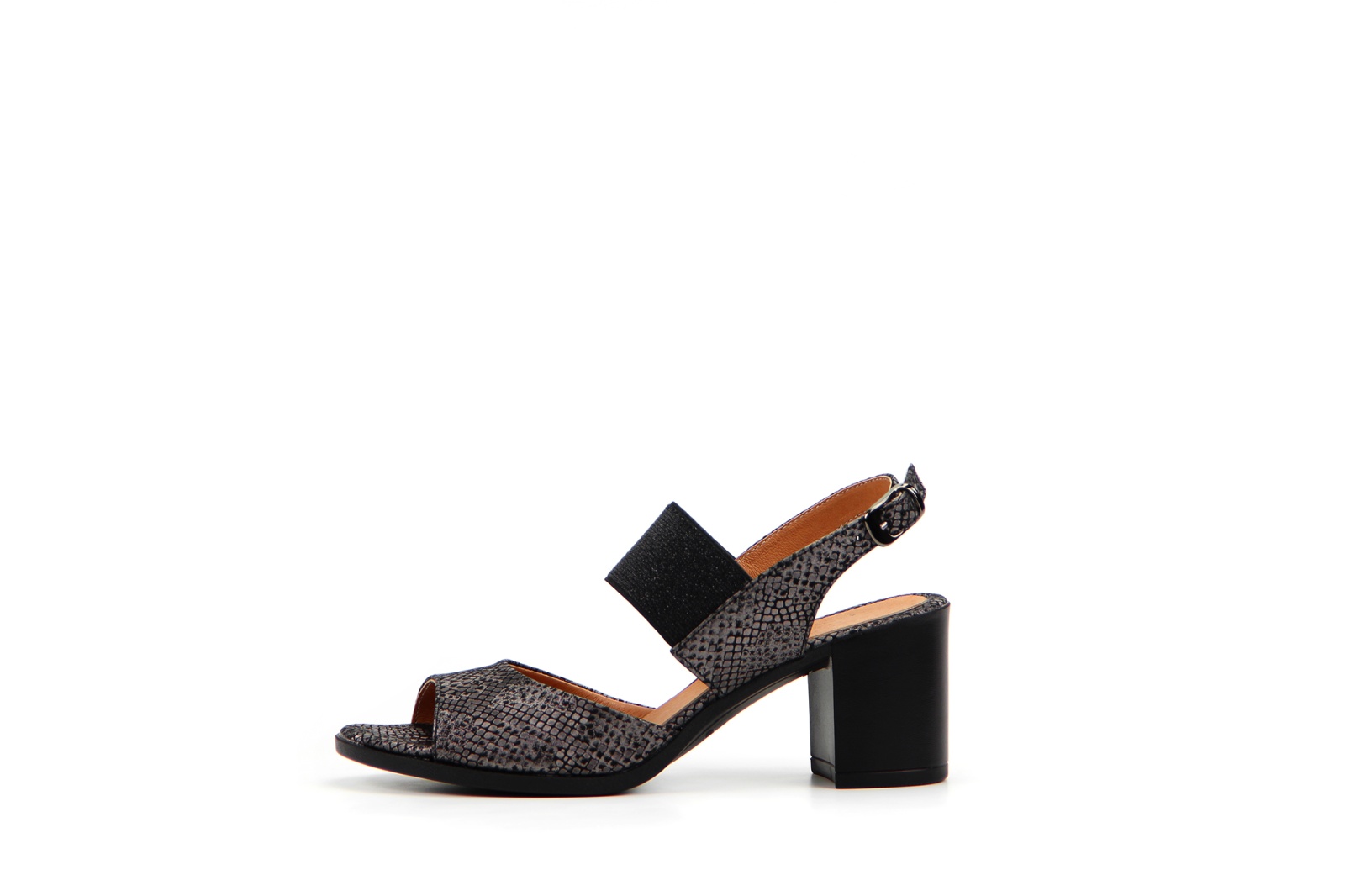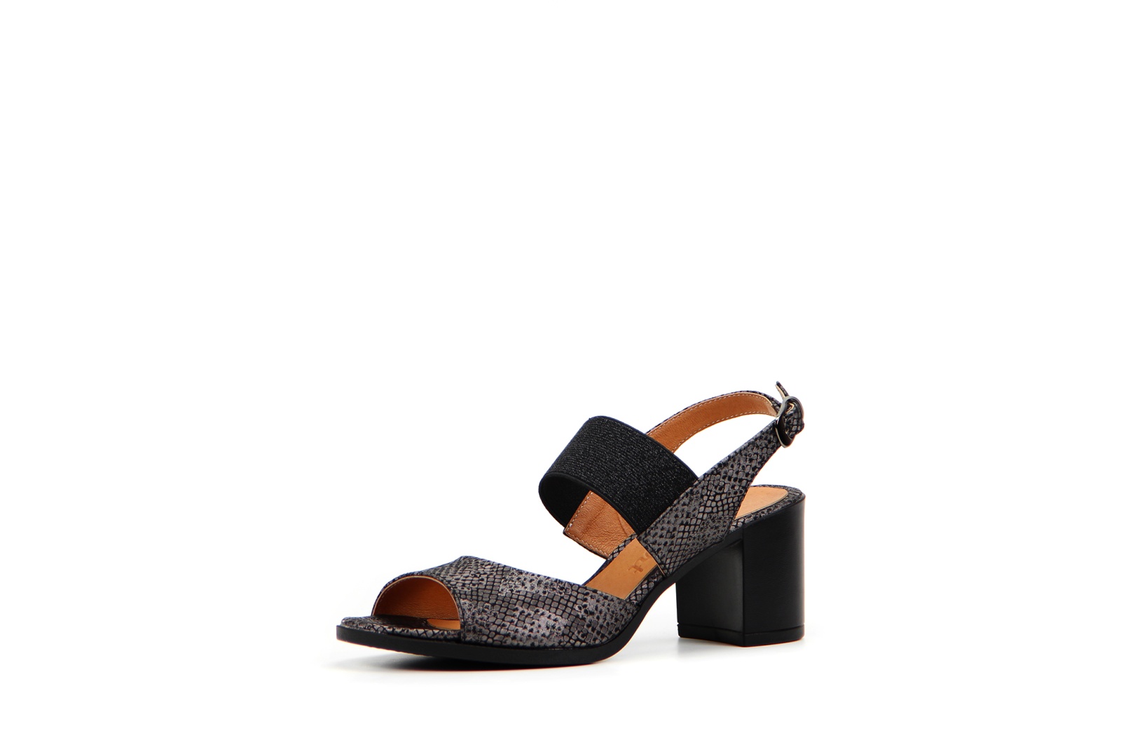 Босоножки кожаные серые с принтом змеи