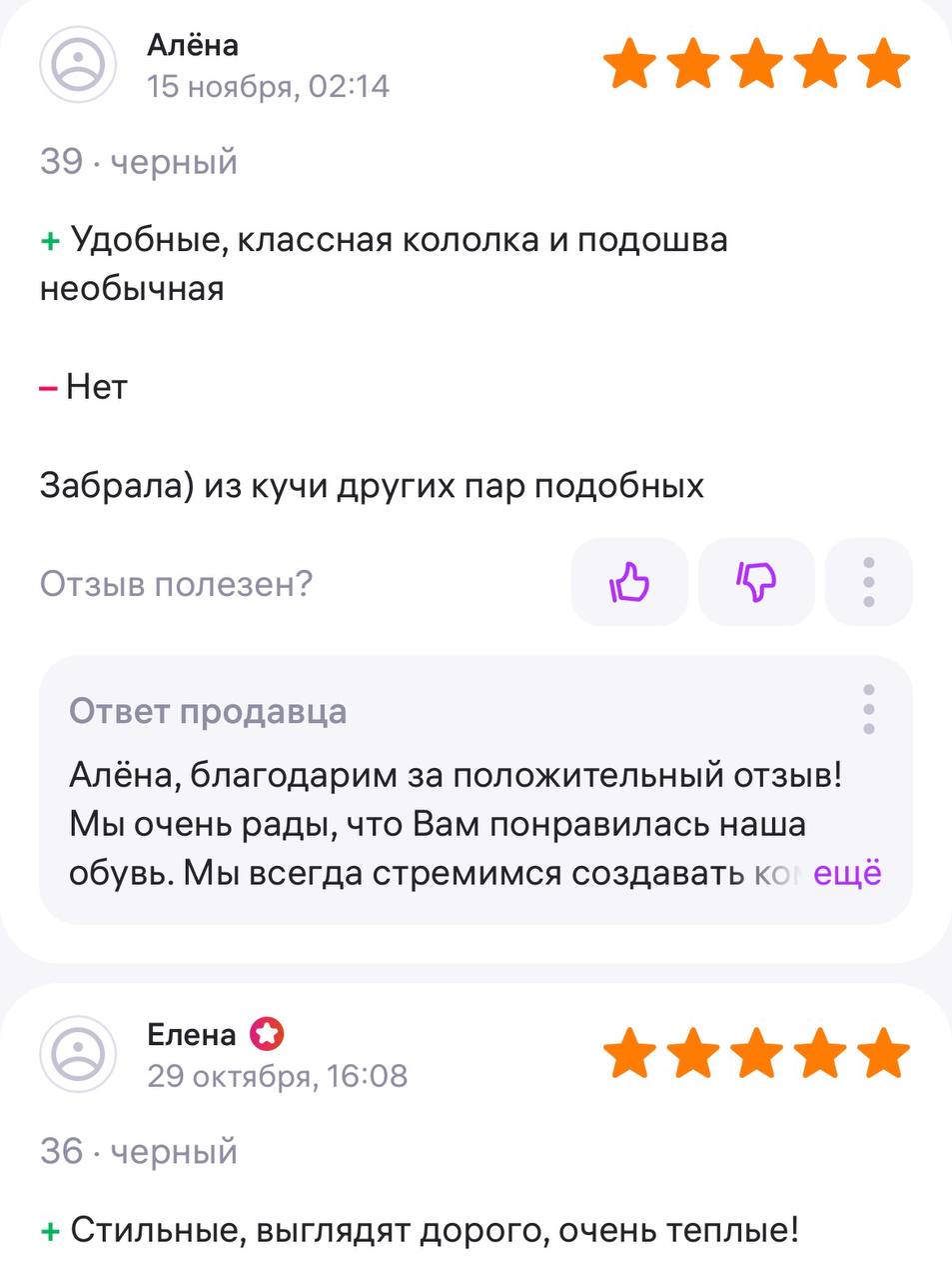 Ботинки хорошие, кажа мягкая, размеру соответствуют, но на пятке пришита заплатка из какой то пленки блесящей и когда первый раз померла она вся сморщилась и такое впечатление что сейчас лопнет. И я думаю со временем так и будет. Если бы не эта заплатка взяла бы удобные и мягкие