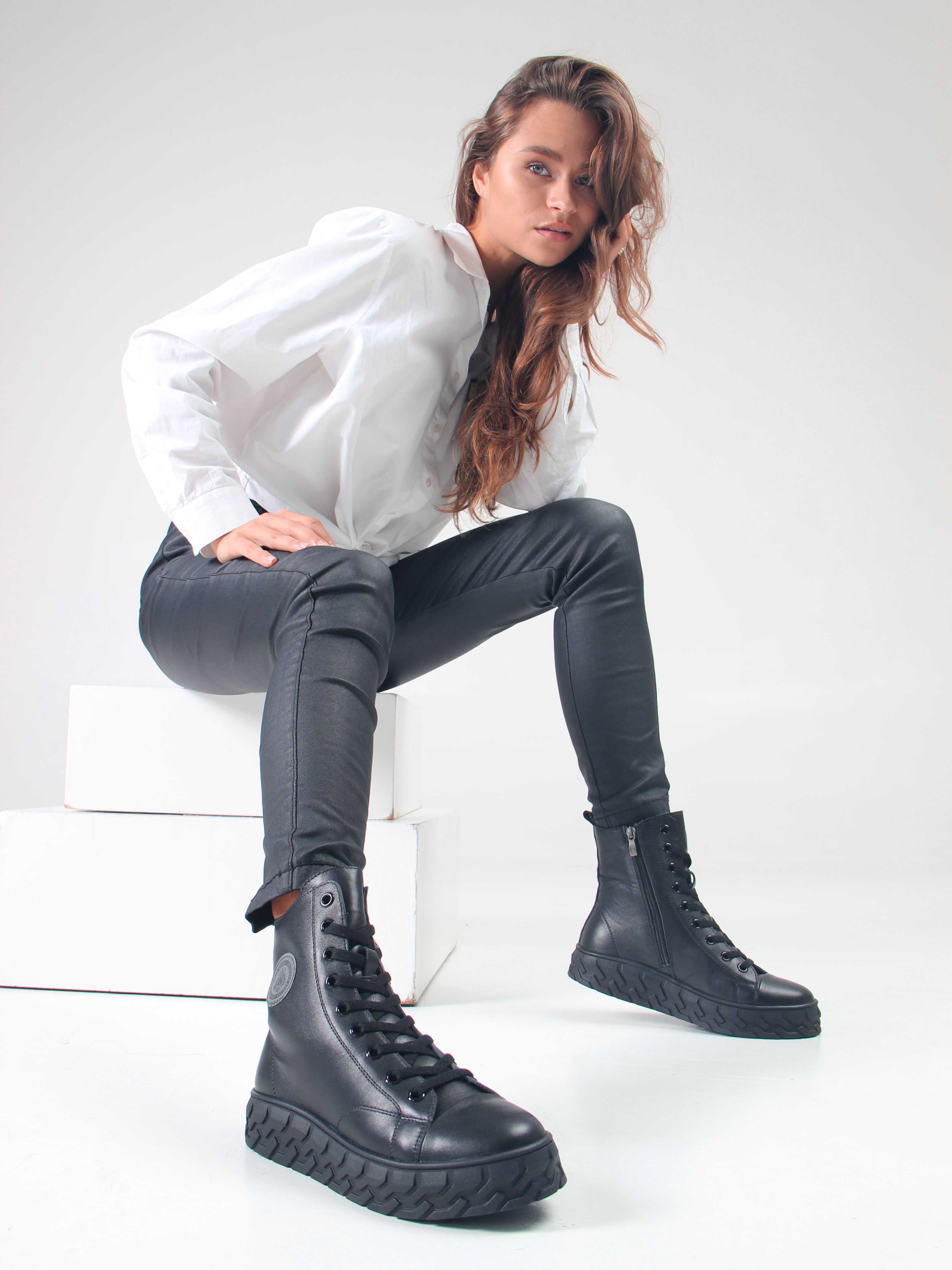 Здравствуйте. Подскажите пожалуйста какие-нибудь ботинки на платформе, или тракторной подошве или какие-нибудь сапоги из натуральной кожи для широкой стопы