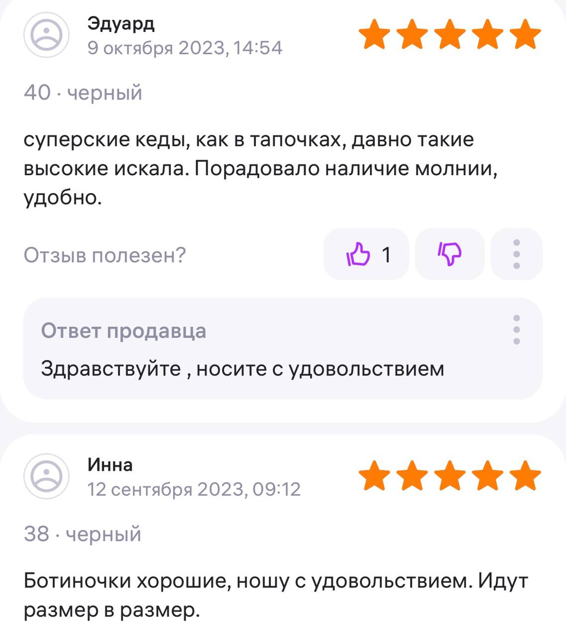 Ответ продавца