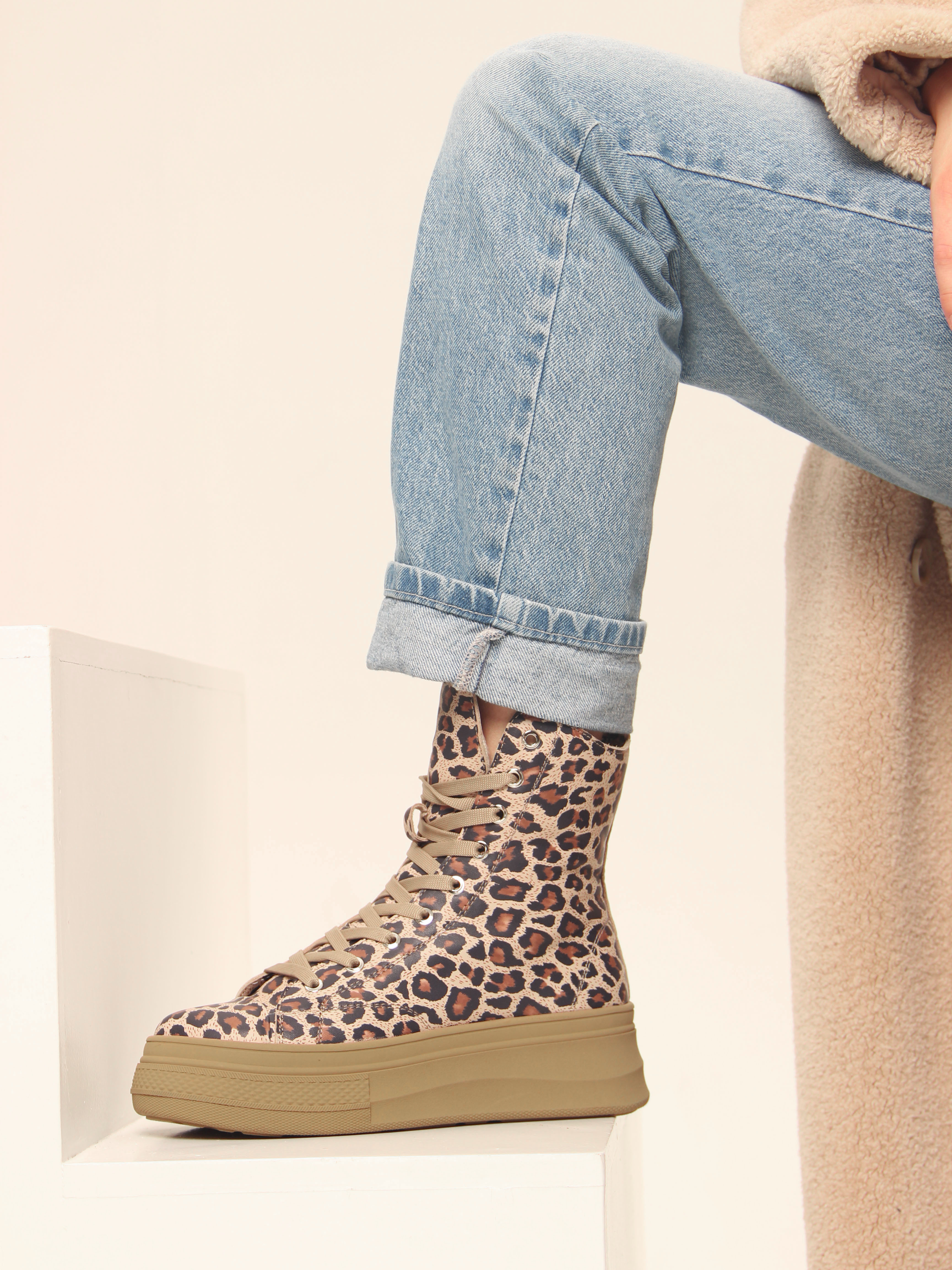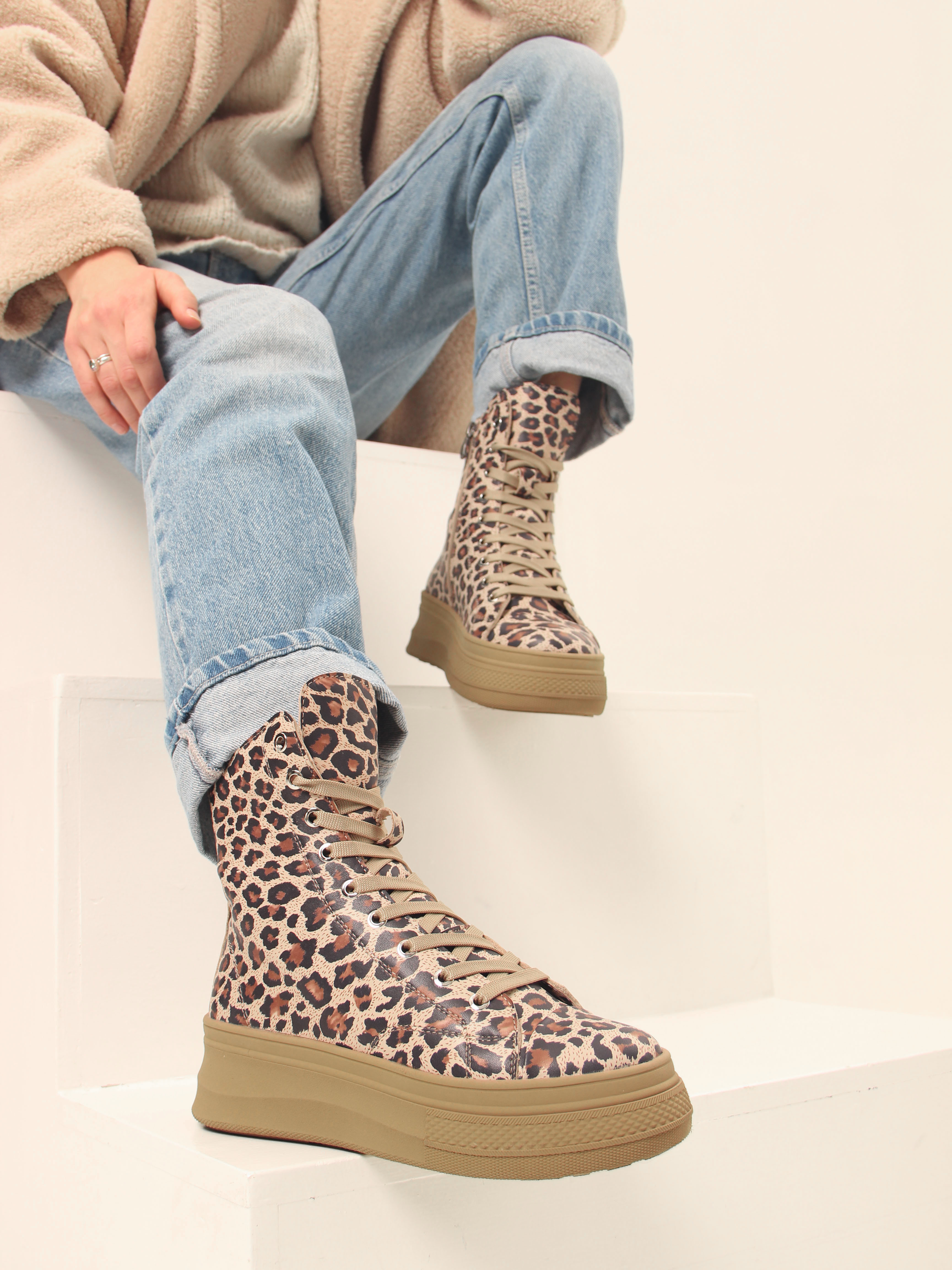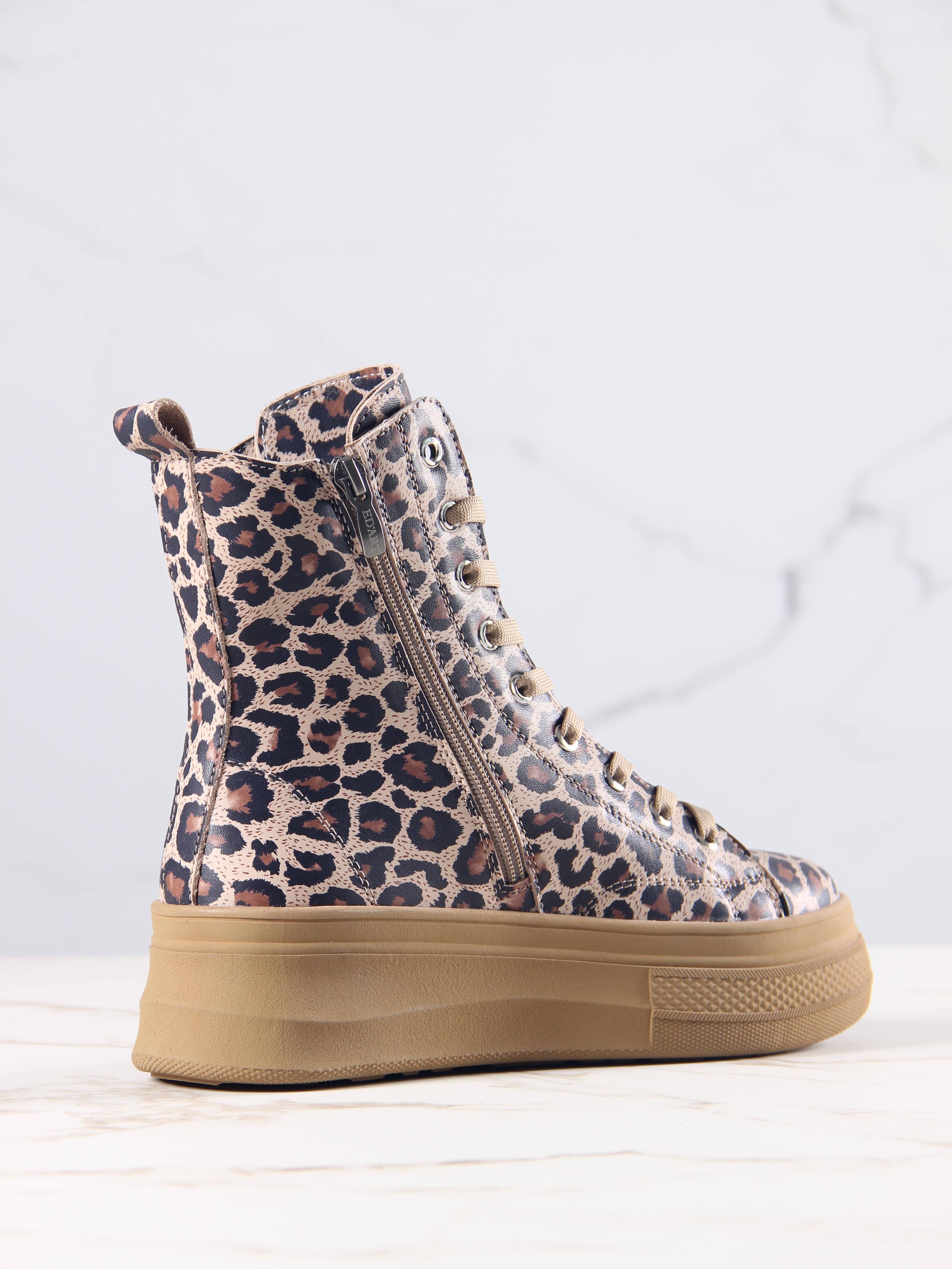 Ботинки кожаные с принтом леопард