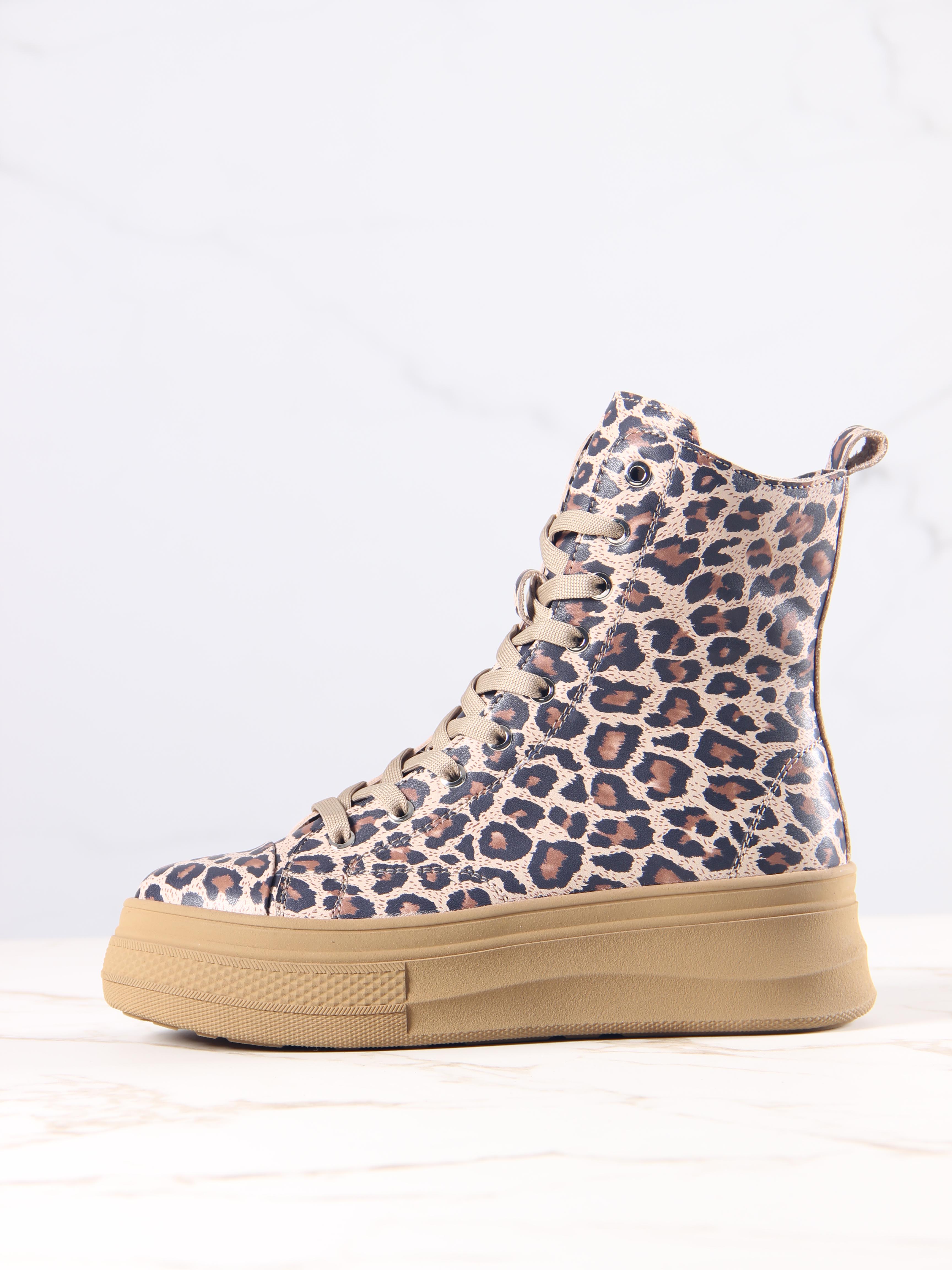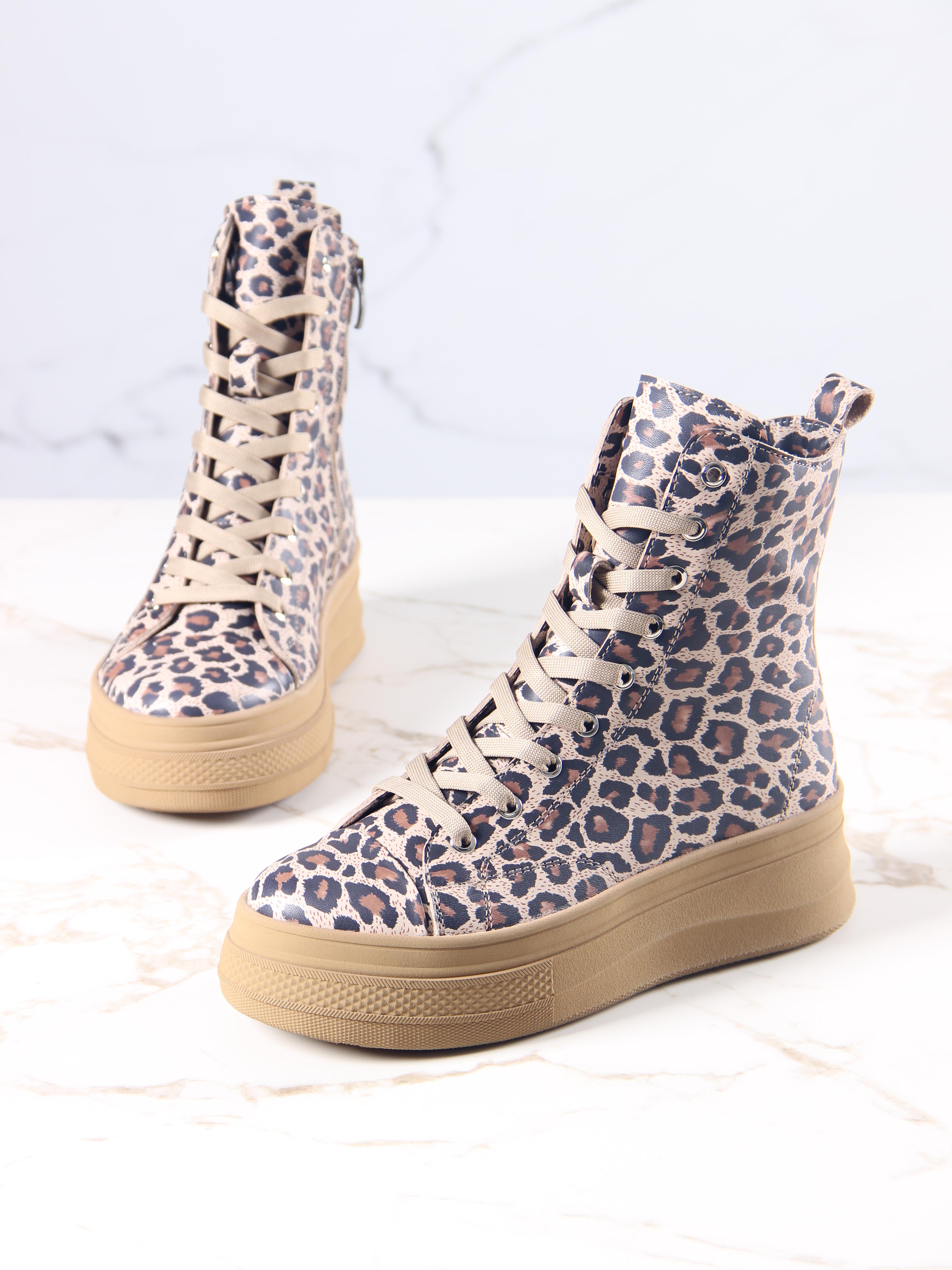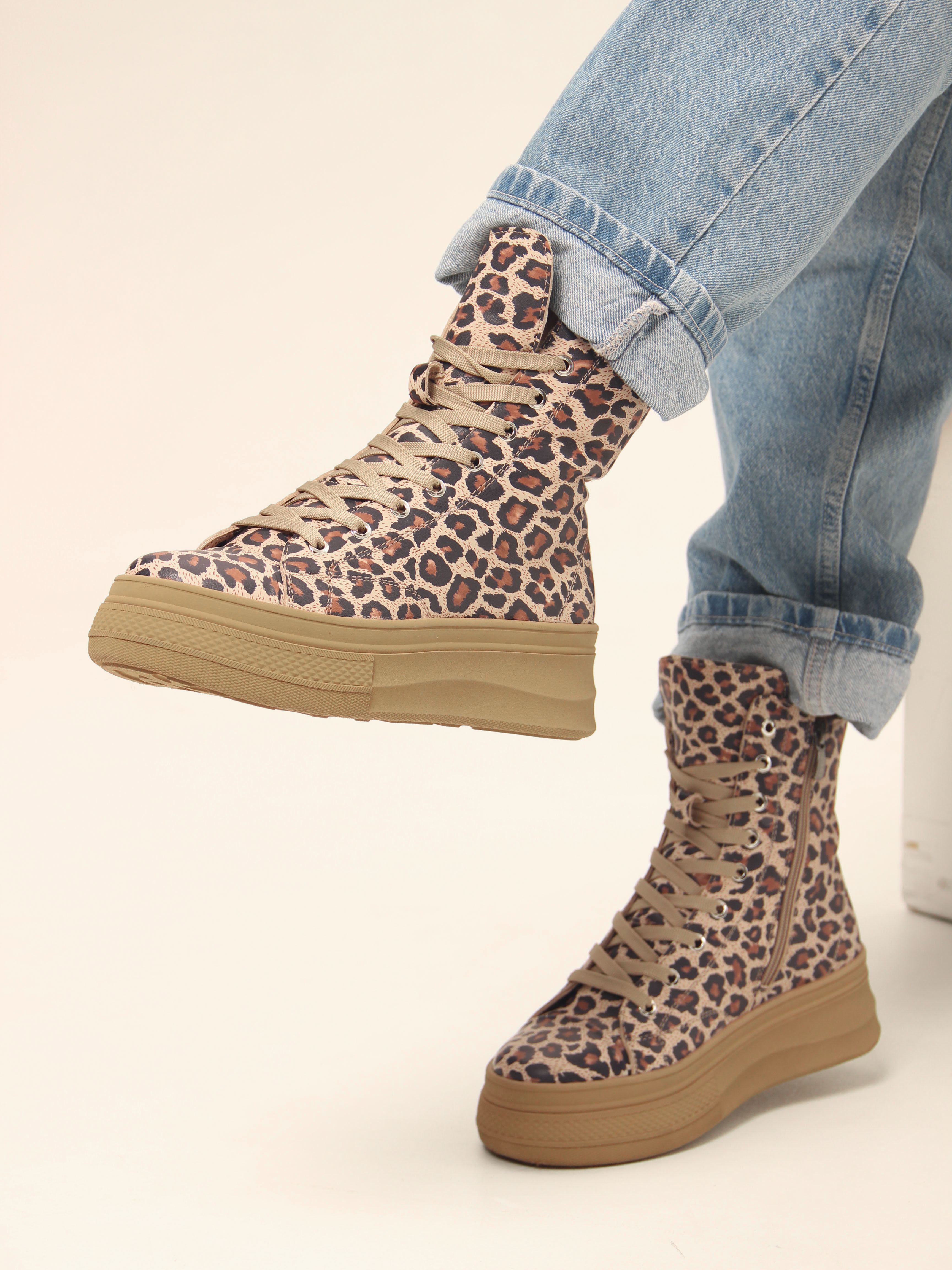 Ботинки кожаные с принтом леопард