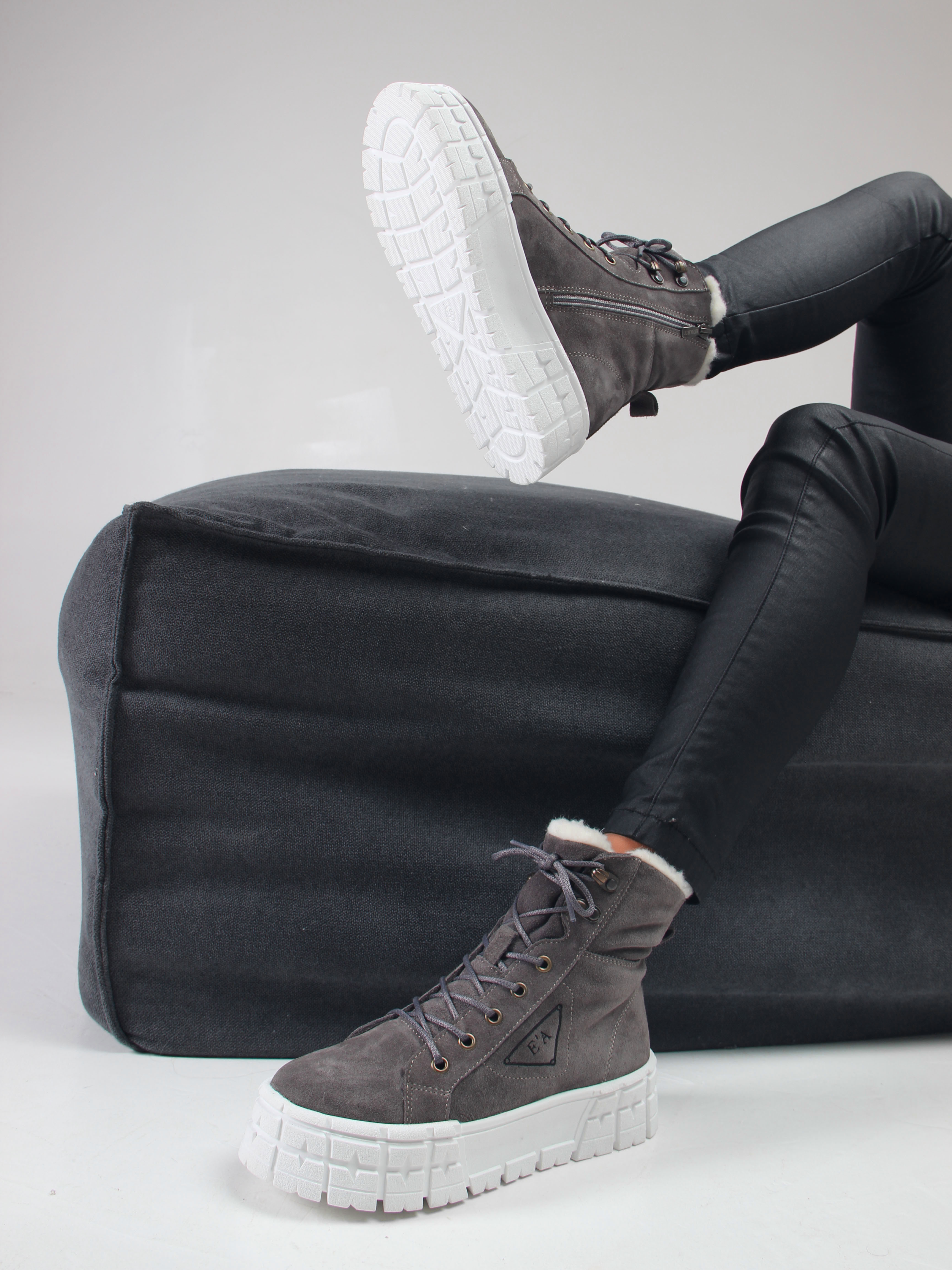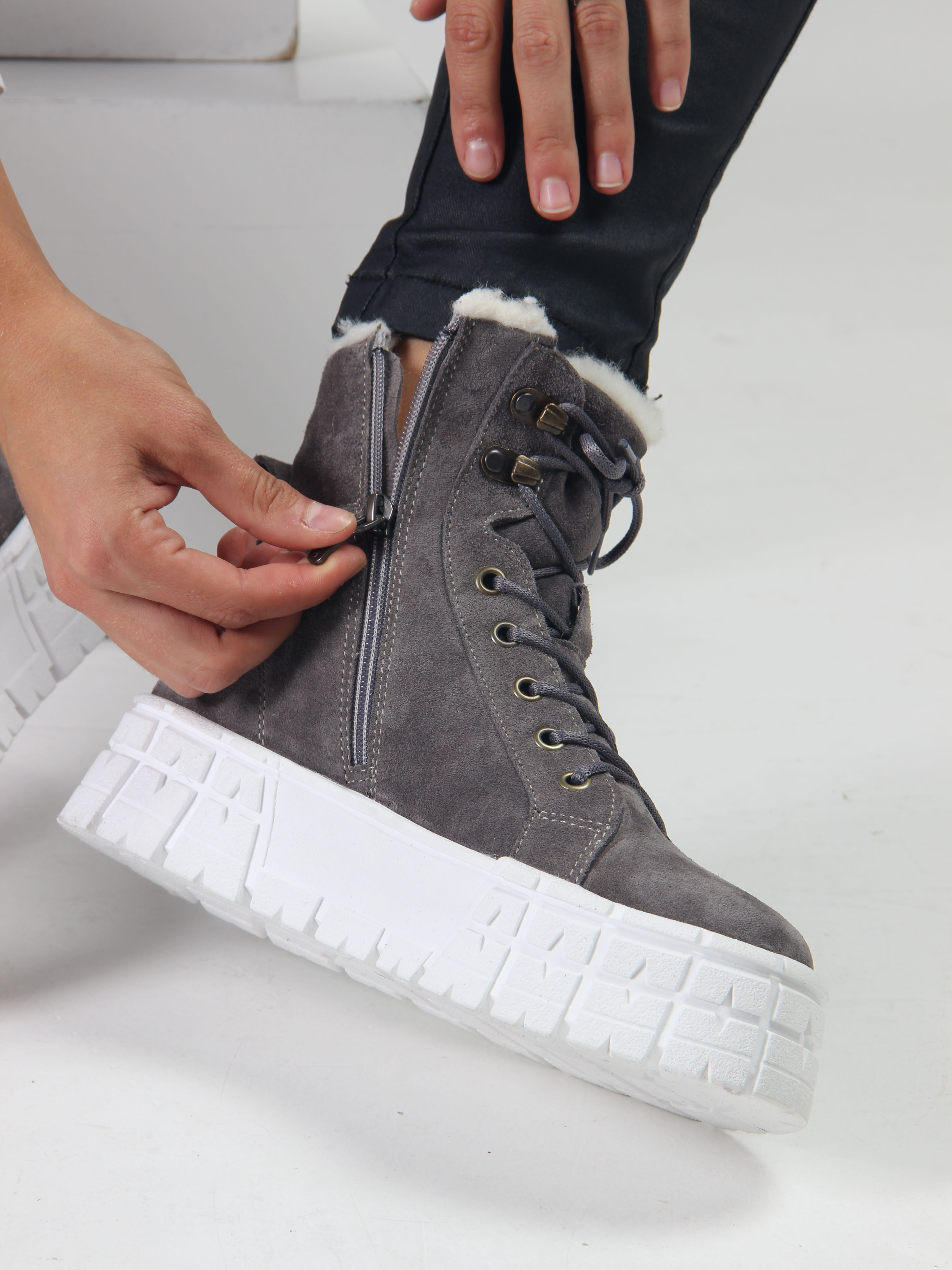 Ботинки замшевые серые