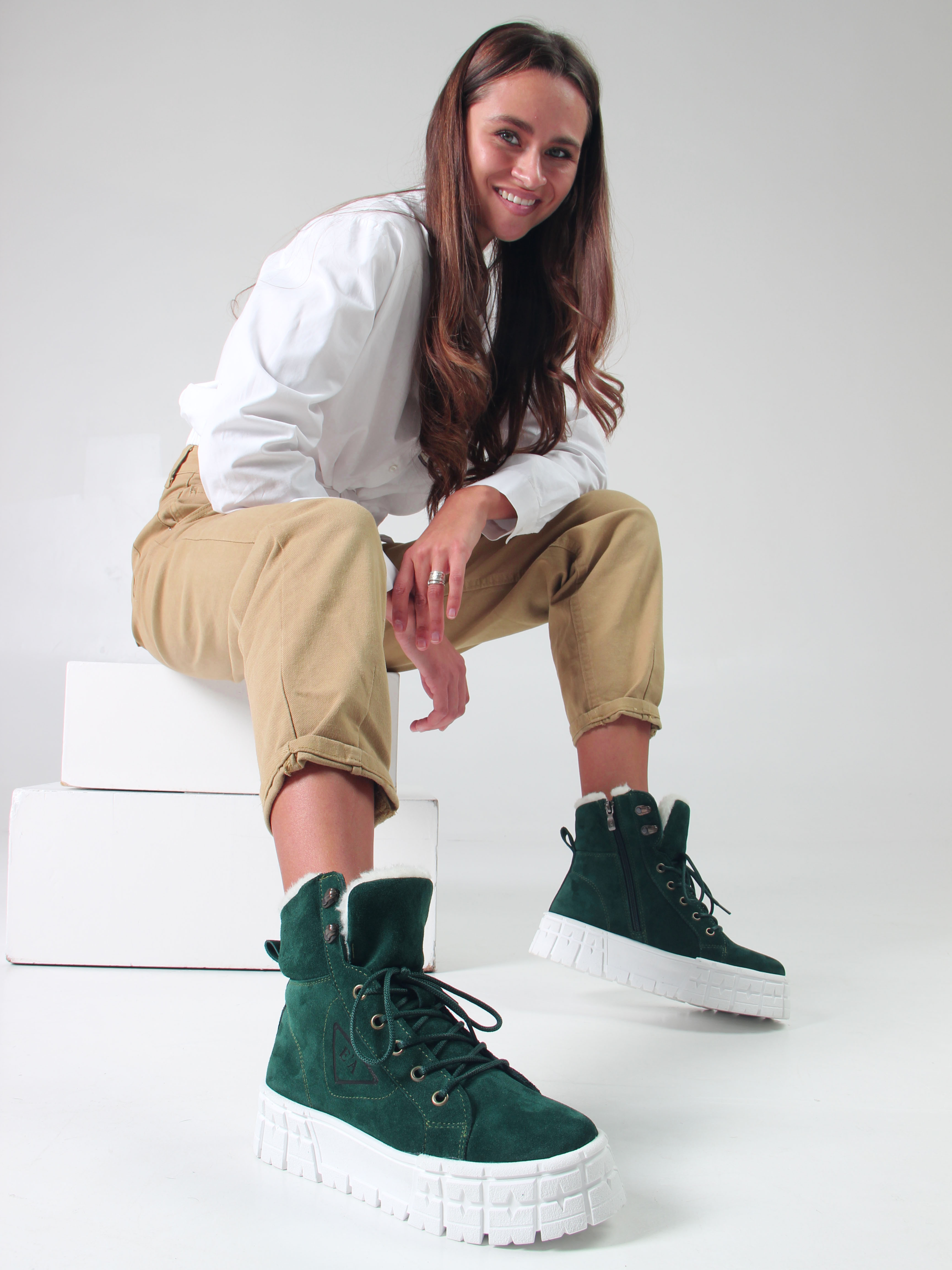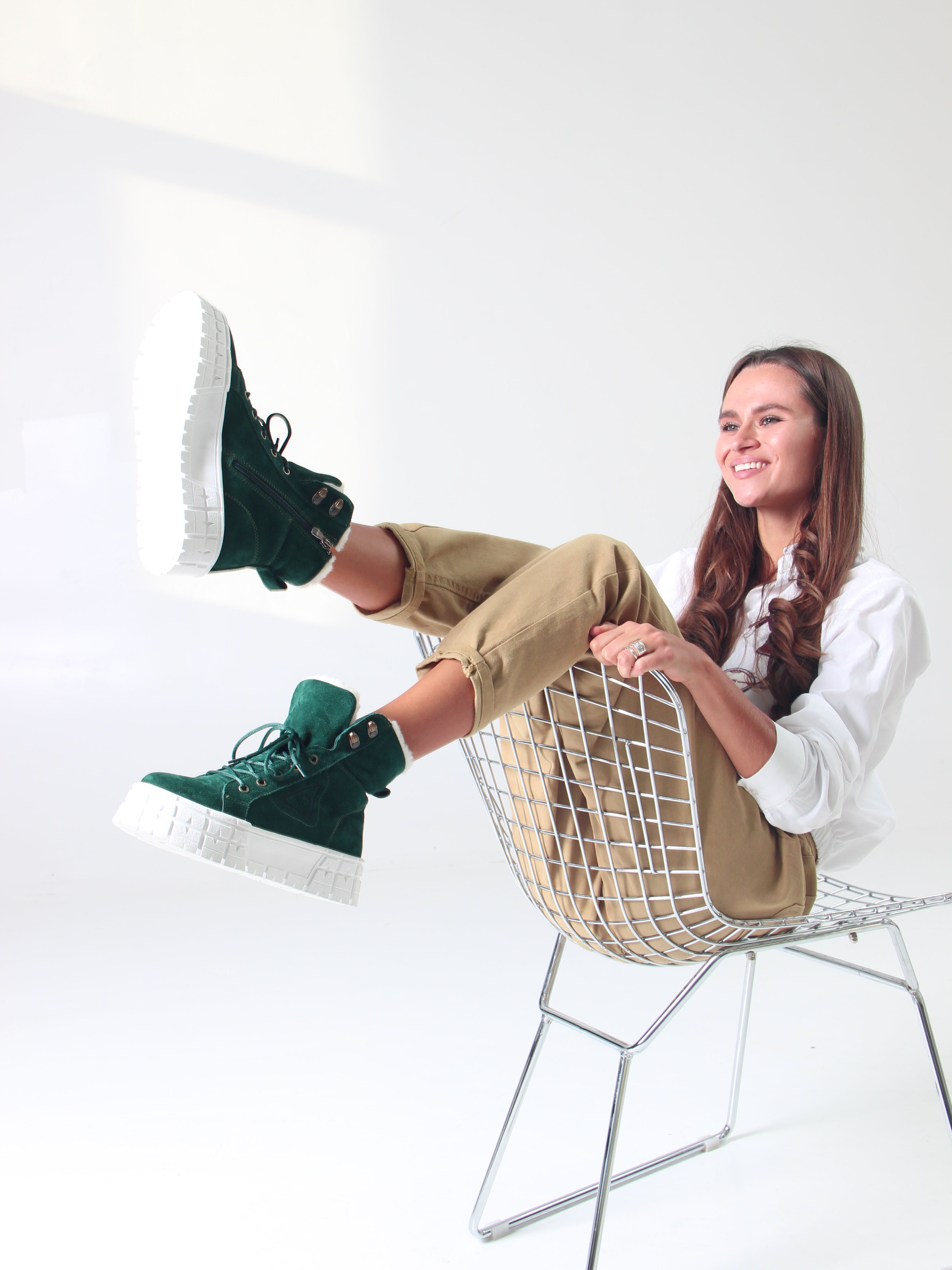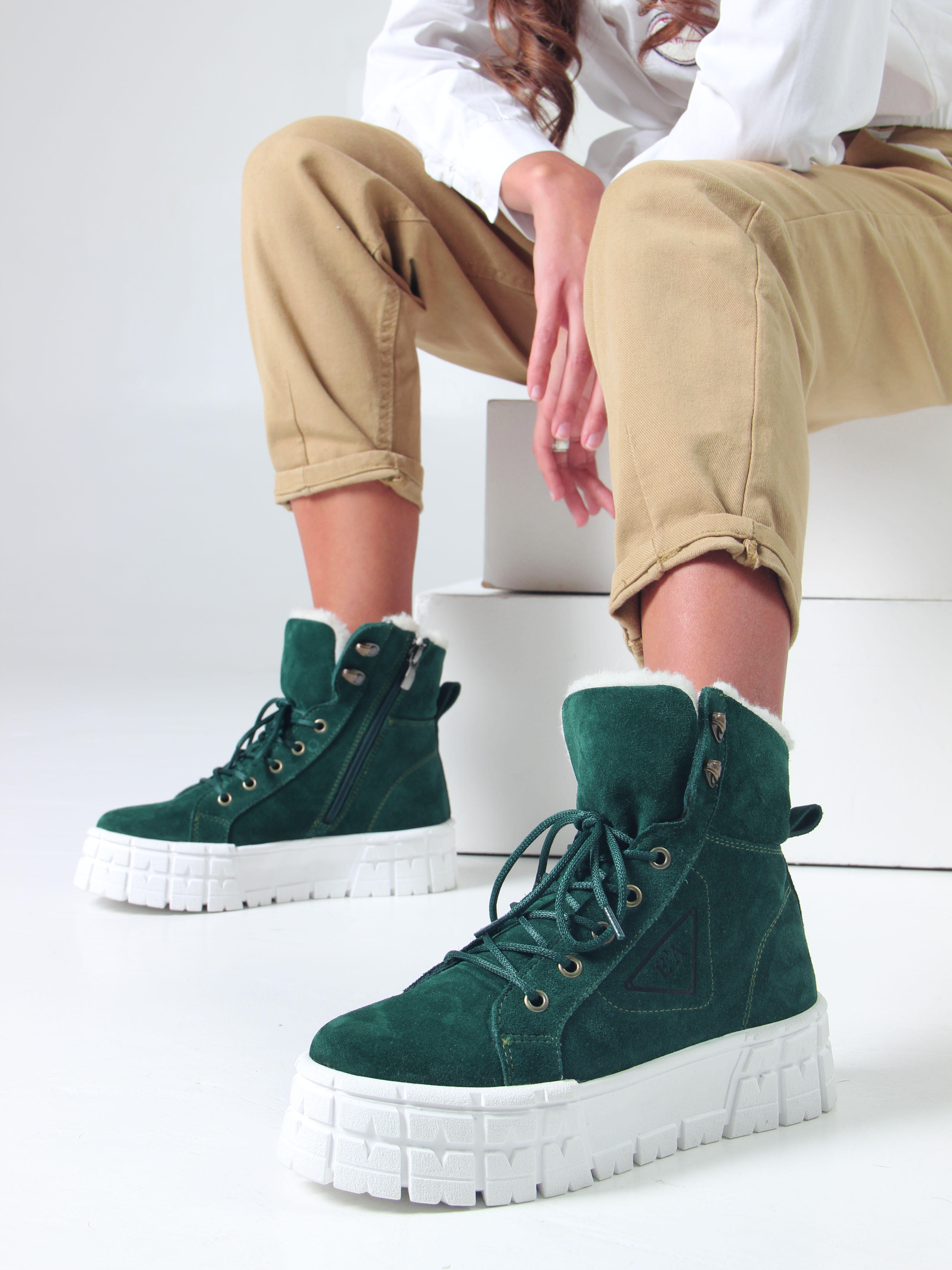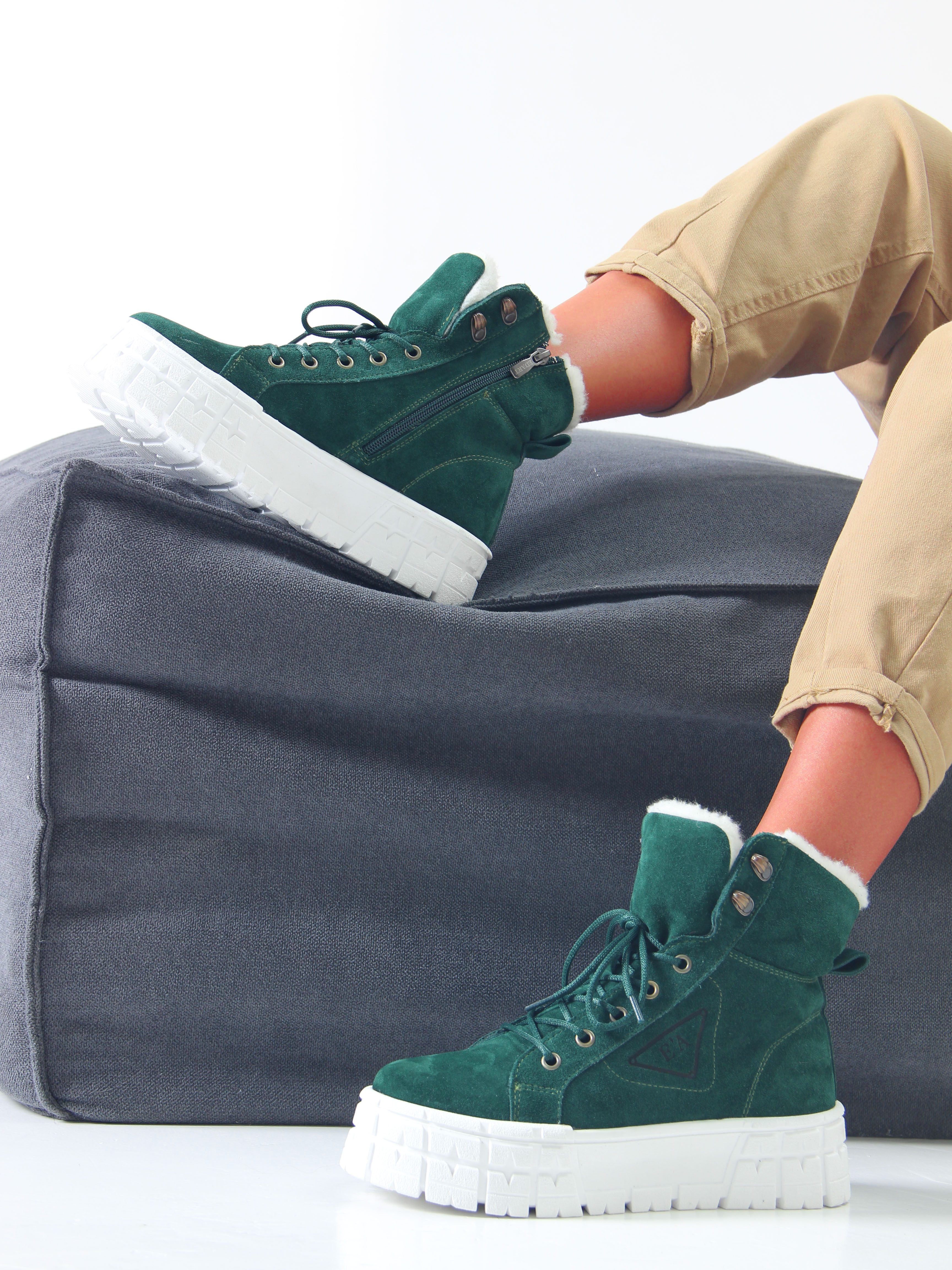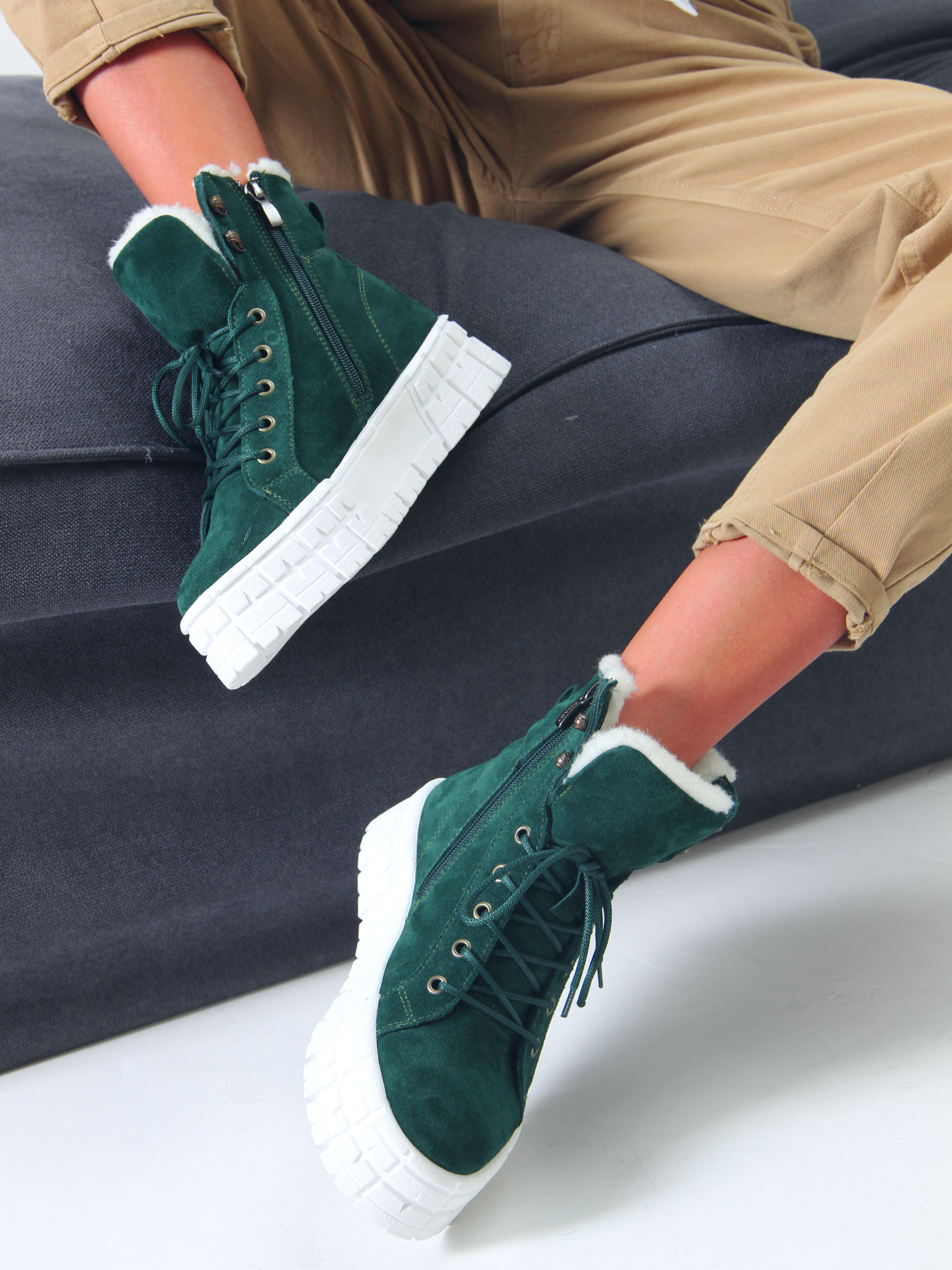 Ботинки замшевые зеленые