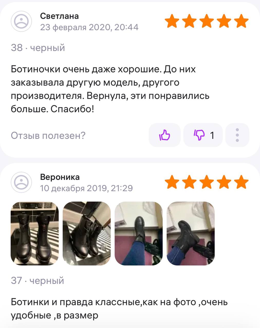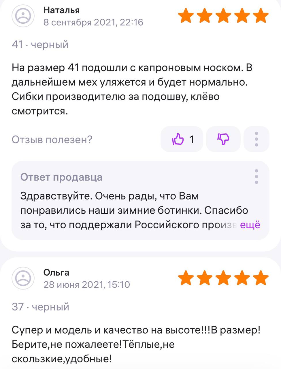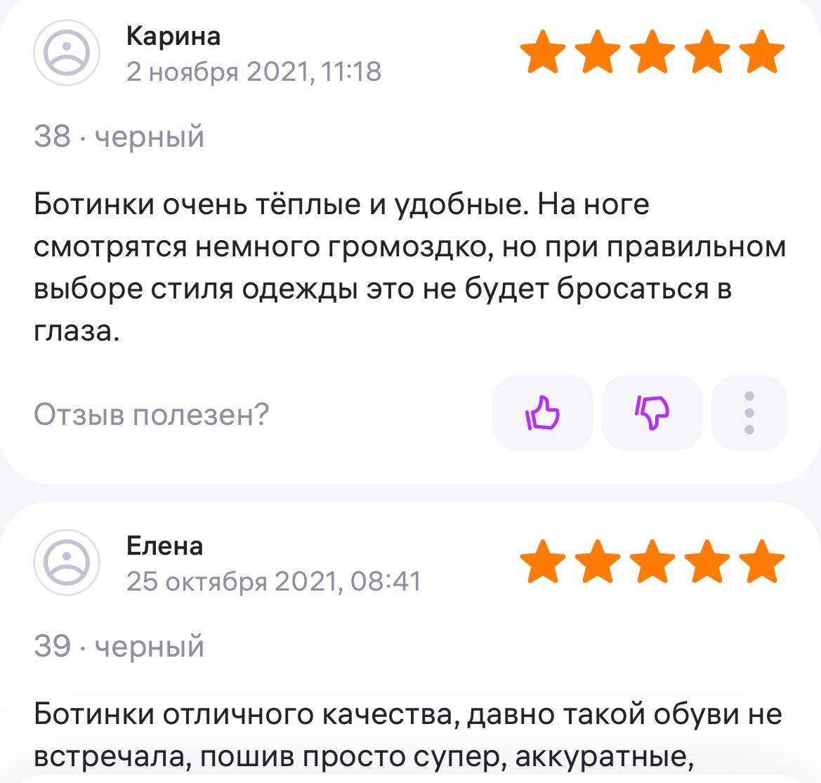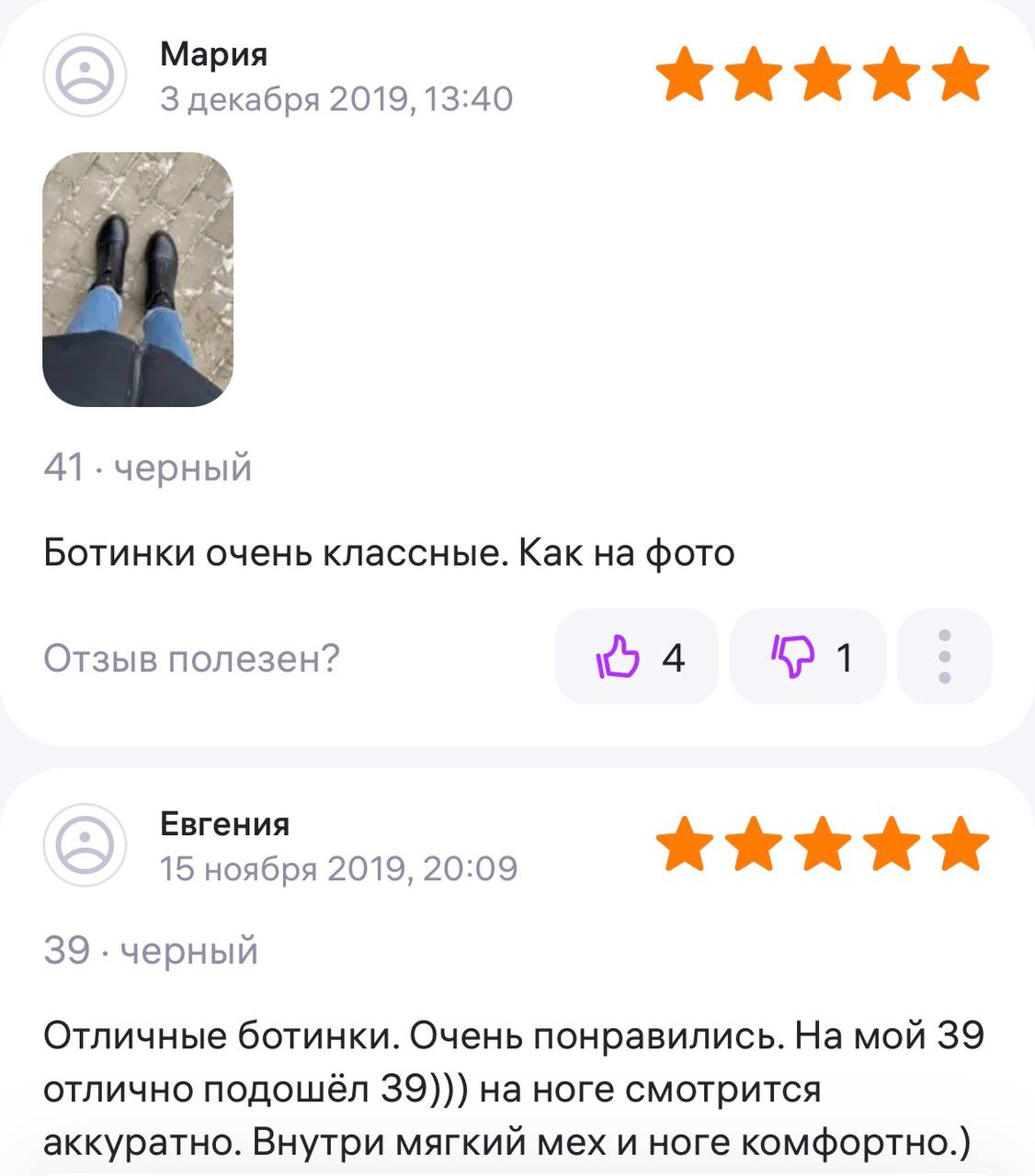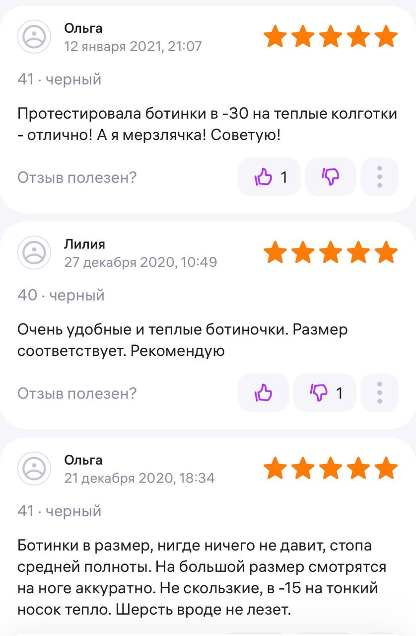 Ботинки хорошие, кажа мягкая, размеру соответствуют, но на пятке пришита заплатка из какой то пленки блесящей и когда первый раз померла она вся сморщилась и такое впечатление что сейчас лопнет. И я думаю со временем так и будет. Если бы не эта заплатка взяла бы удобные и мягкие