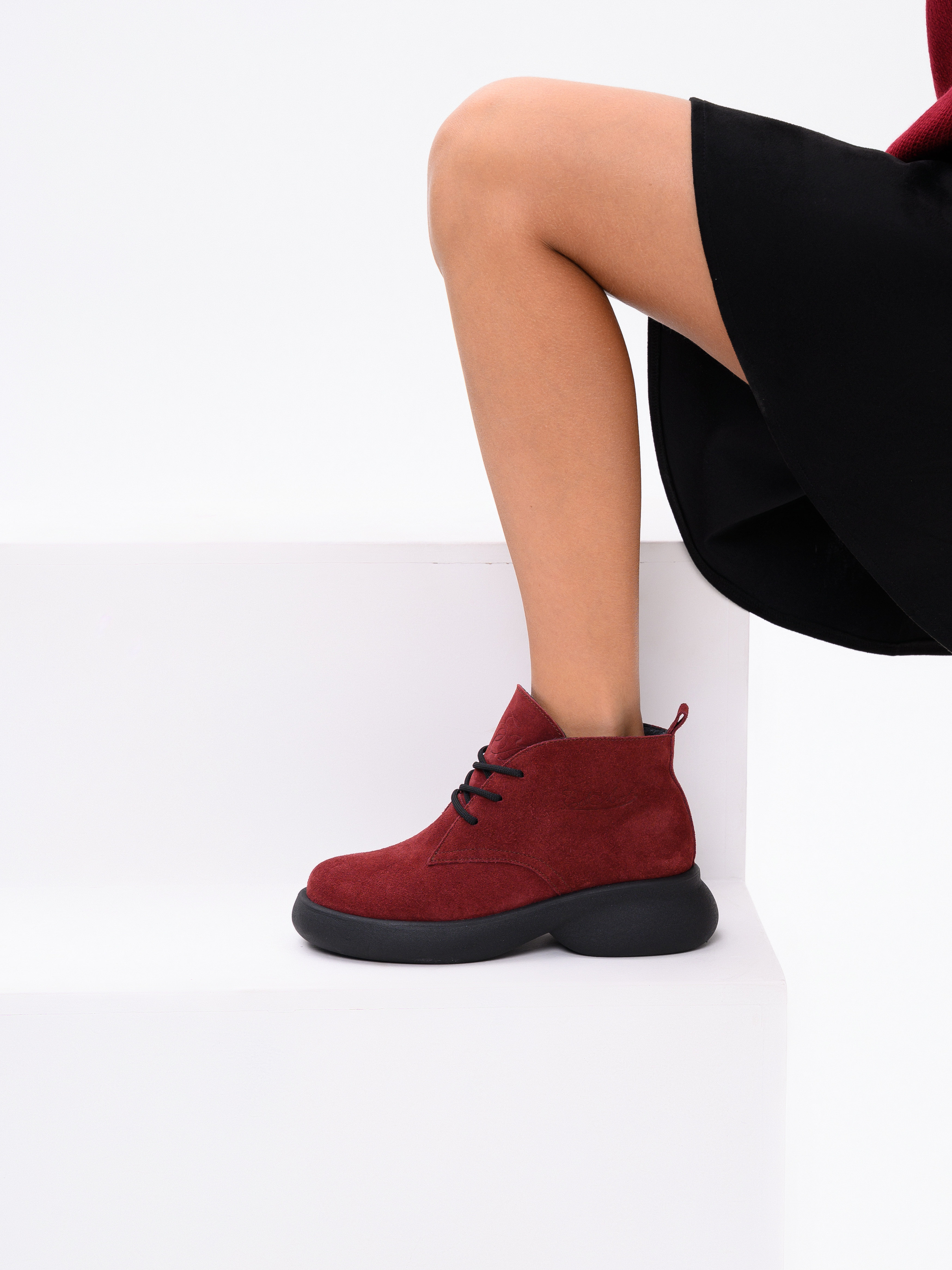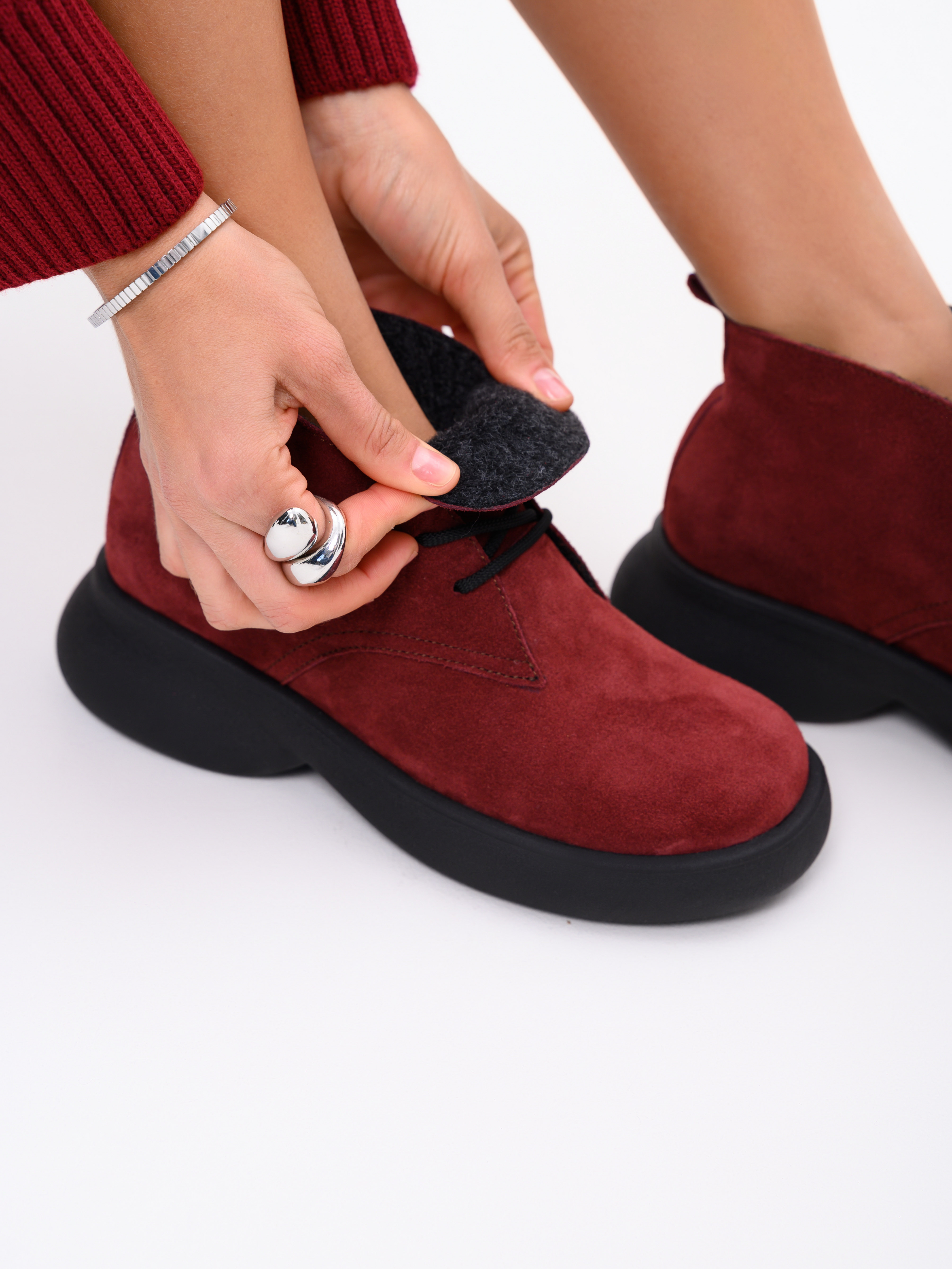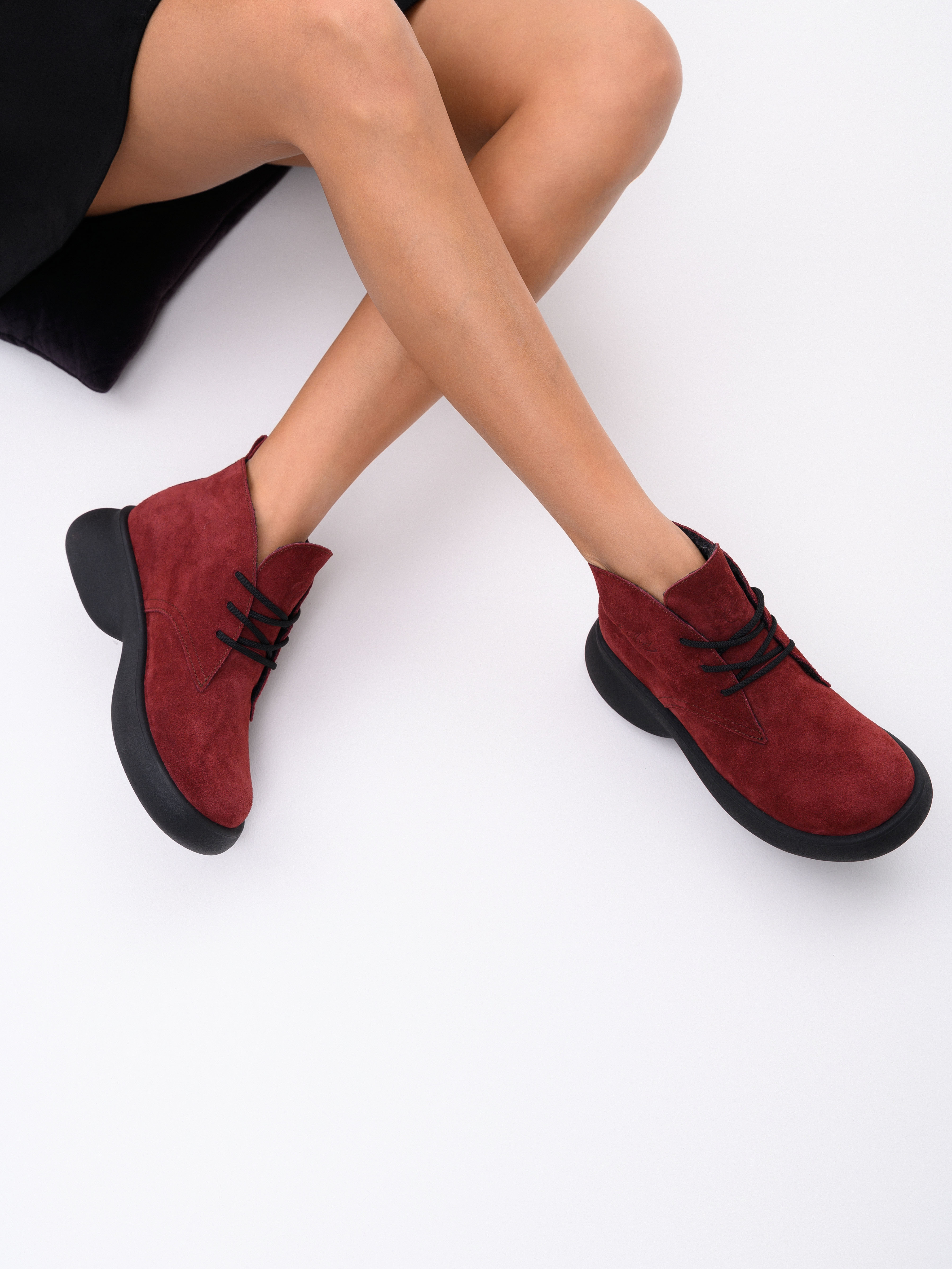 Ботинки натуральная замша бордовые