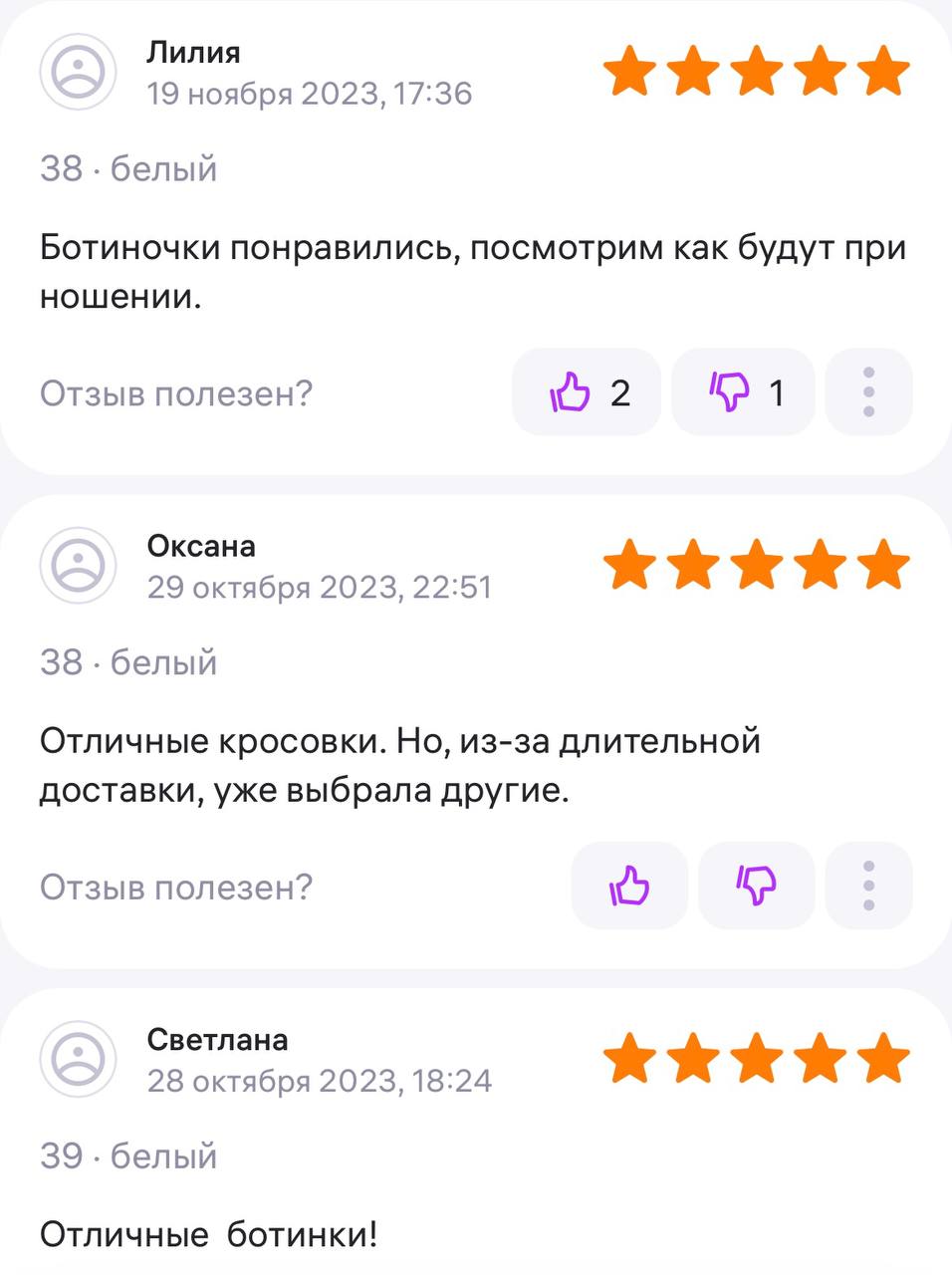 Задайте свой вопрос первым.Мы подскажем всё о посадке, размере и уходе за обувью