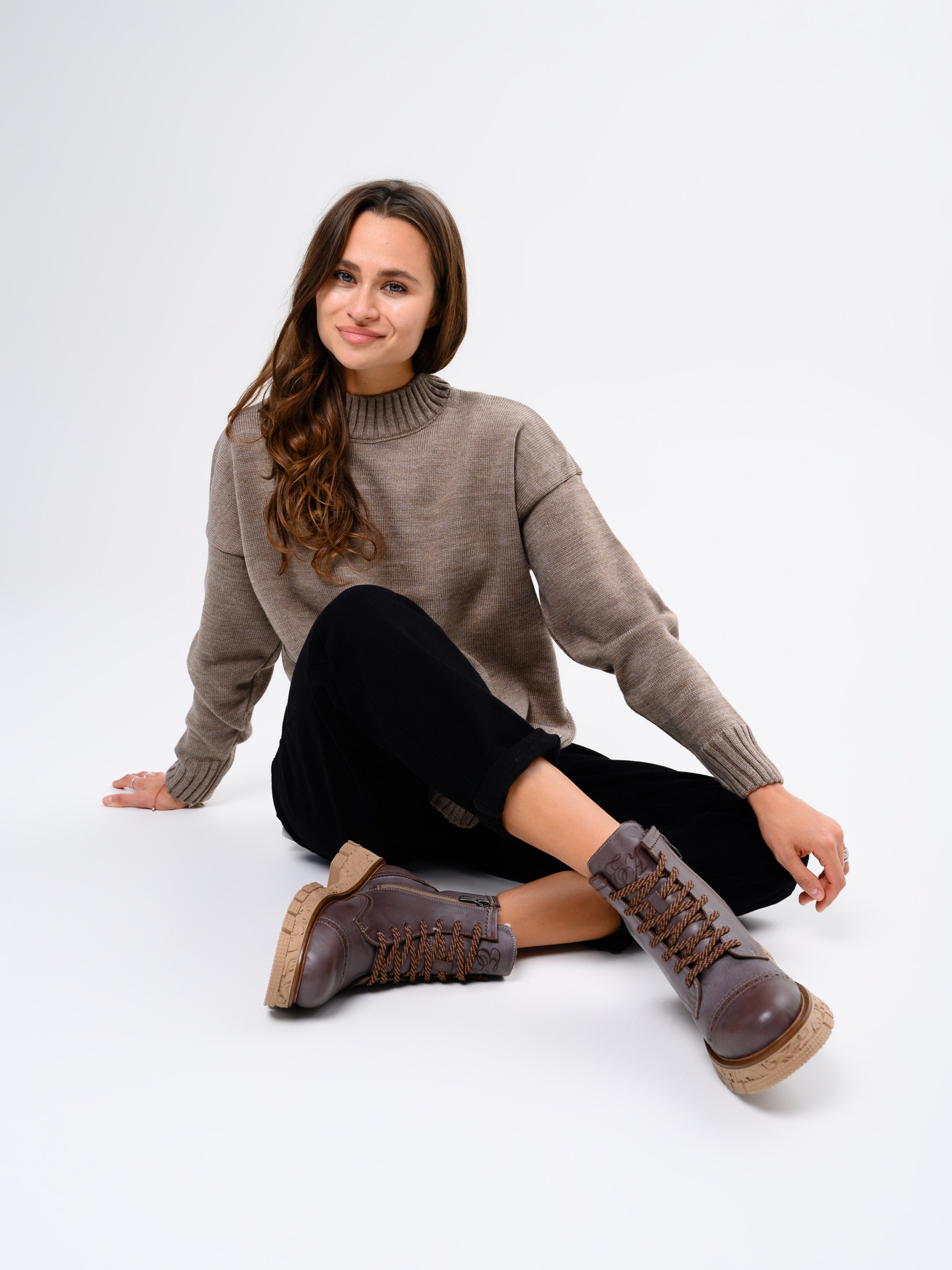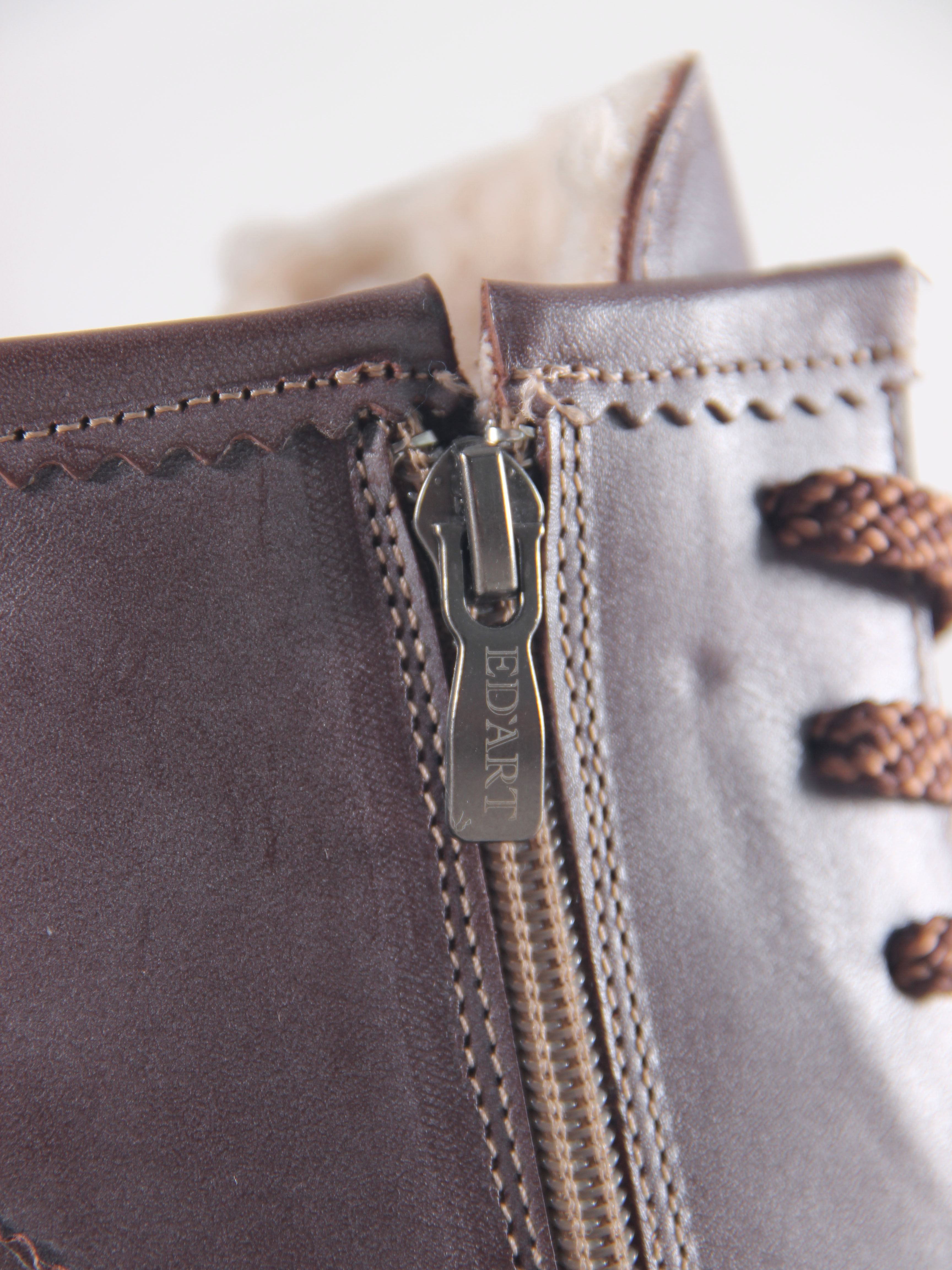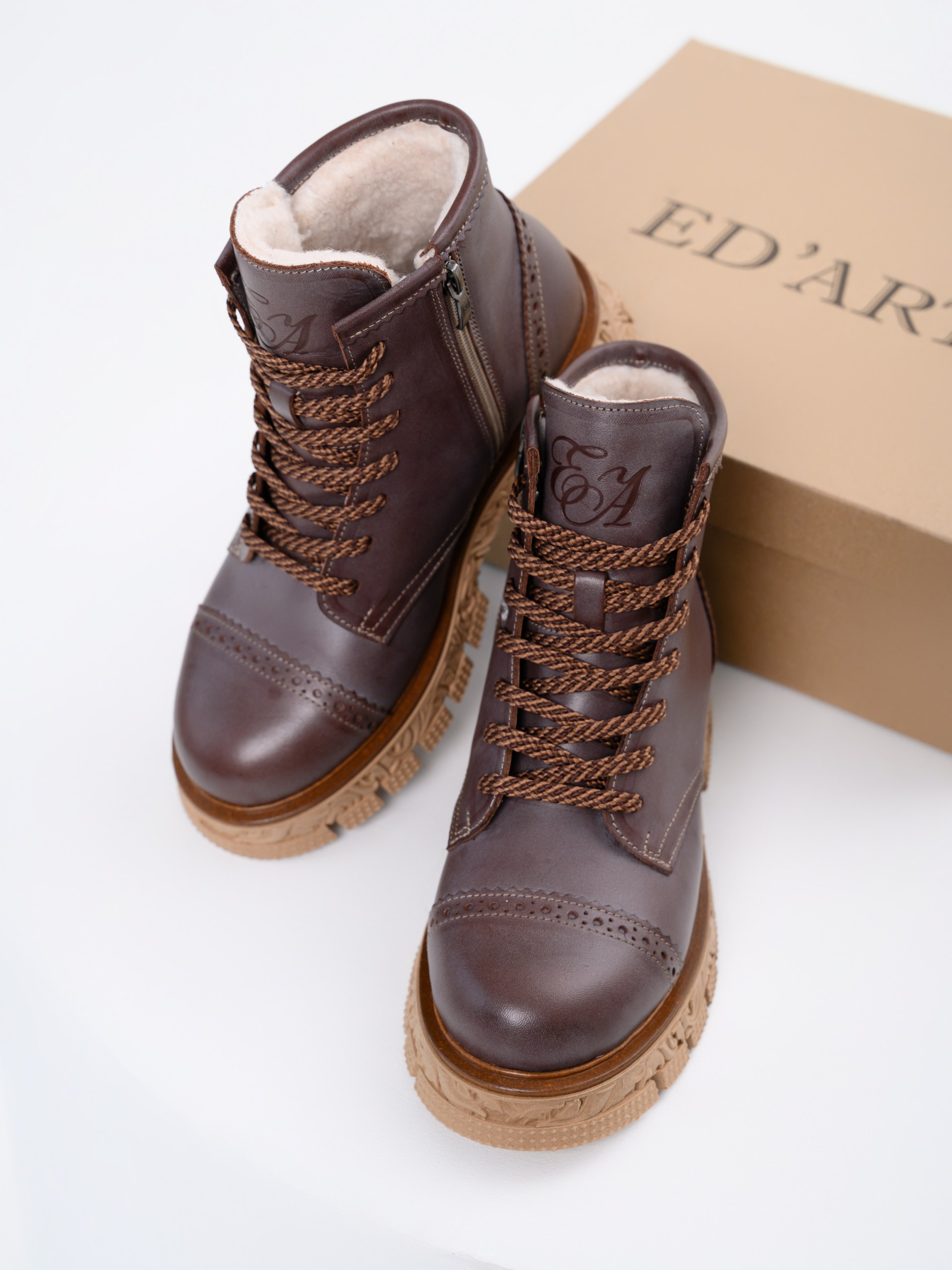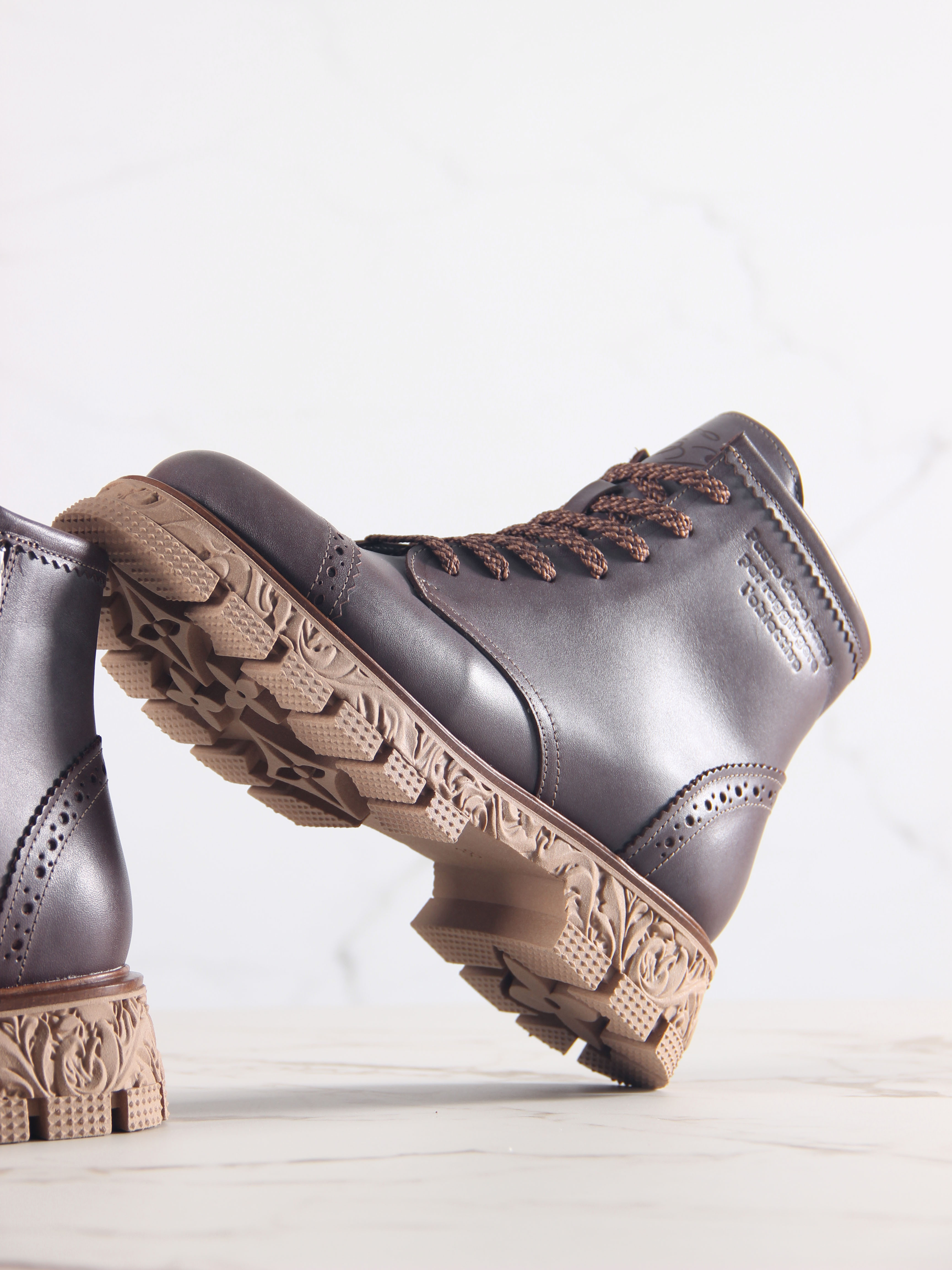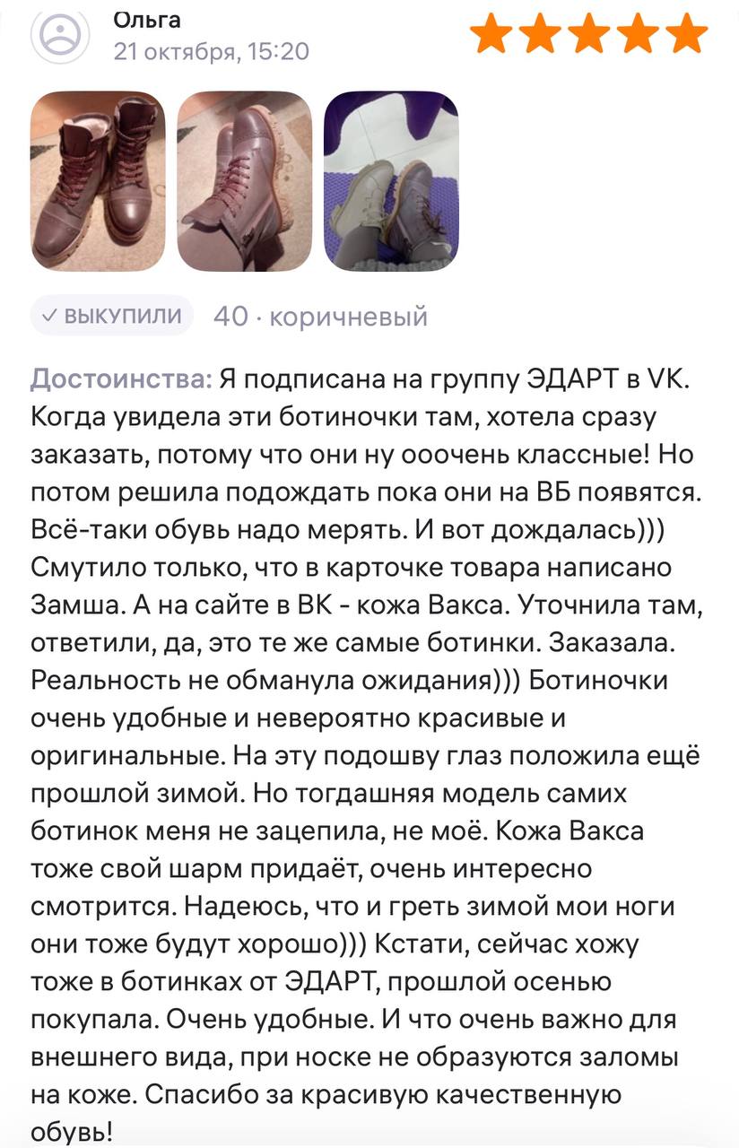В этих ботинках использована кожа Вакс с восковым притиром. Кожа имеется у нас разных цветов, но сейчас предлагаем рассмотреть коричневый. Изначально кожа имеет белёсое покрытие (напыление), под которым даже не всегда просматривается основной цвет. Снимается это напыление только на готовом изделии, путём шлифовки обуви машинным способом, с применением щётки с натуральным ворсом и пчелиного воска. Получается пишущий эффект, неоднородный и всегда разный, каждая пара обуви становится уникальной, с неповторимым рисунком. Но что общее точно есть у любой пары обуви из нашей кожи- это красивая переливающаяся фактура и благородный вид, который сделает ваш образ неповторимым и притягивающим взгляды!