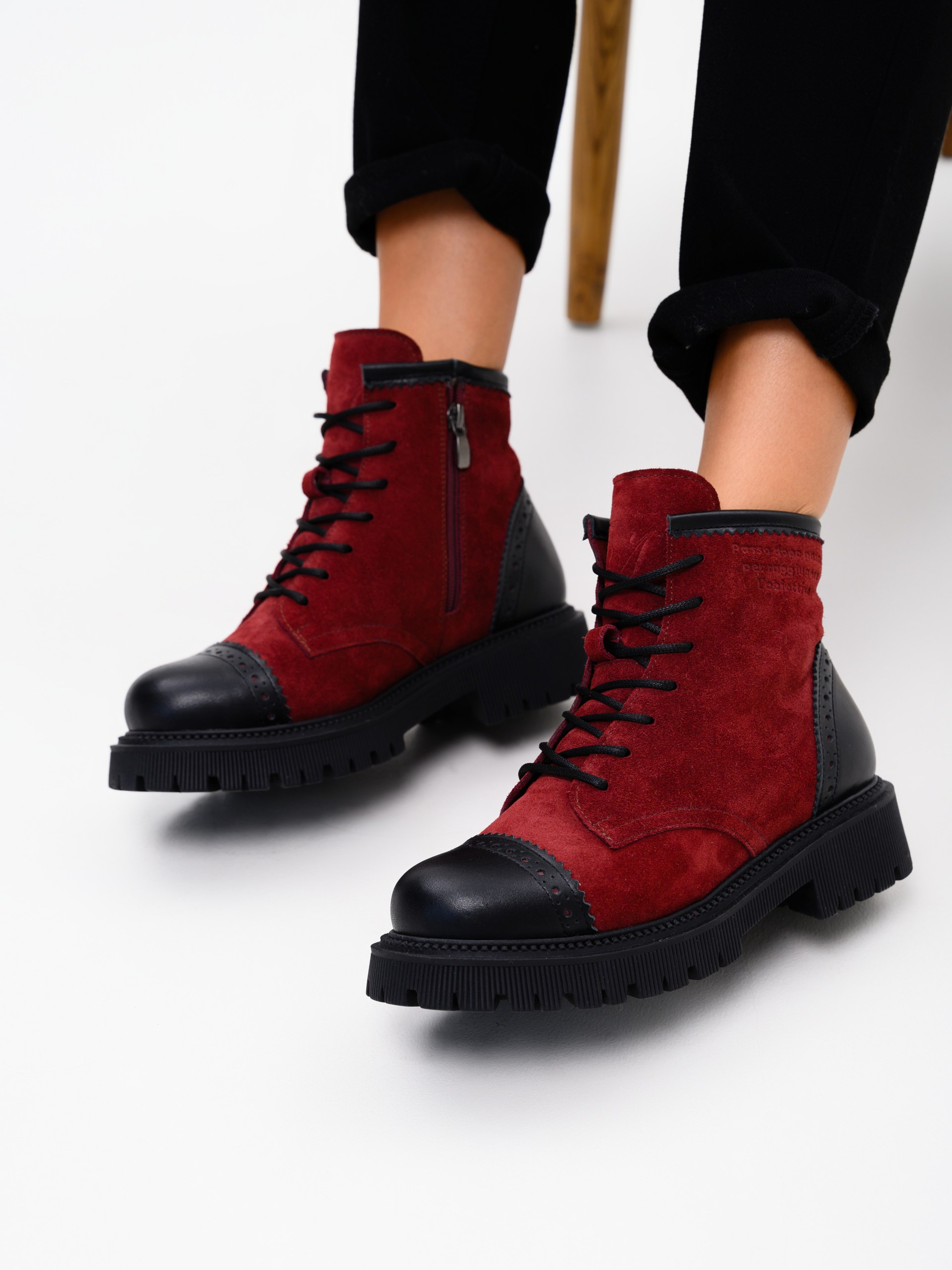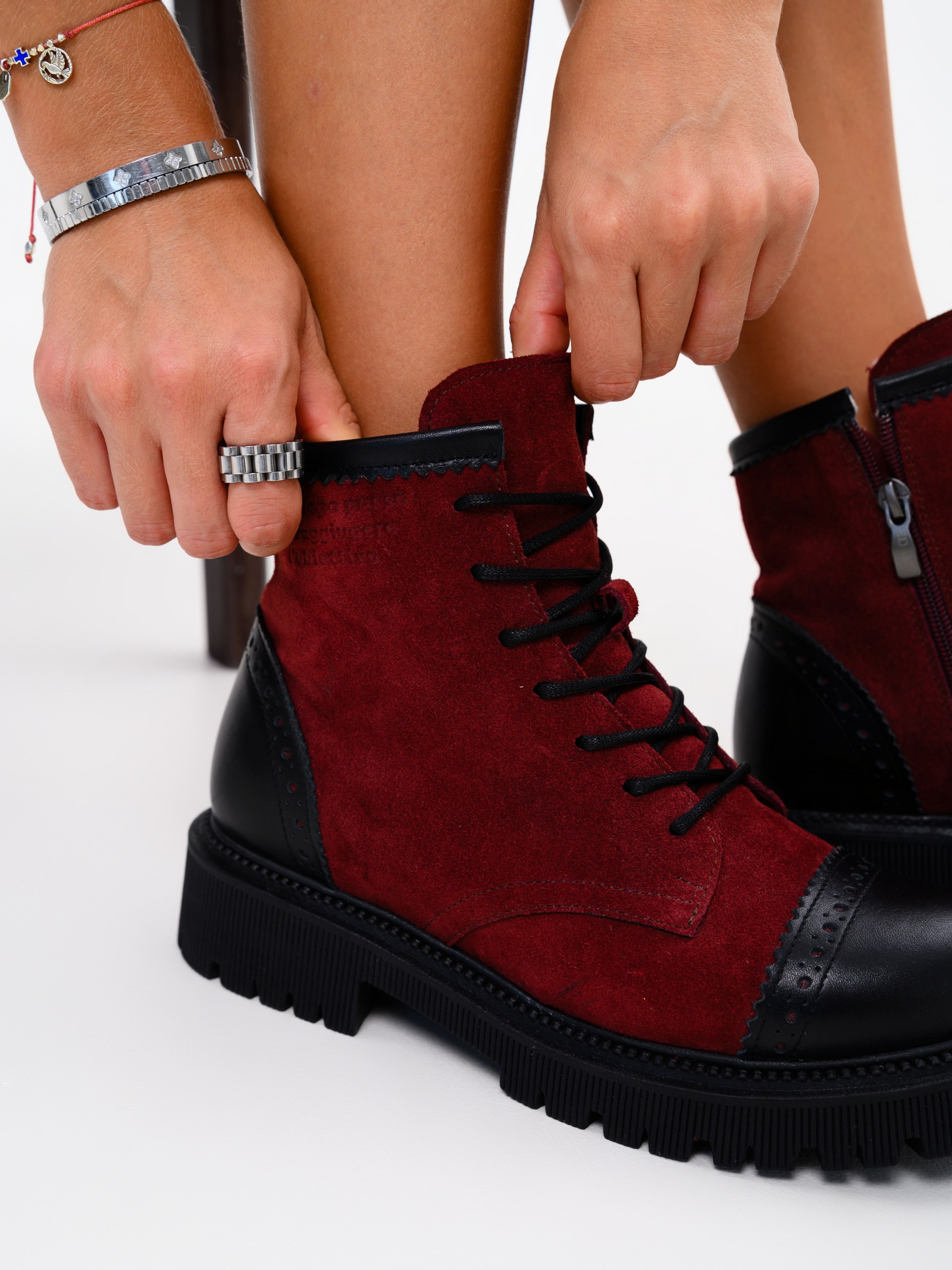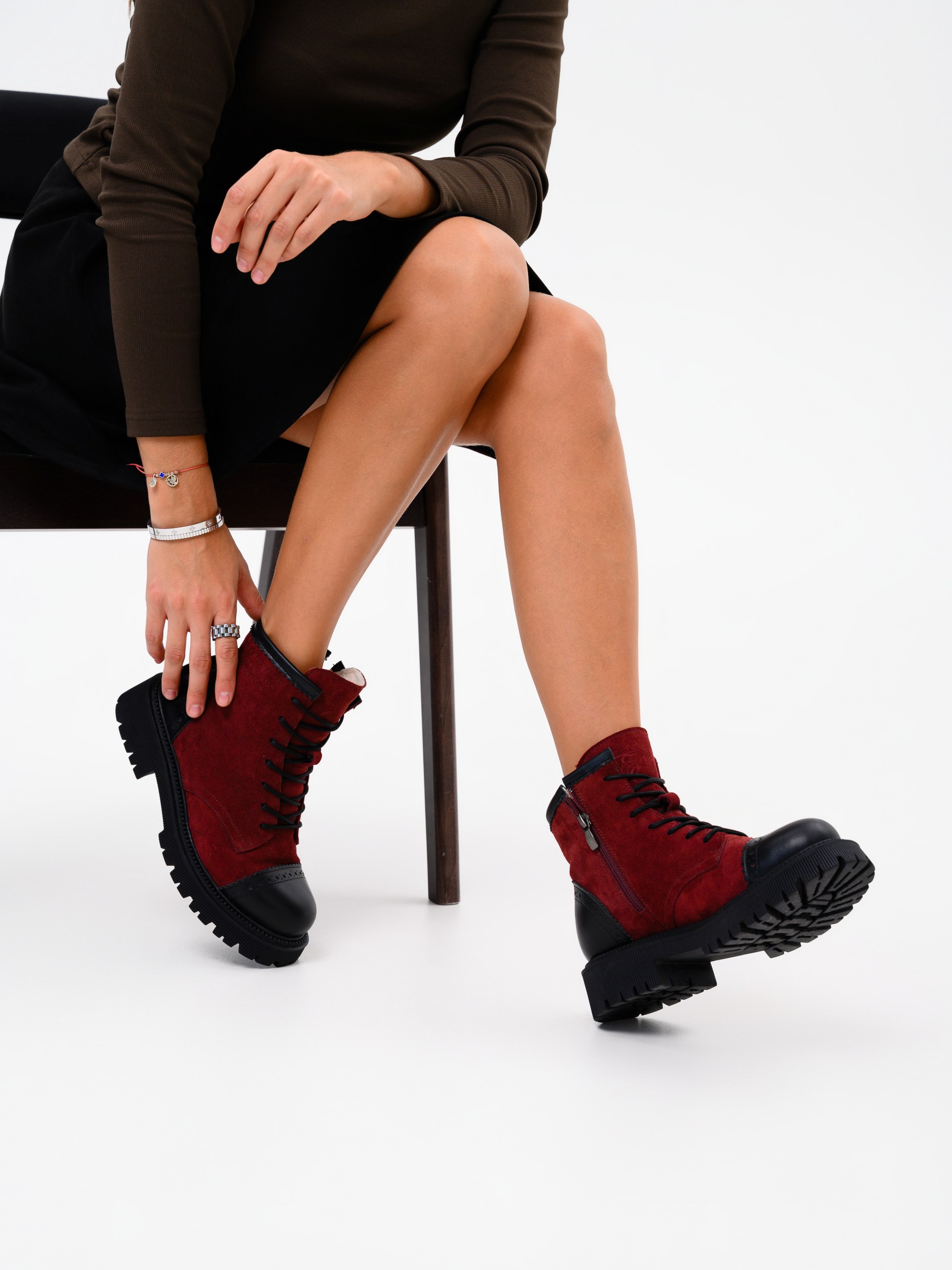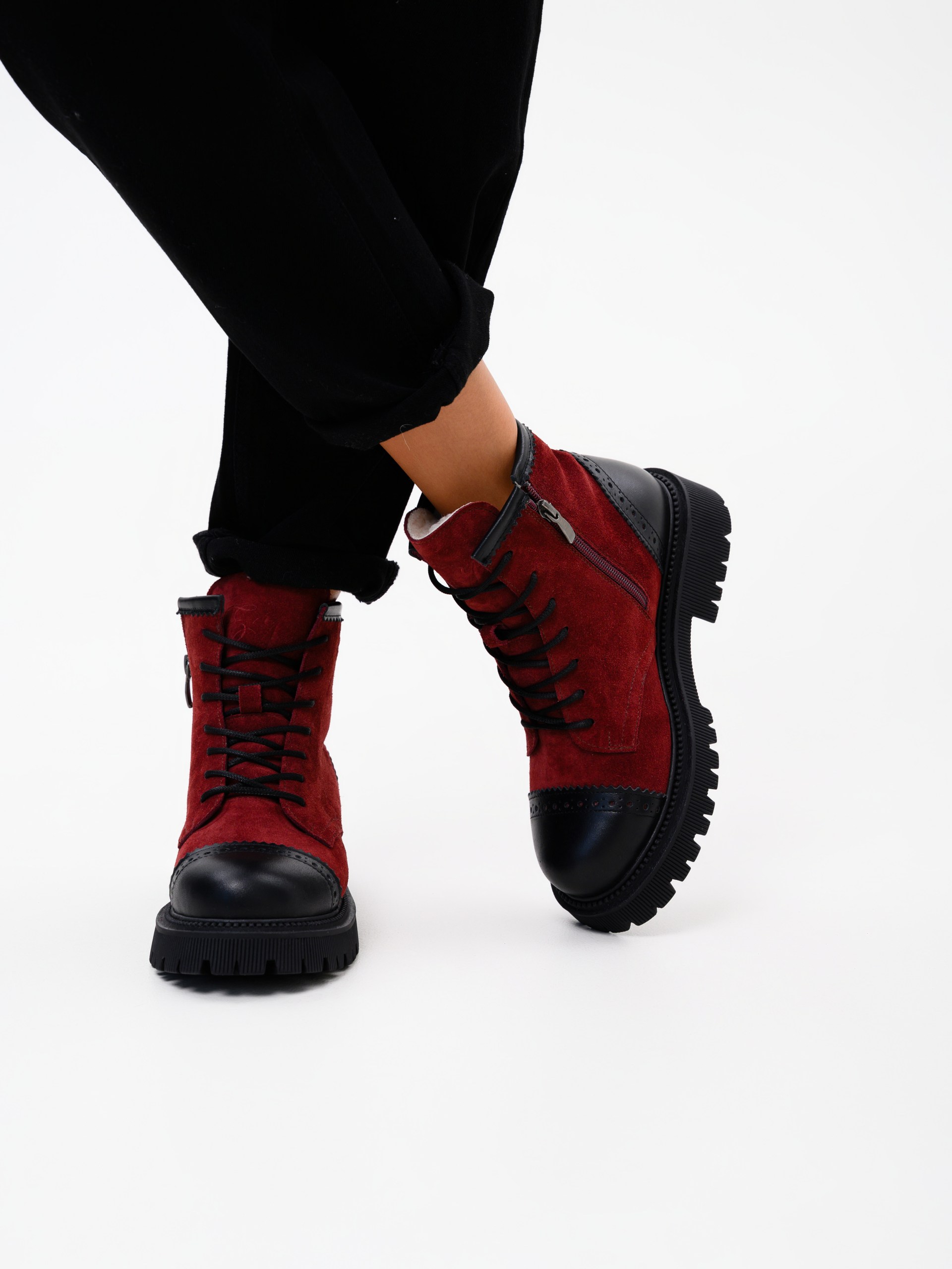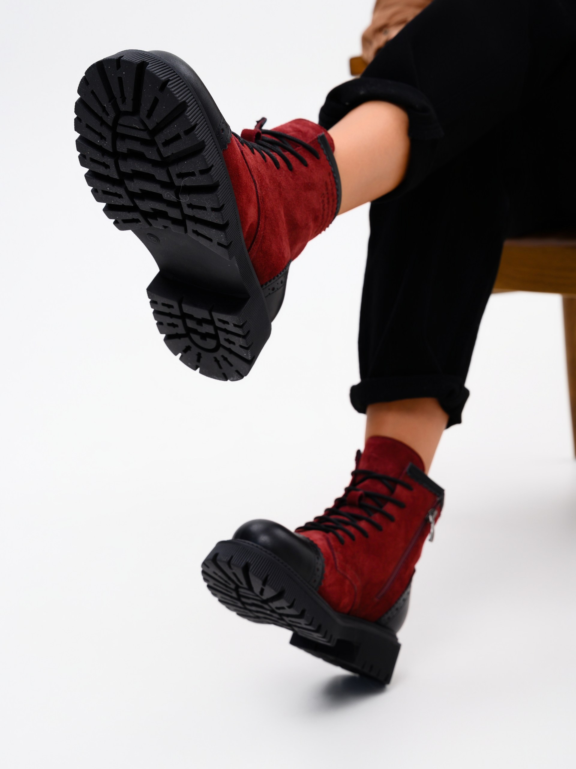 Ботинки замшевые бордовые