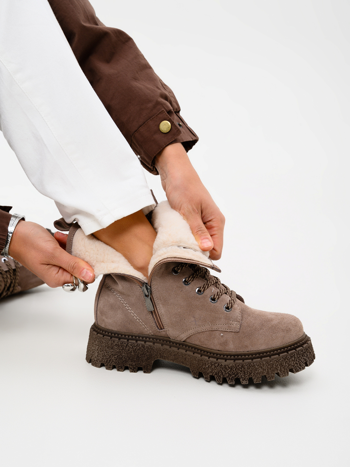 Ботинки коричневые замшевые