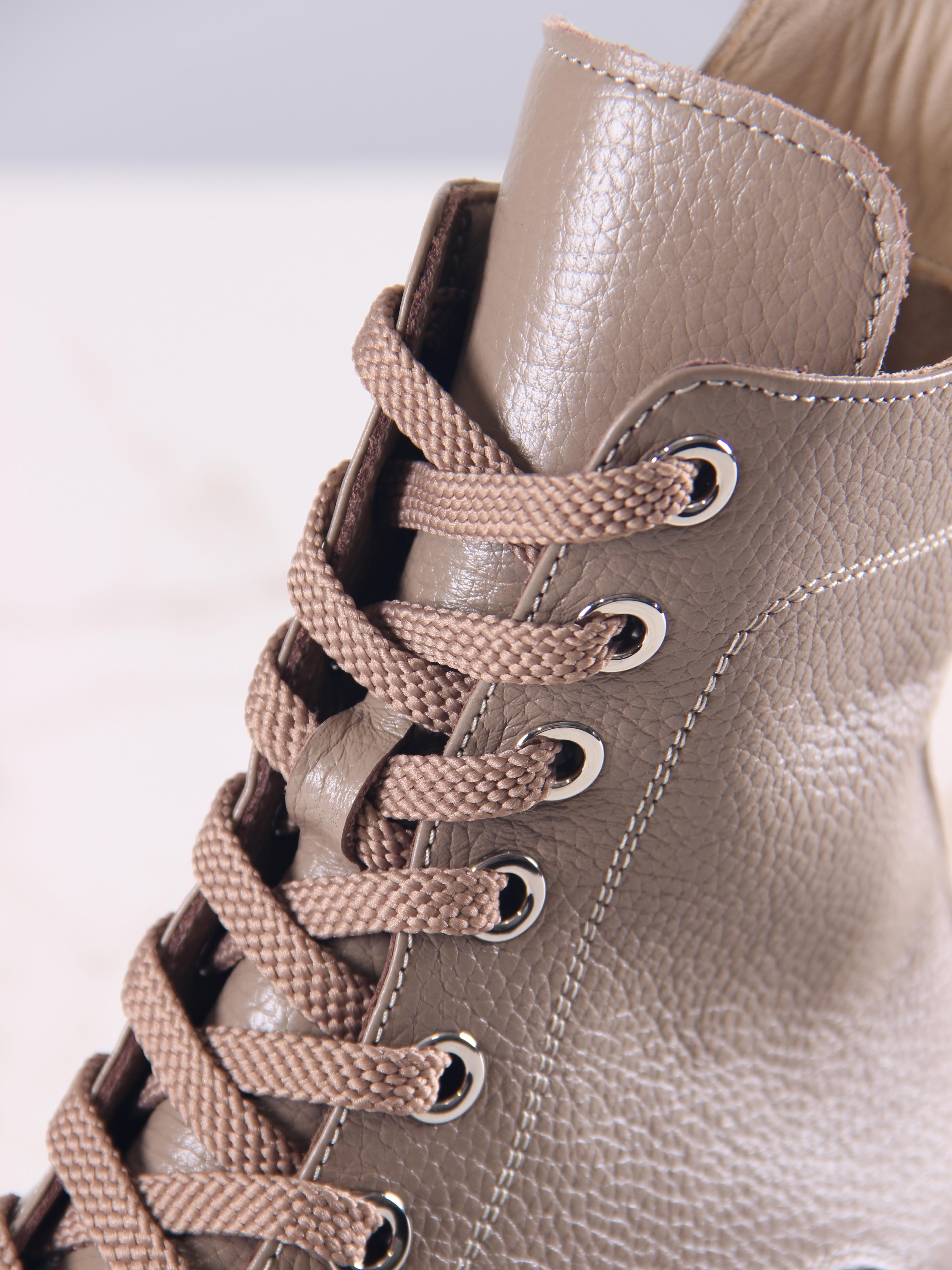 Ботинки хорошие, кажа мягкая, размеру соответствуют, но на пятке пришита заплатка из какой то пленки блесящей и когда первый раз померла она вся сморщилась и такое впечатление что сейчас лопнет. И я думаю со временем так и будет. Если бы не эта заплатка взяла бы удобные и мягкие