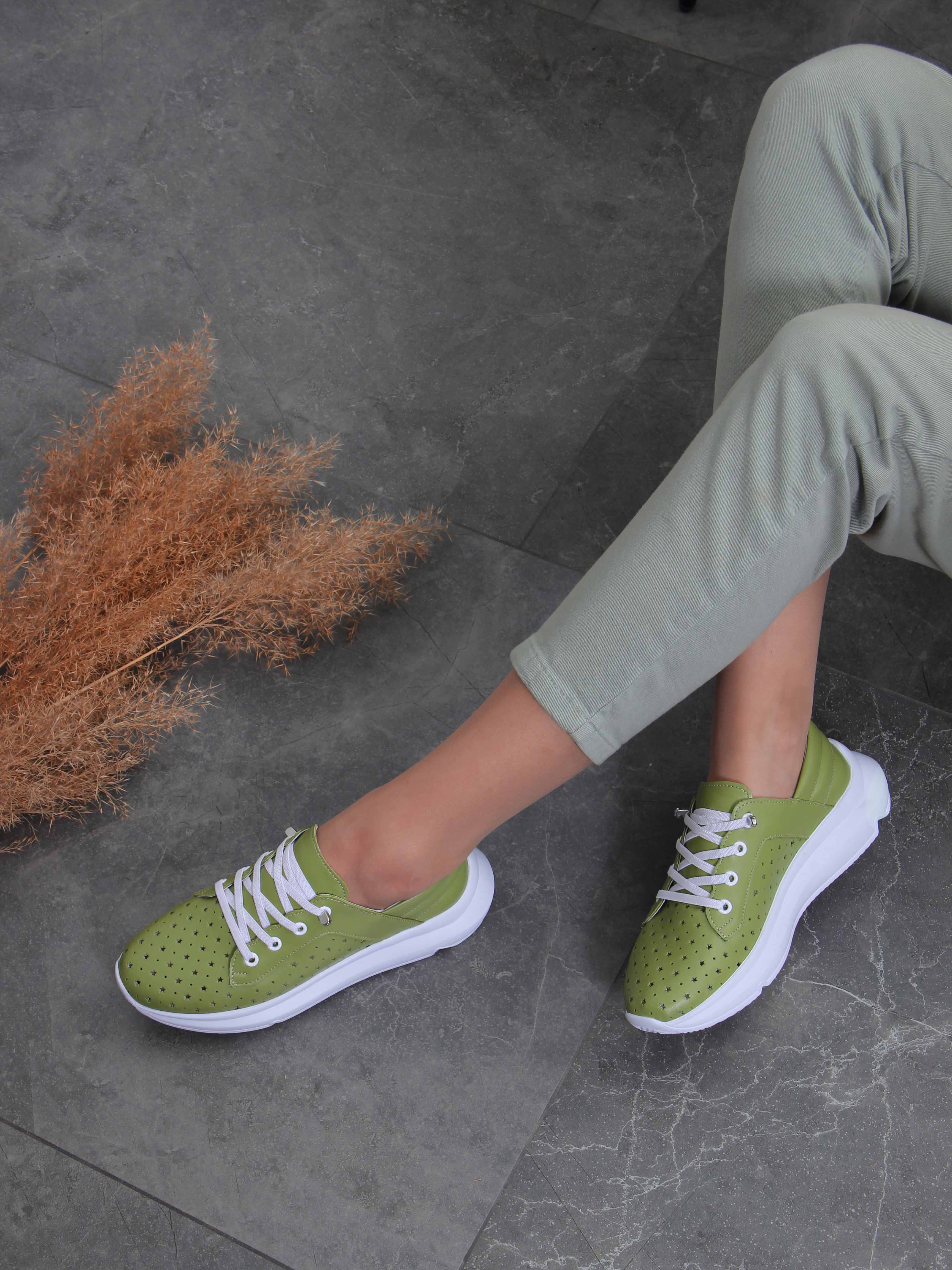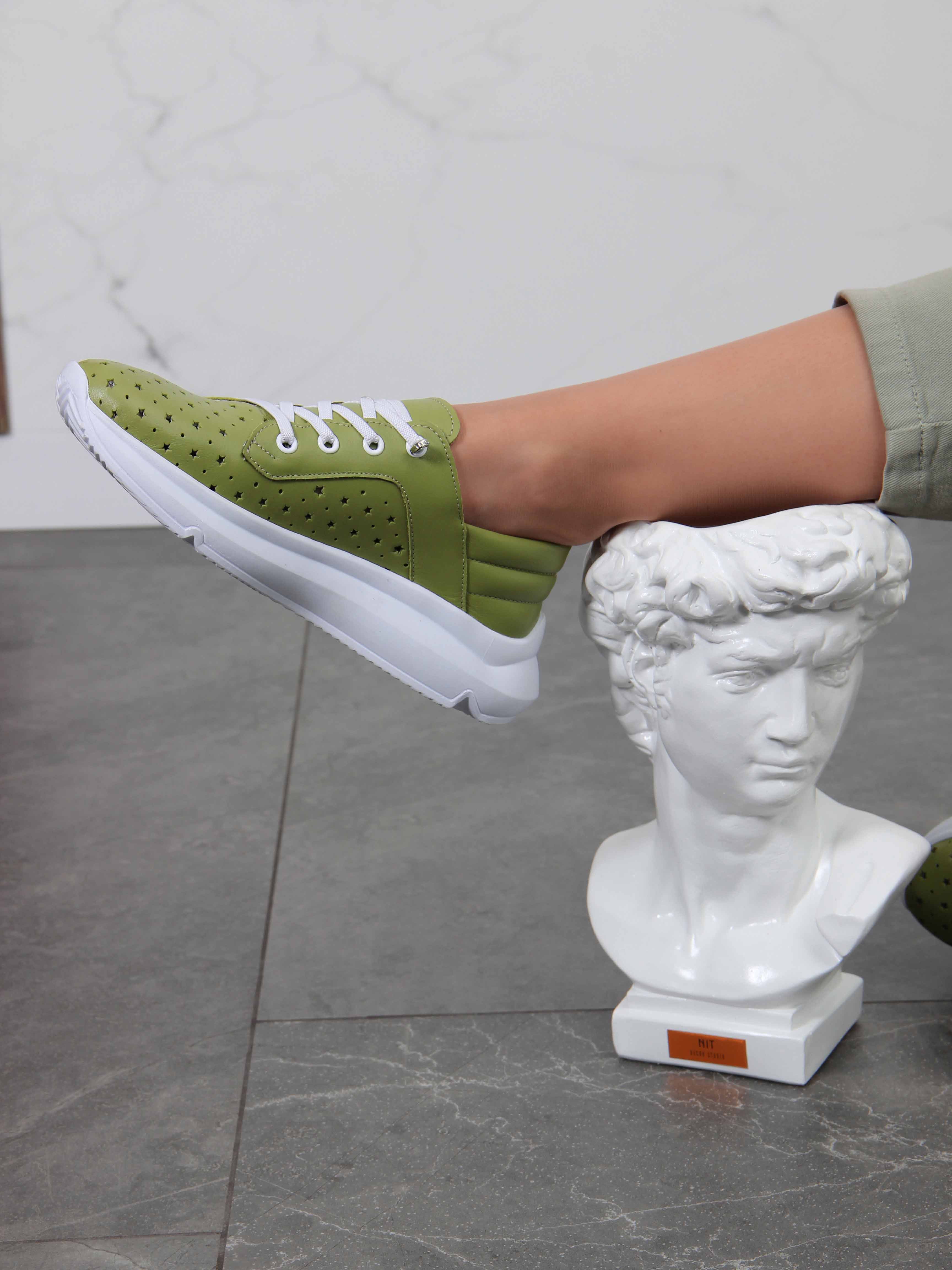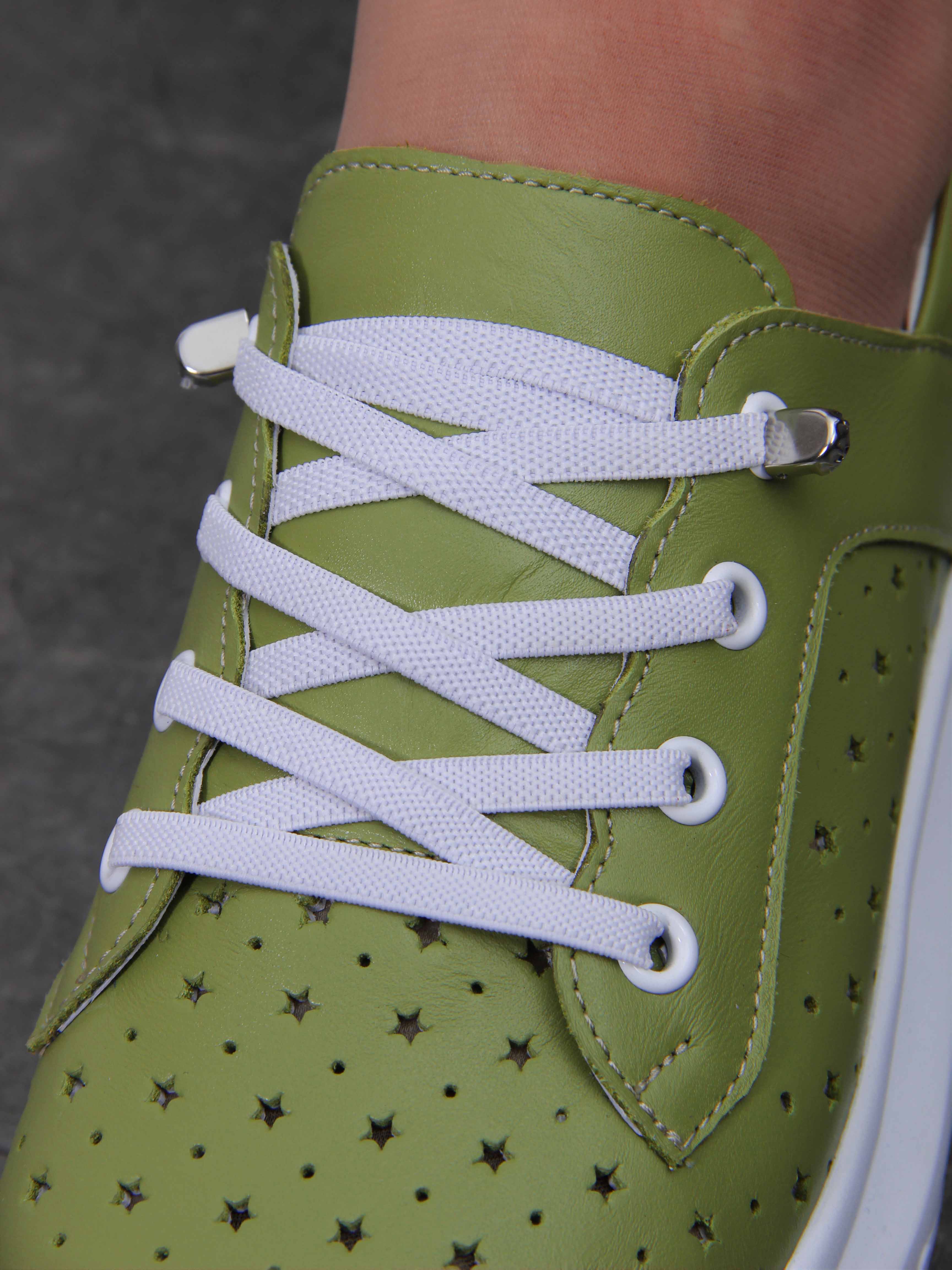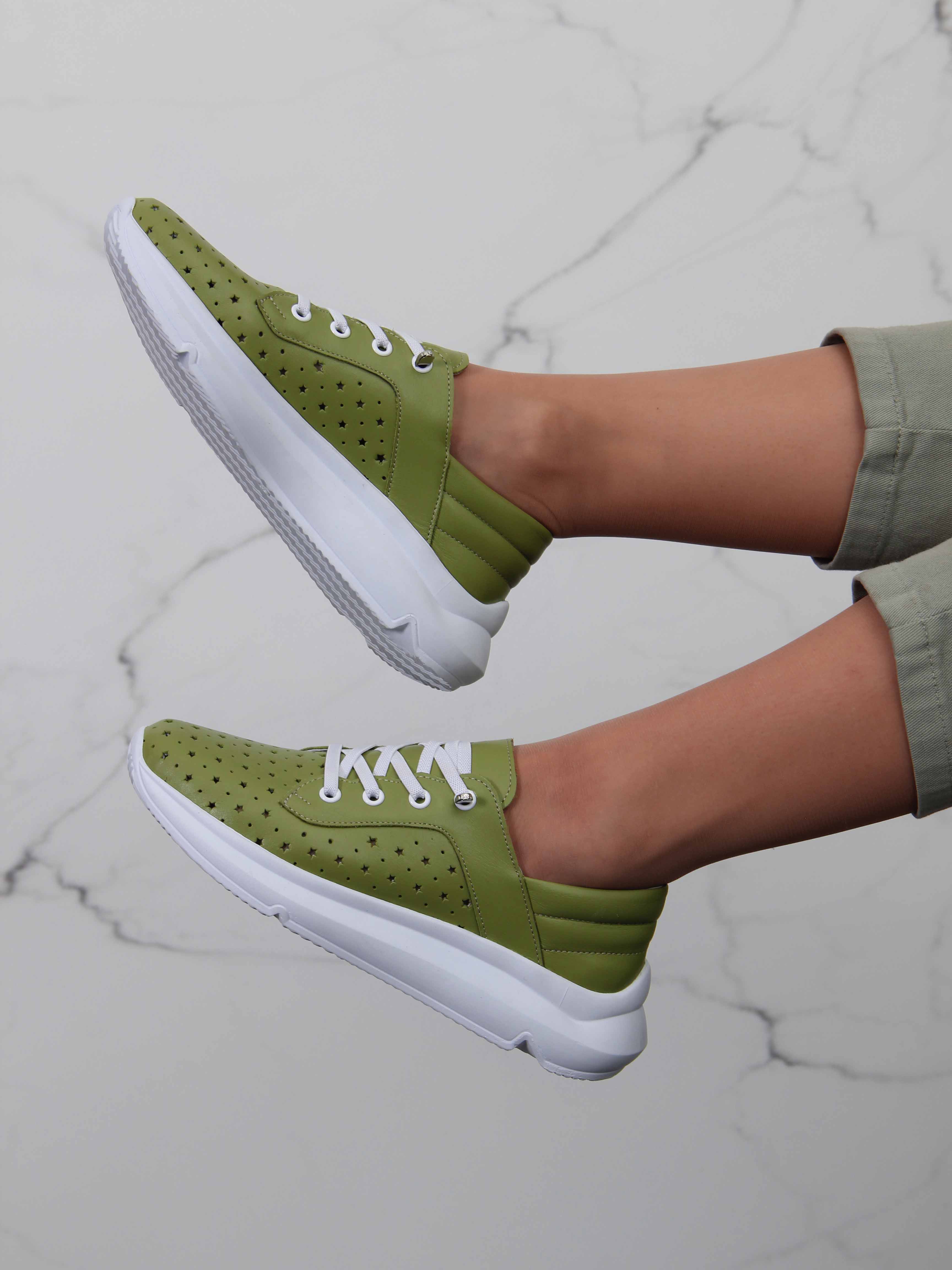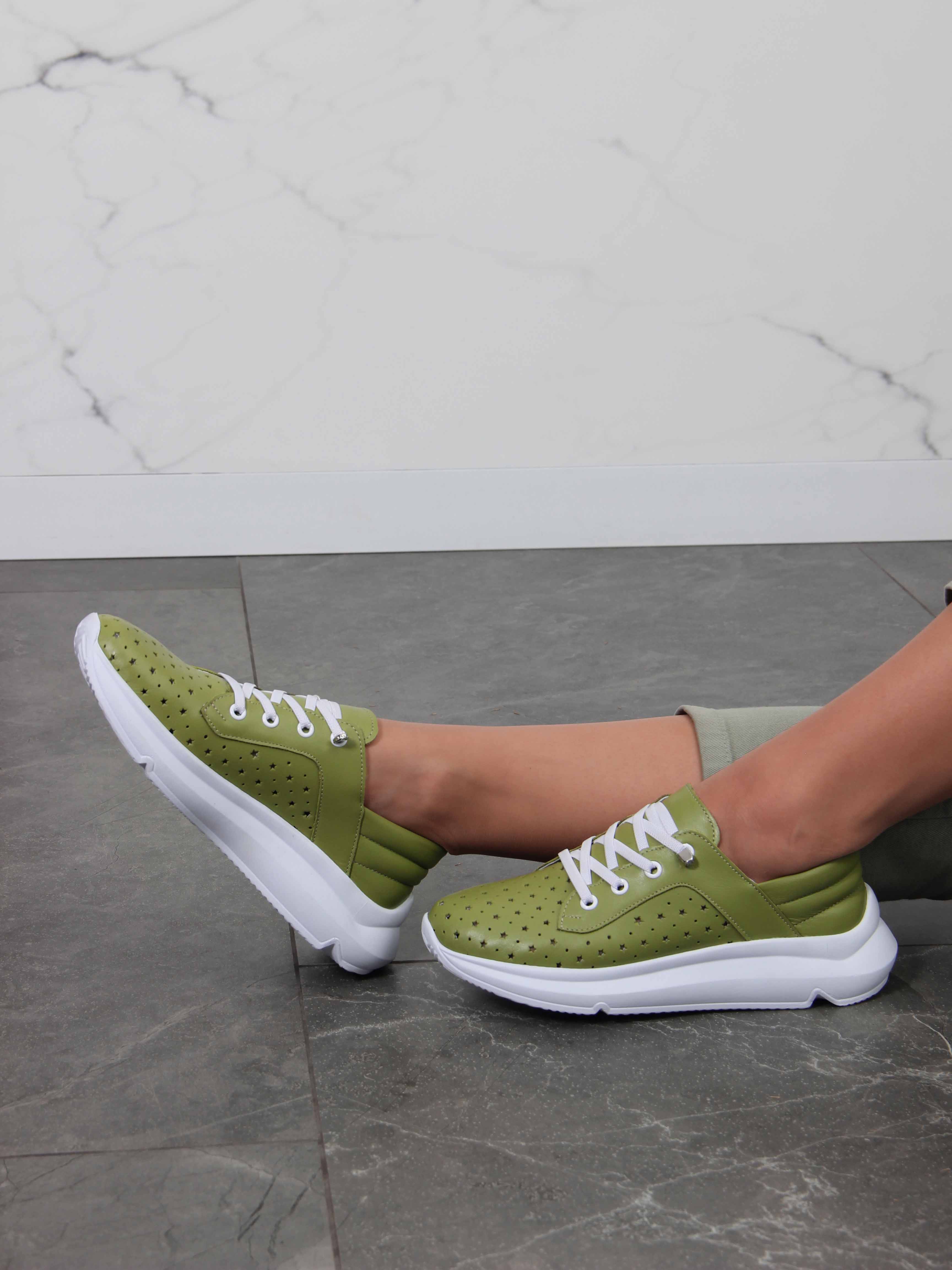 Кроссовки кожаные зеленые с перфорацией