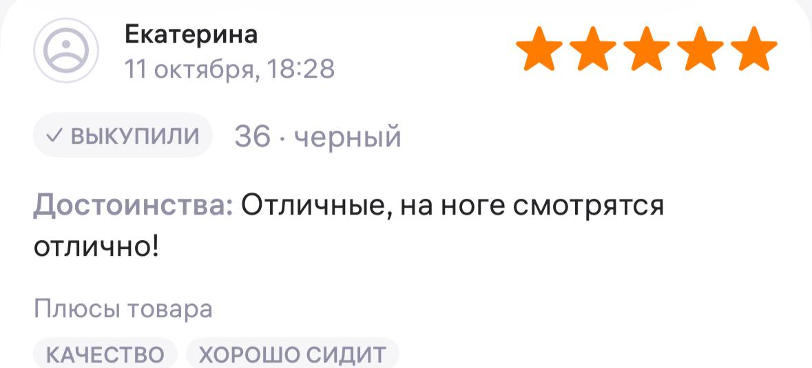 Ботинки хорошие, кажа мягкая, размеру соответствуют, но на пятке пришита заплатка из какой то пленки блесящей и когда первый раз померла она вся сморщилась и такое впечатление что сейчас лопнет. И я думаю со временем так и будет. Если бы не эта заплатка взяла бы удобные и мягкие