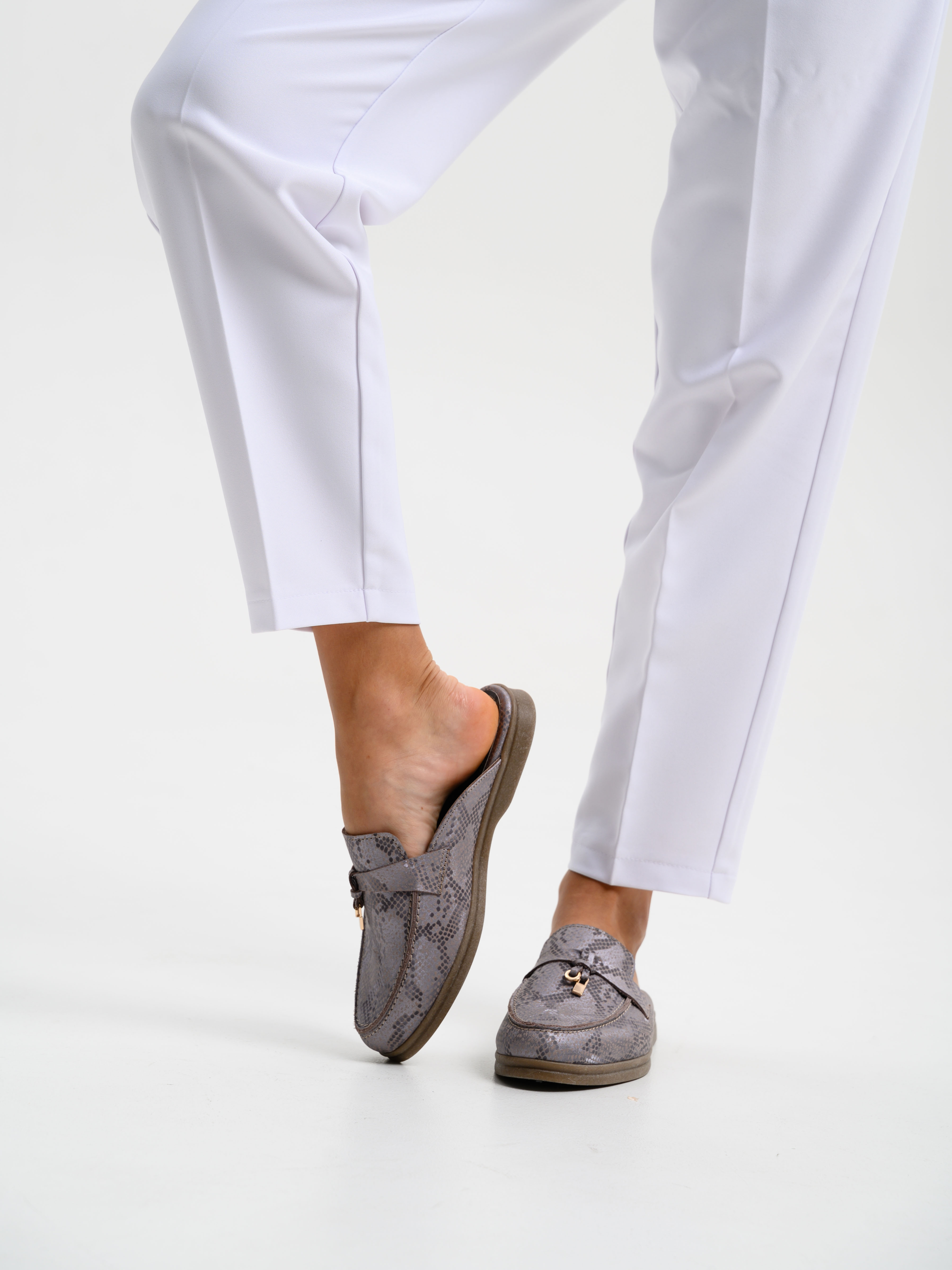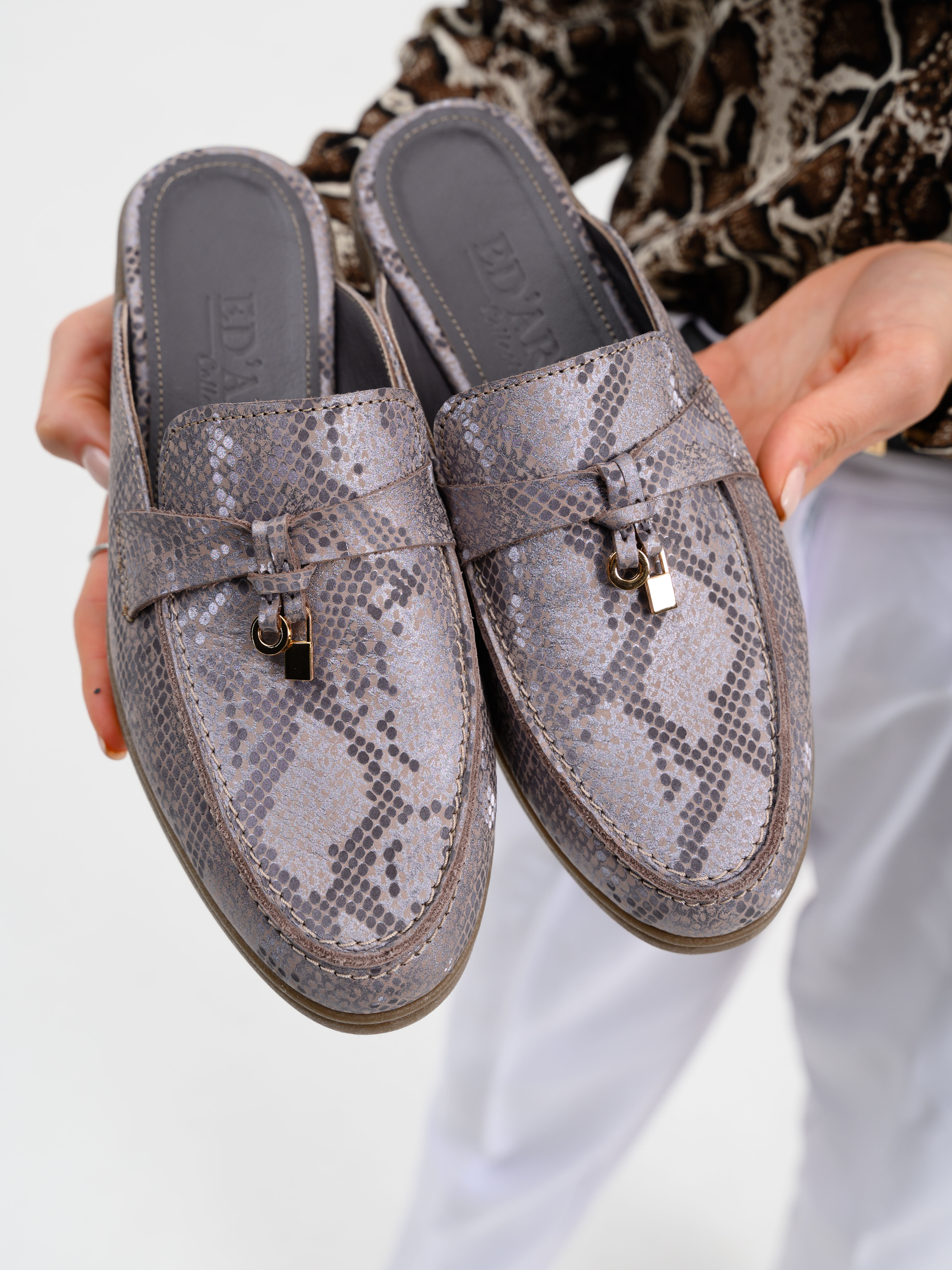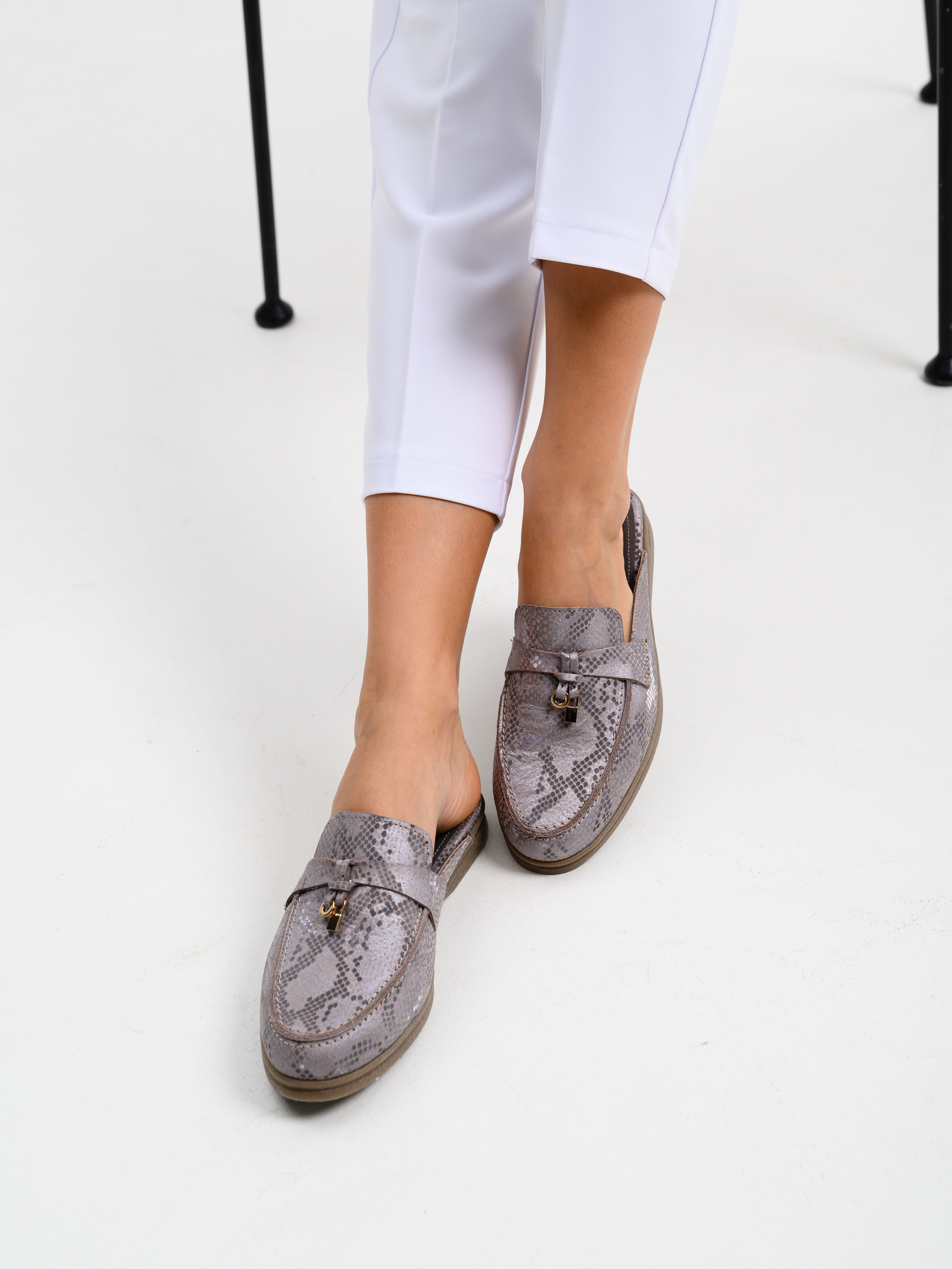 Мюли кожаные с принтом змеи