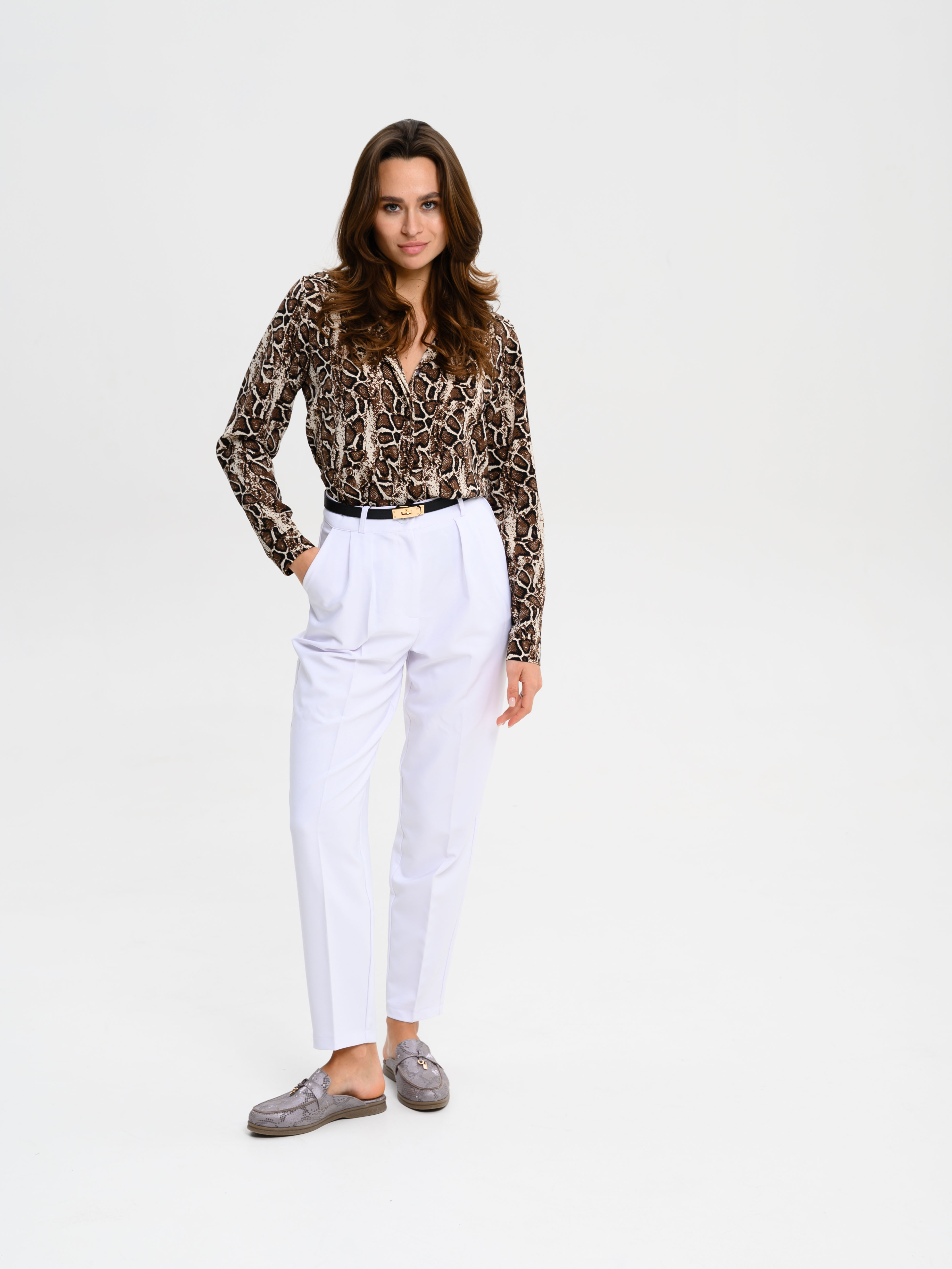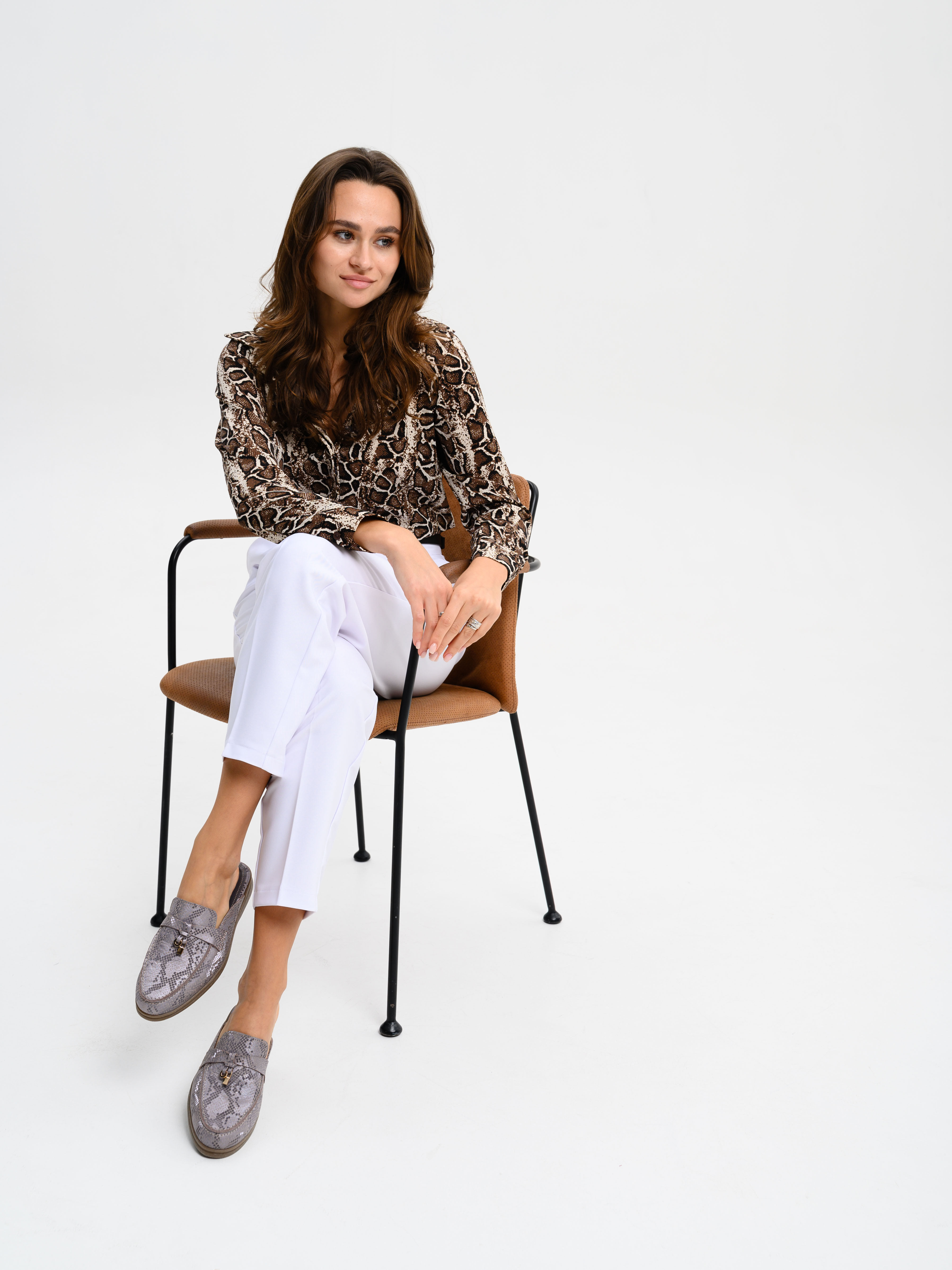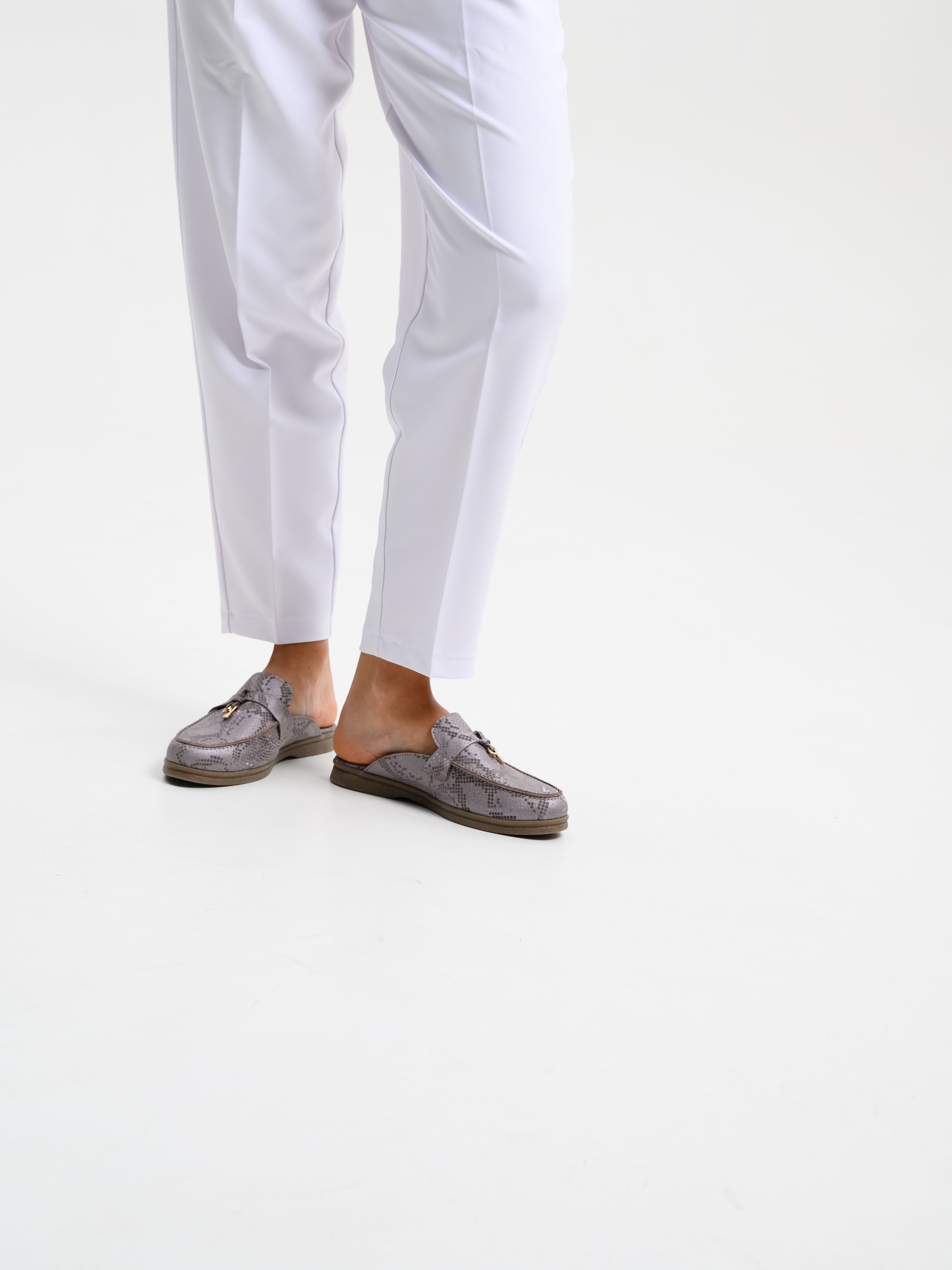 Мюли кожаные с принтом змеи