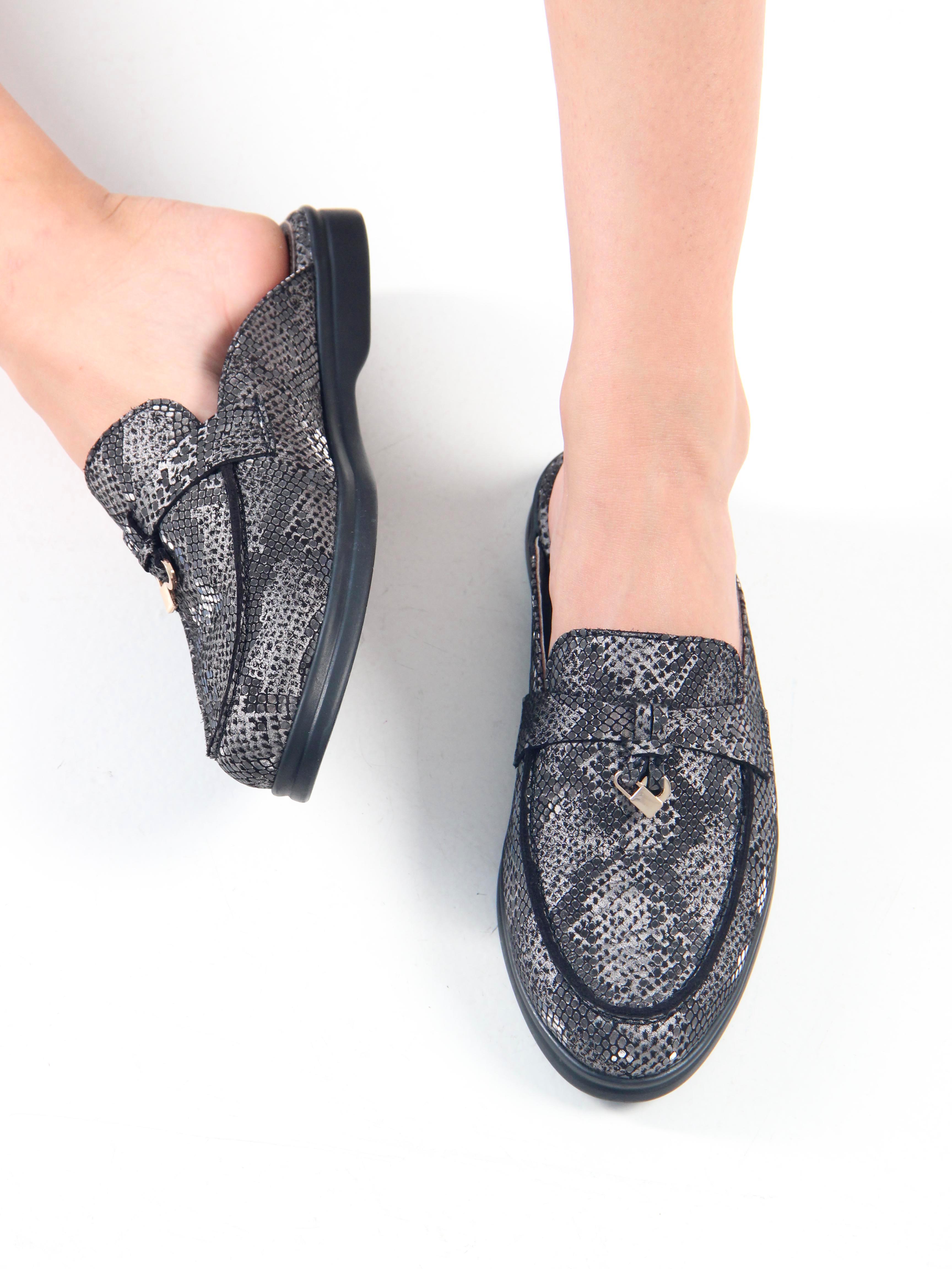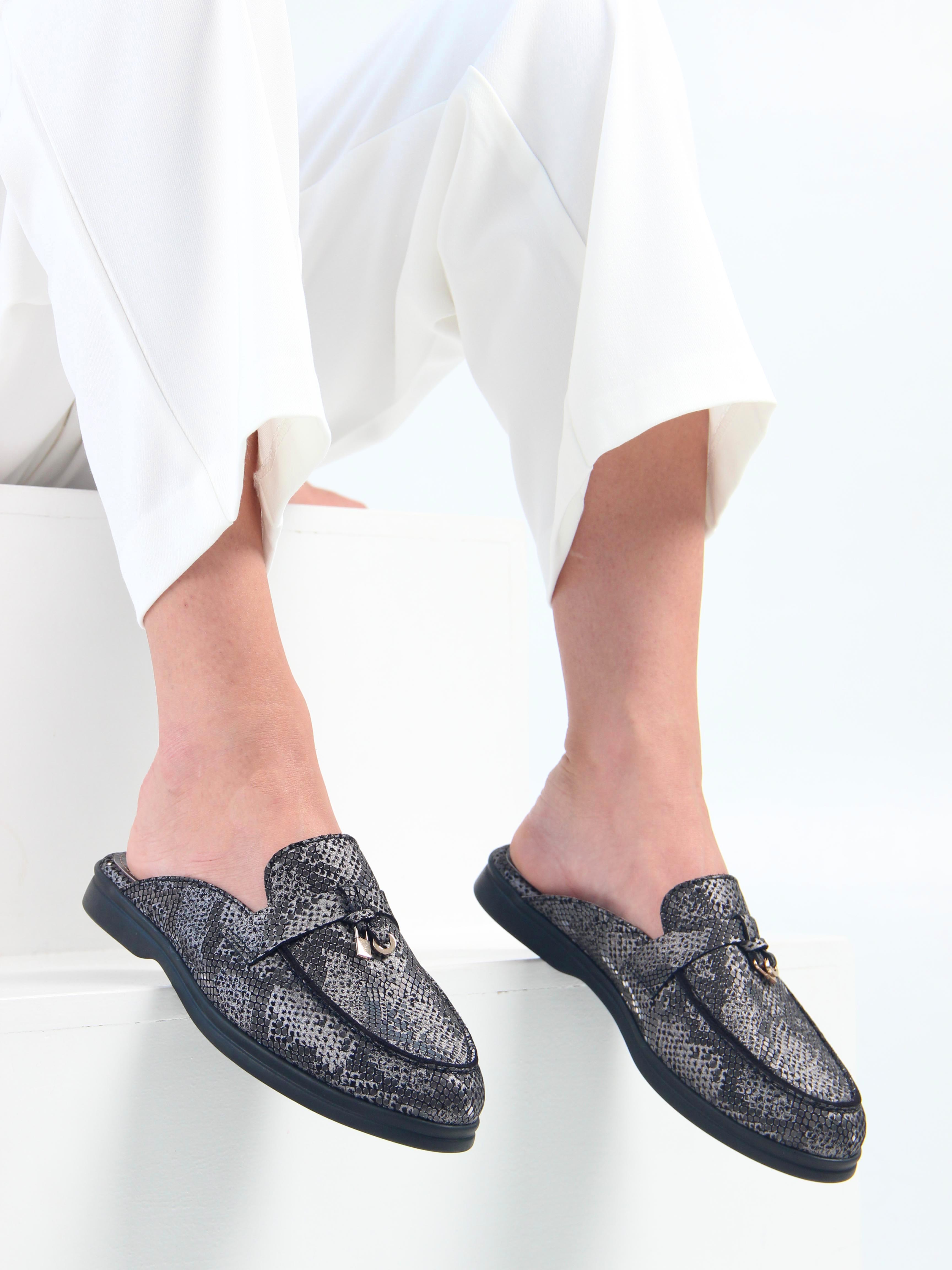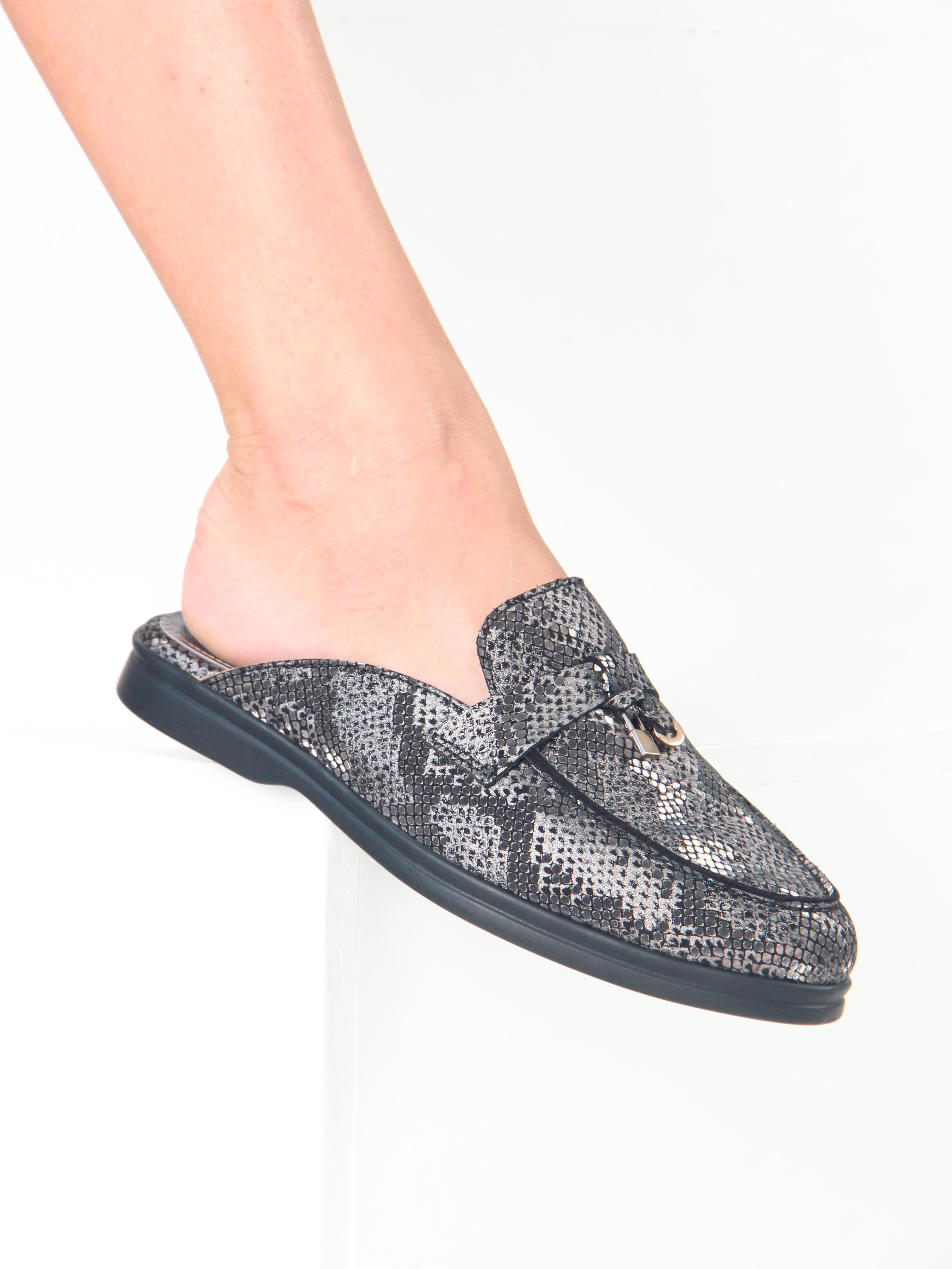 Мюли кожаные с принтом змеи