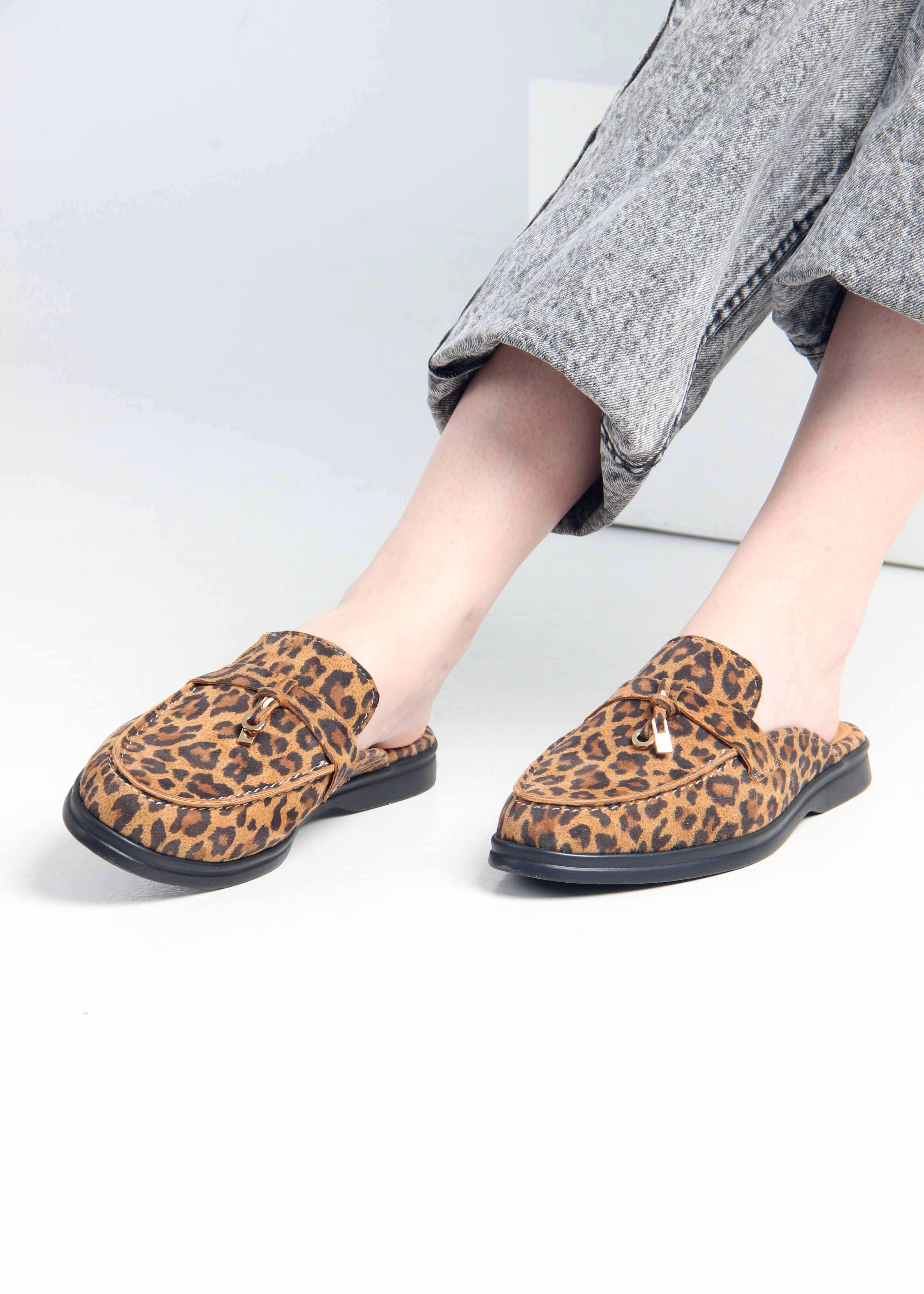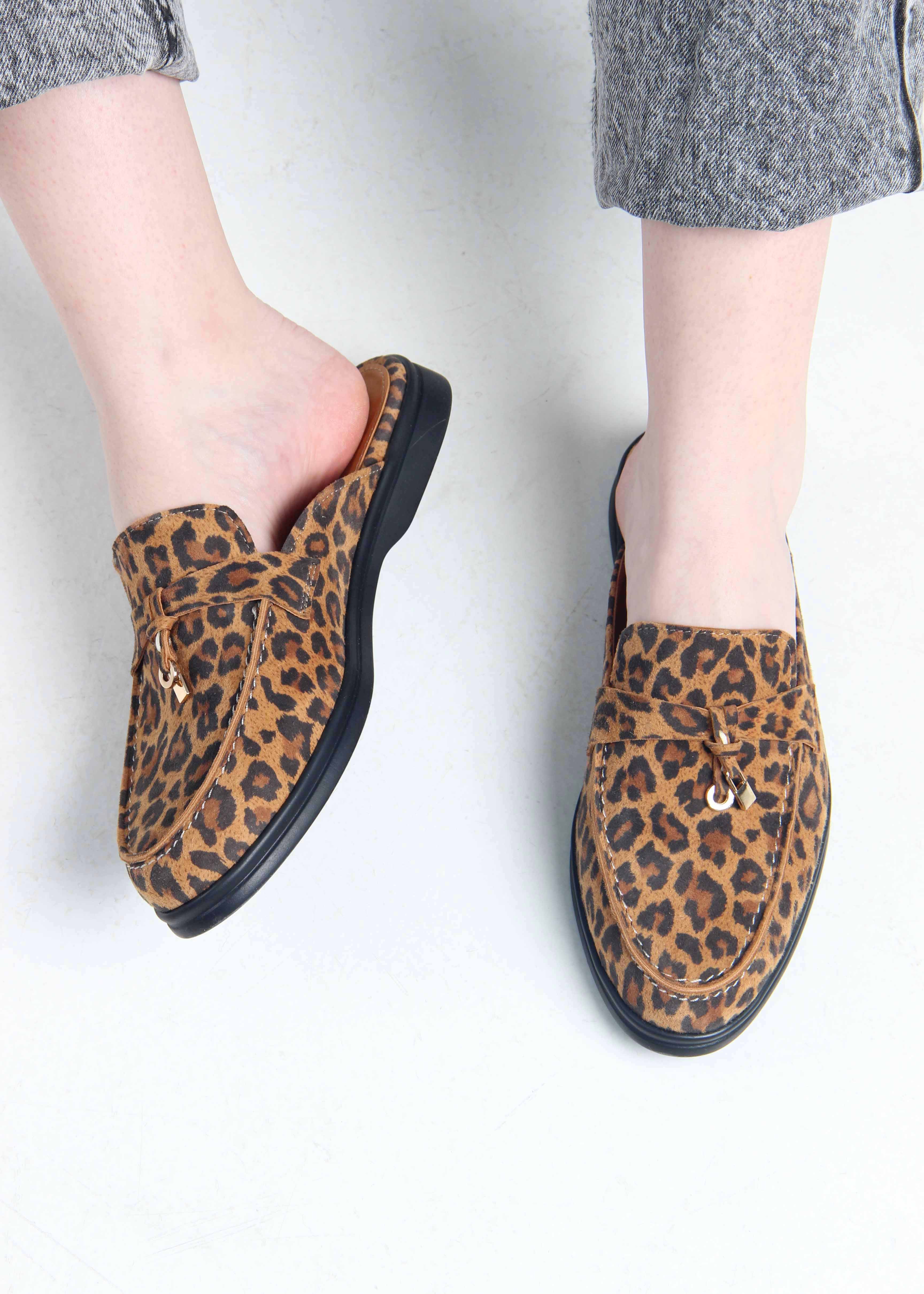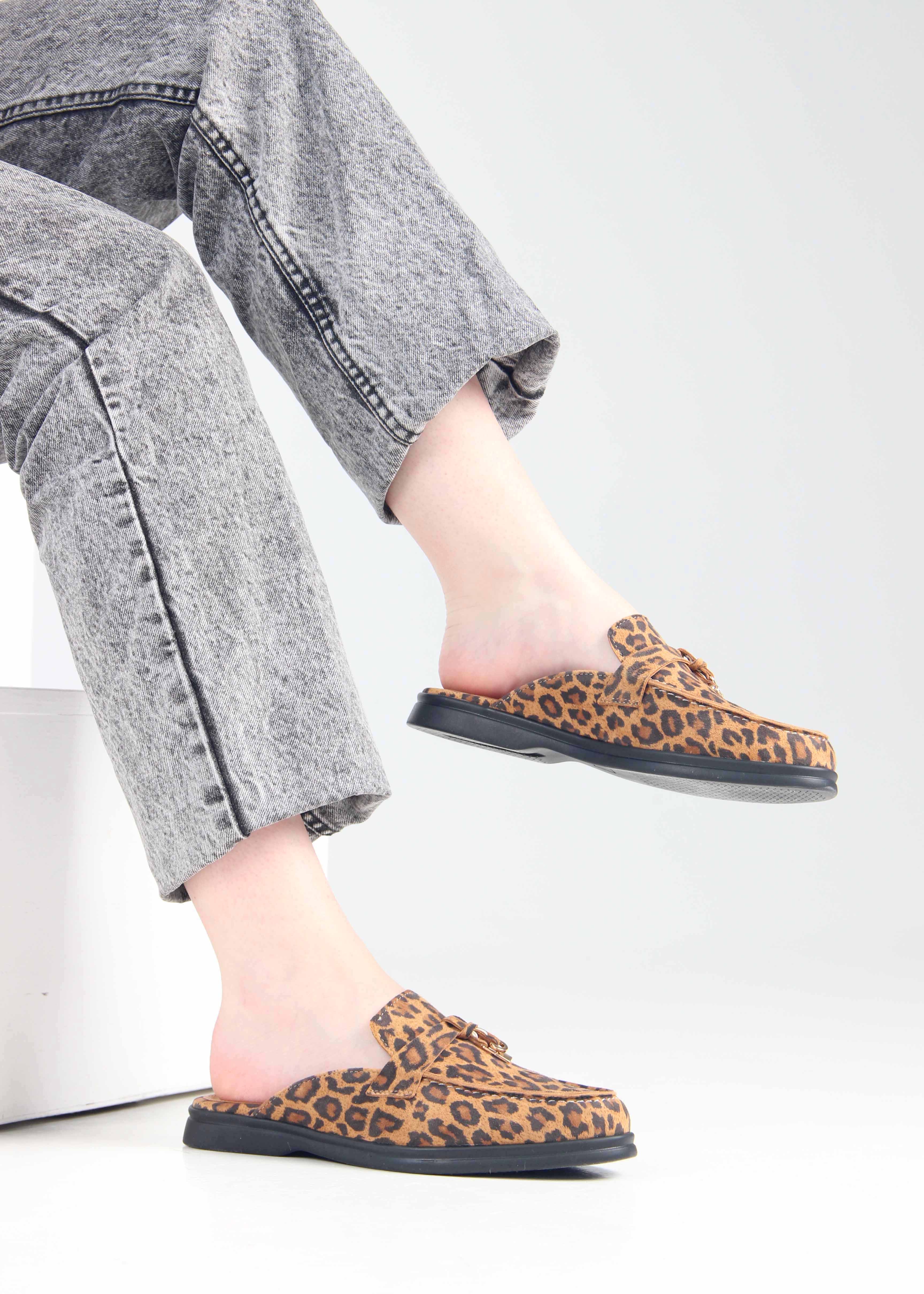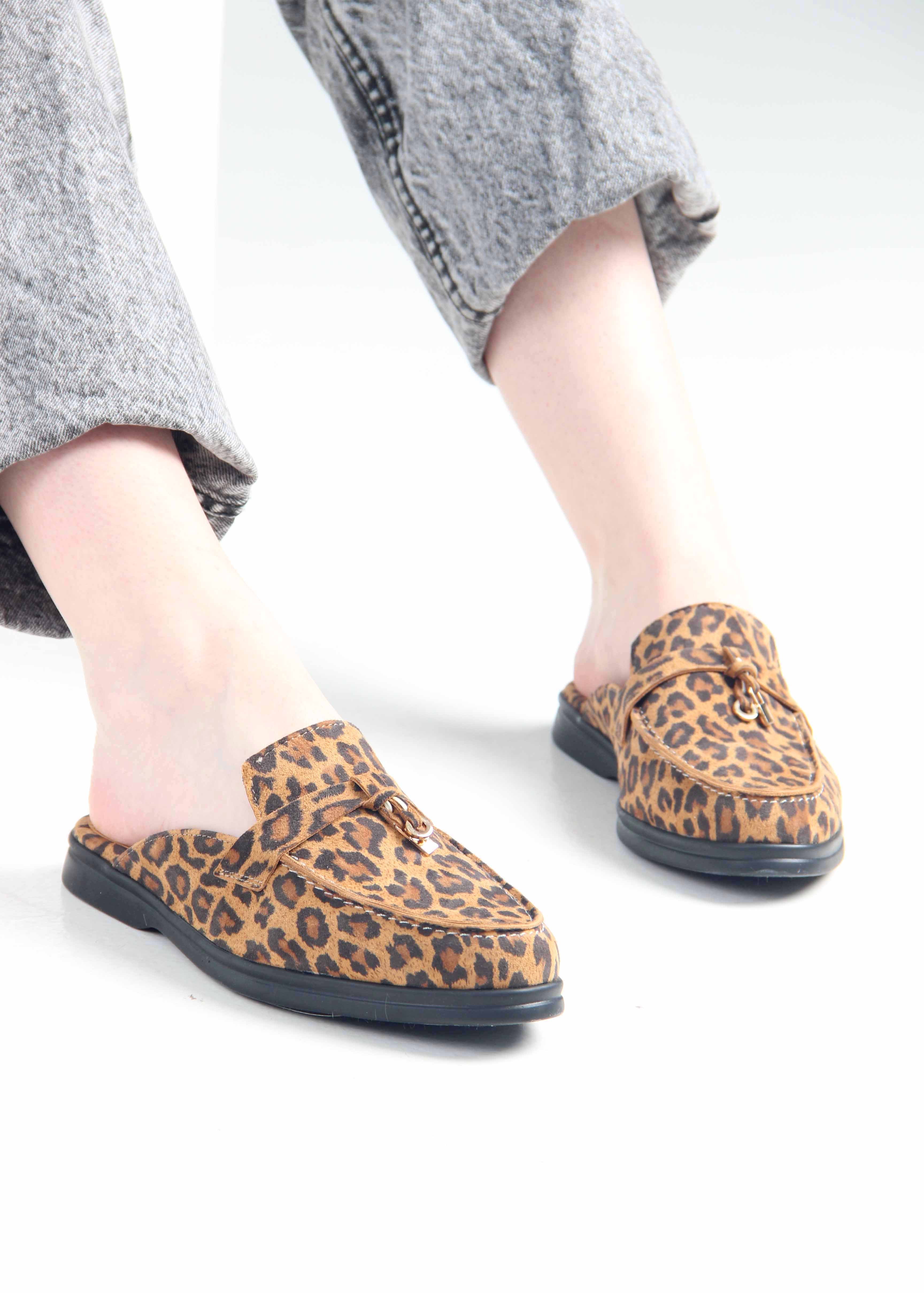 Мюли коричневые с принтом леопард