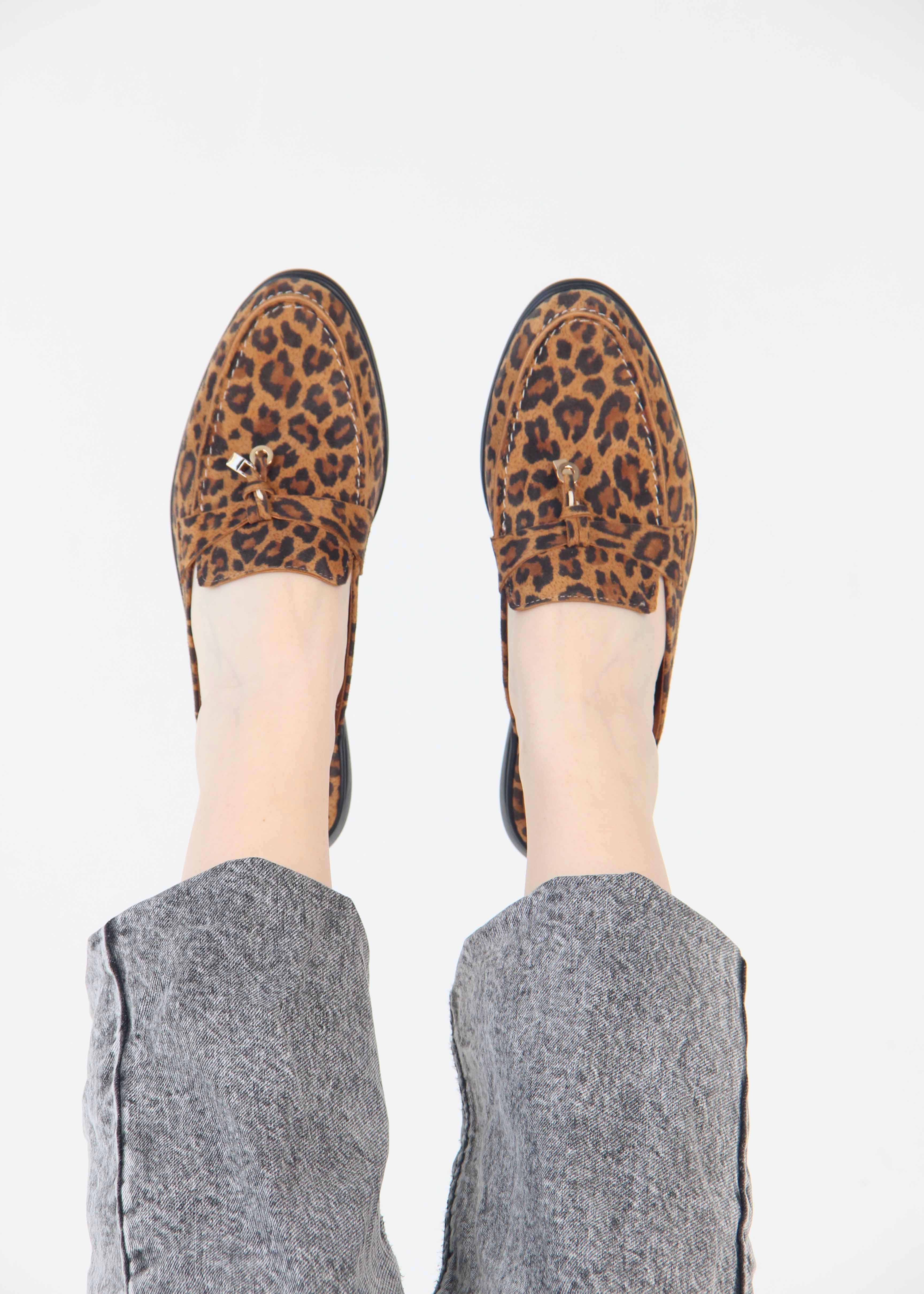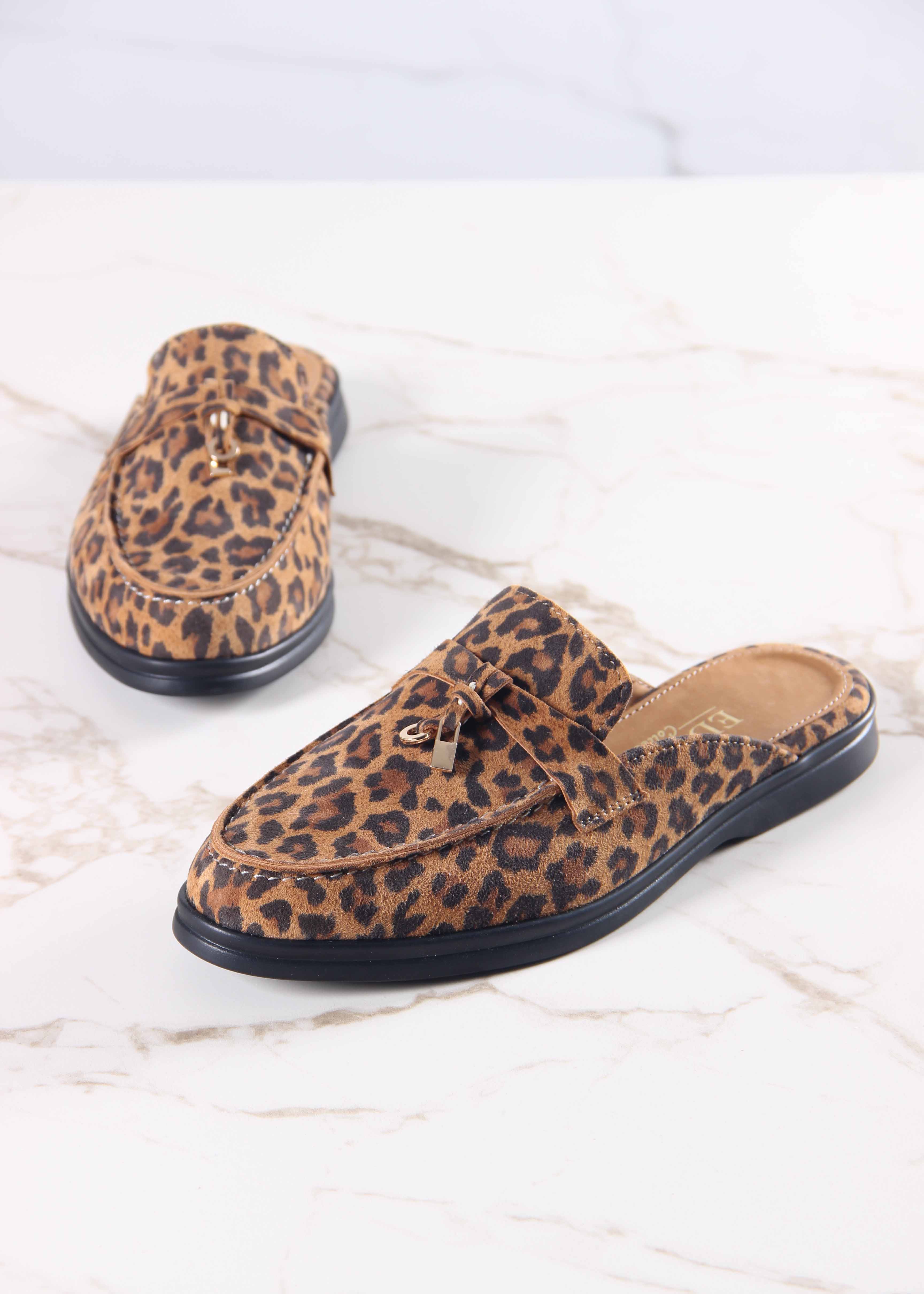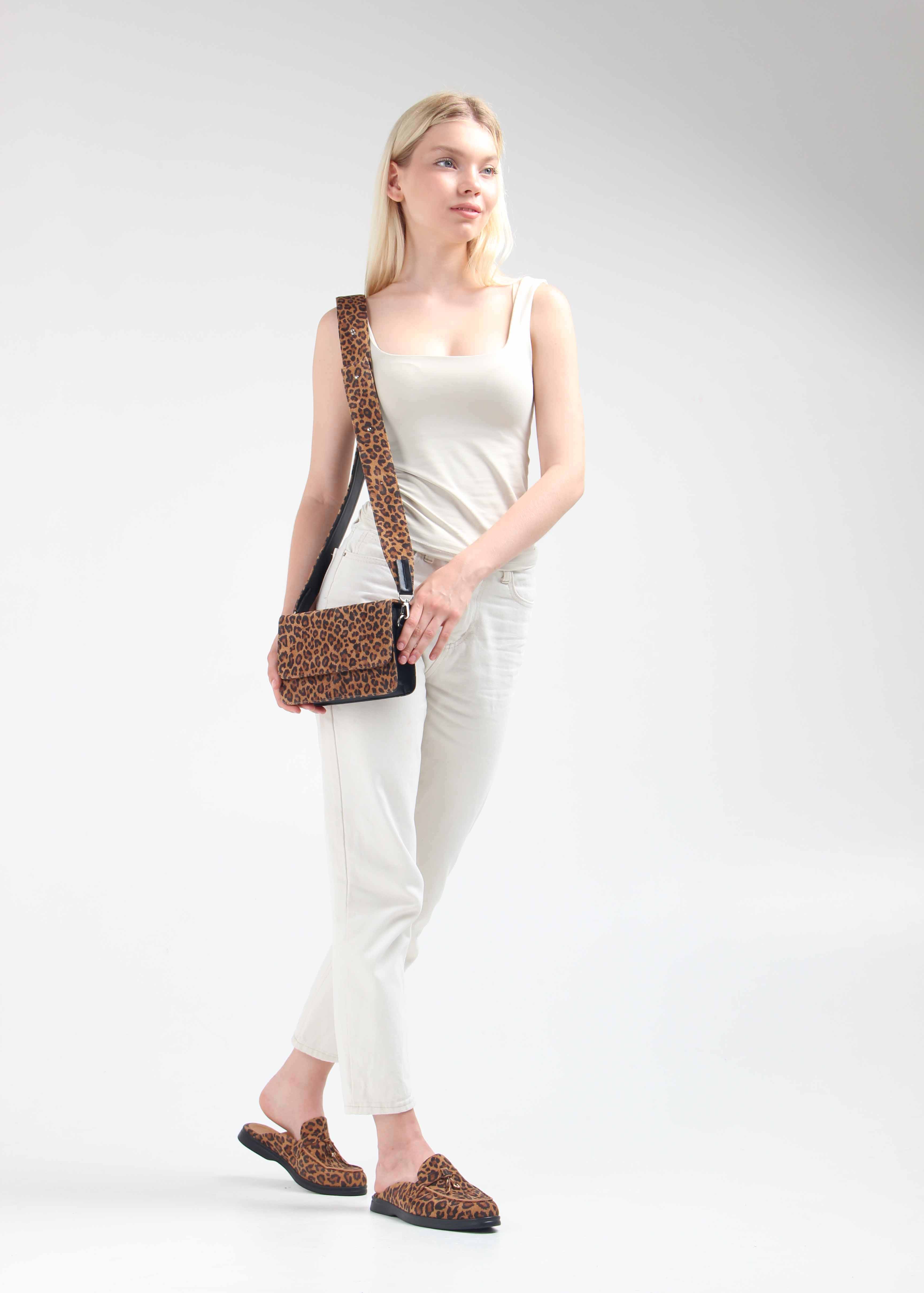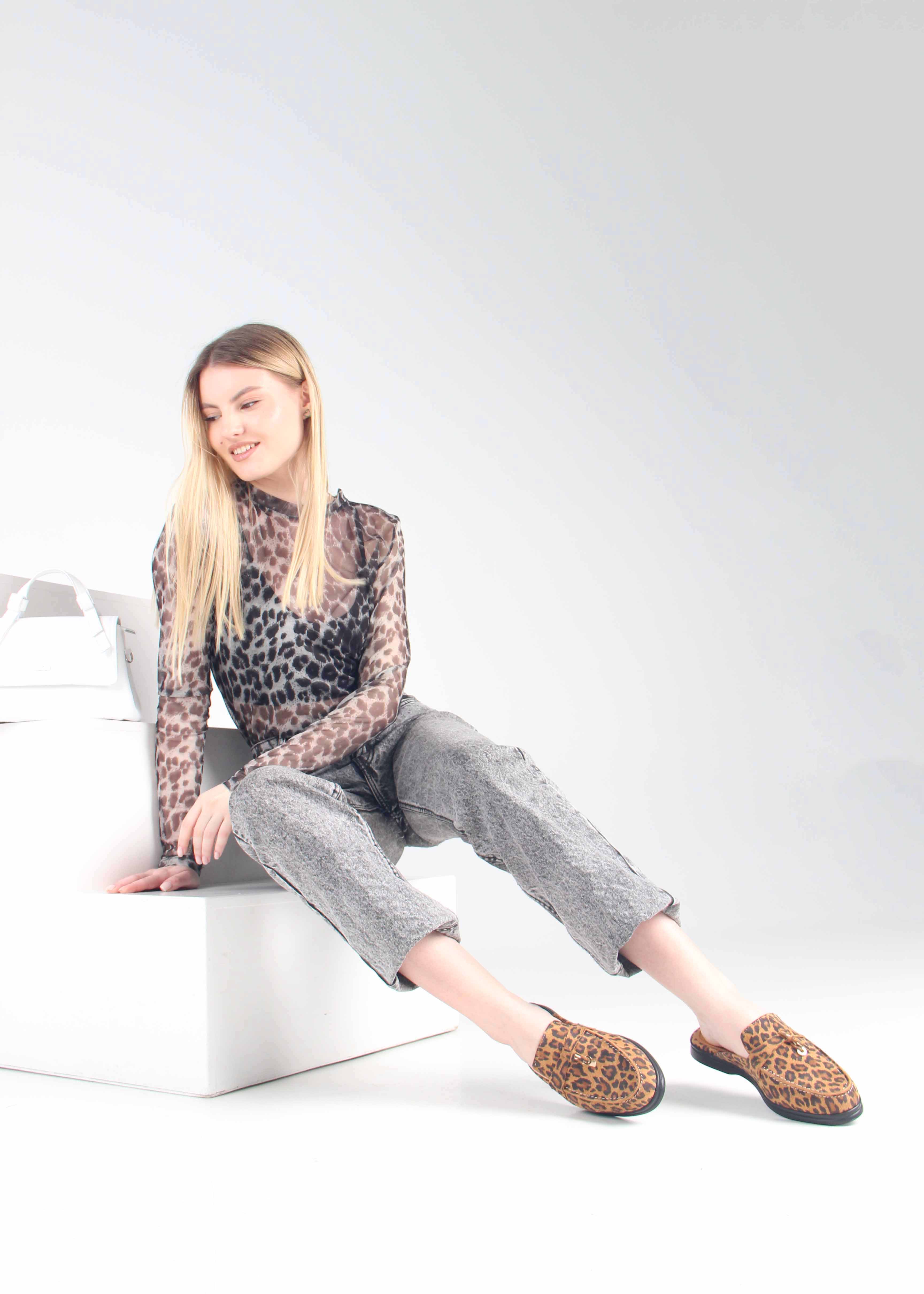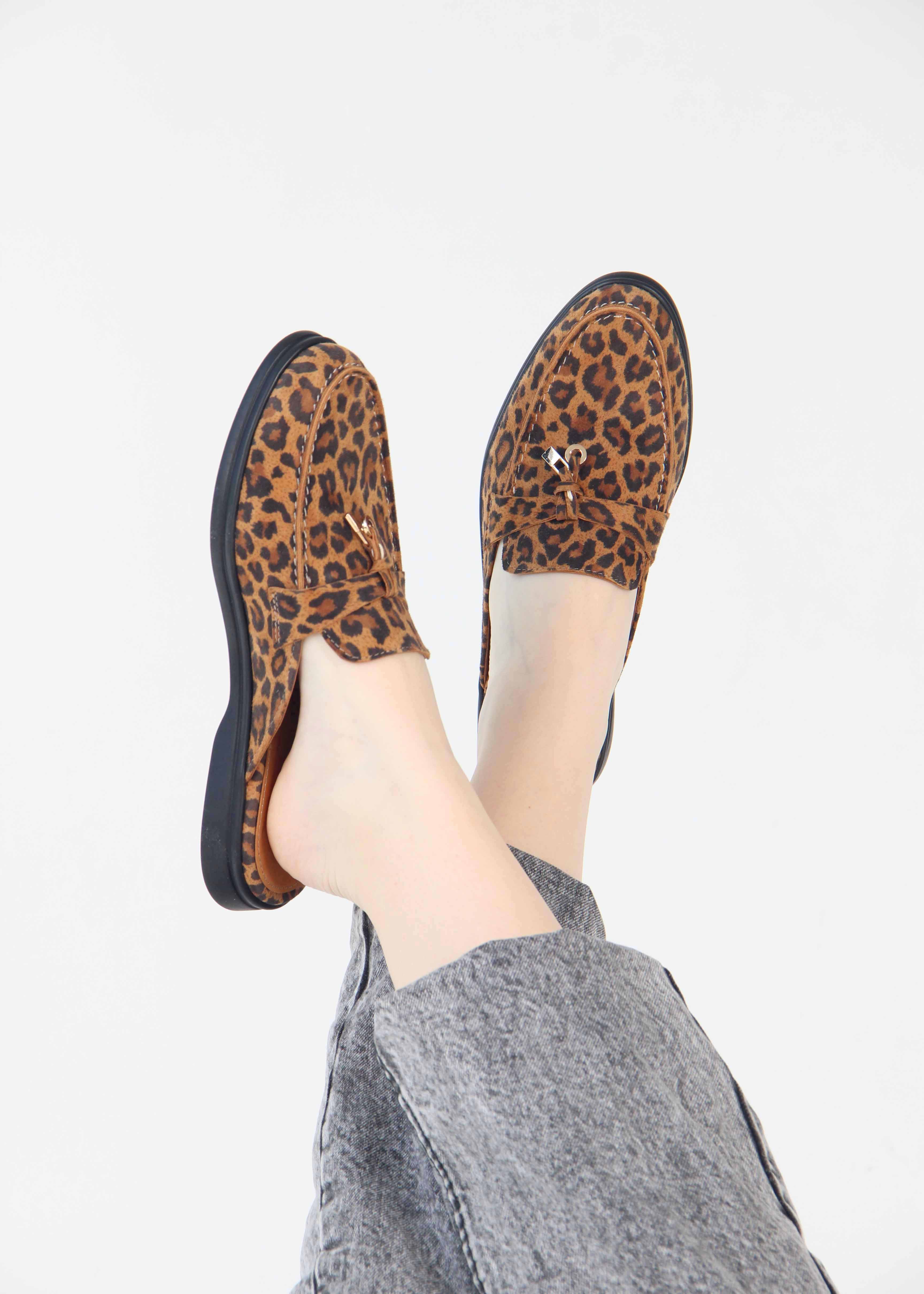 Мюли коричневые с принтом леопард