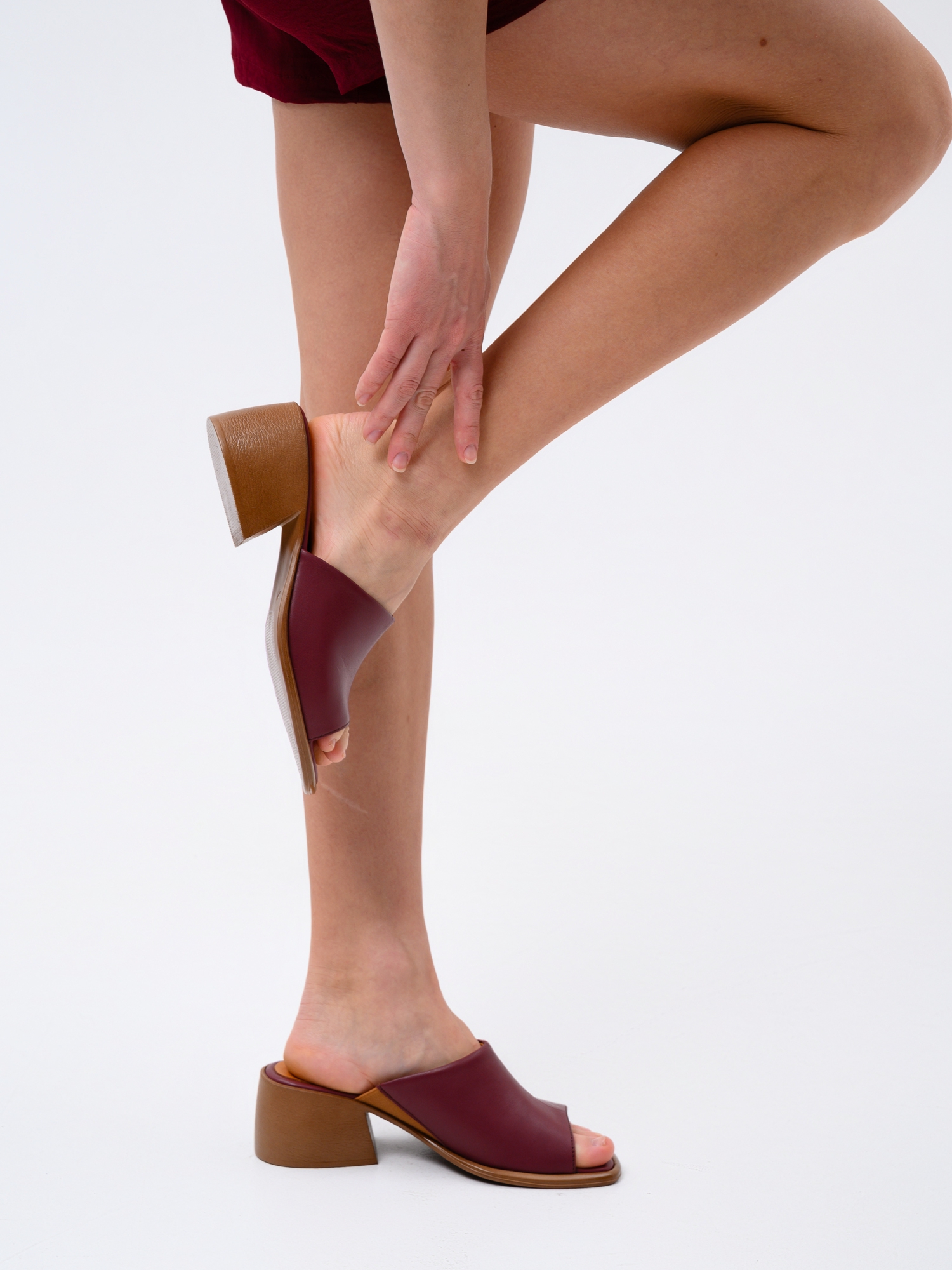 Сабо бордовые кожаные