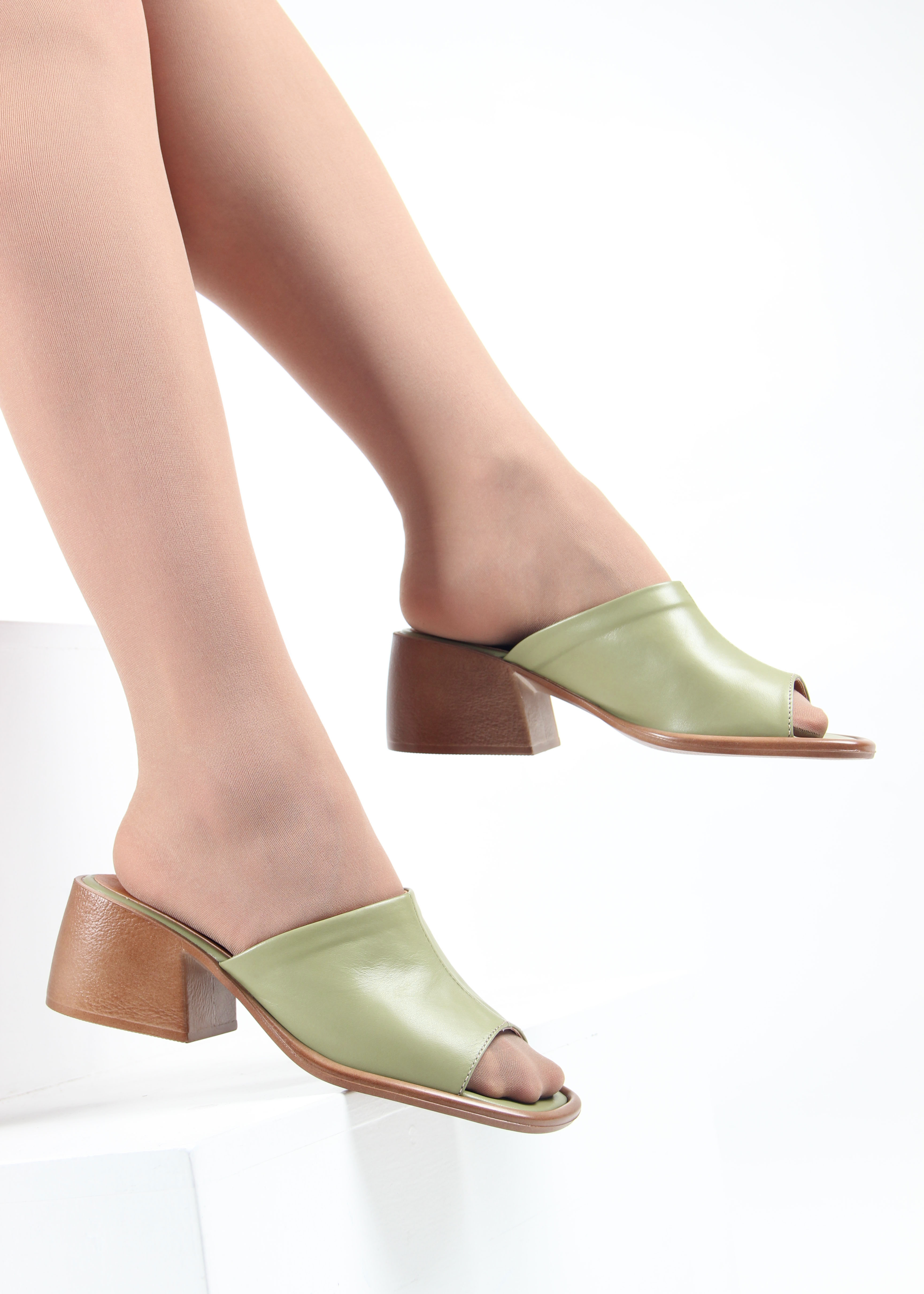 Сабо кожаные зеленые