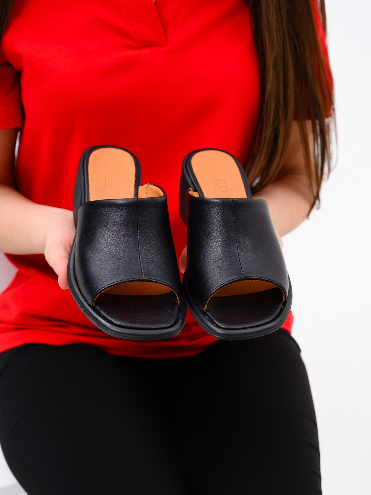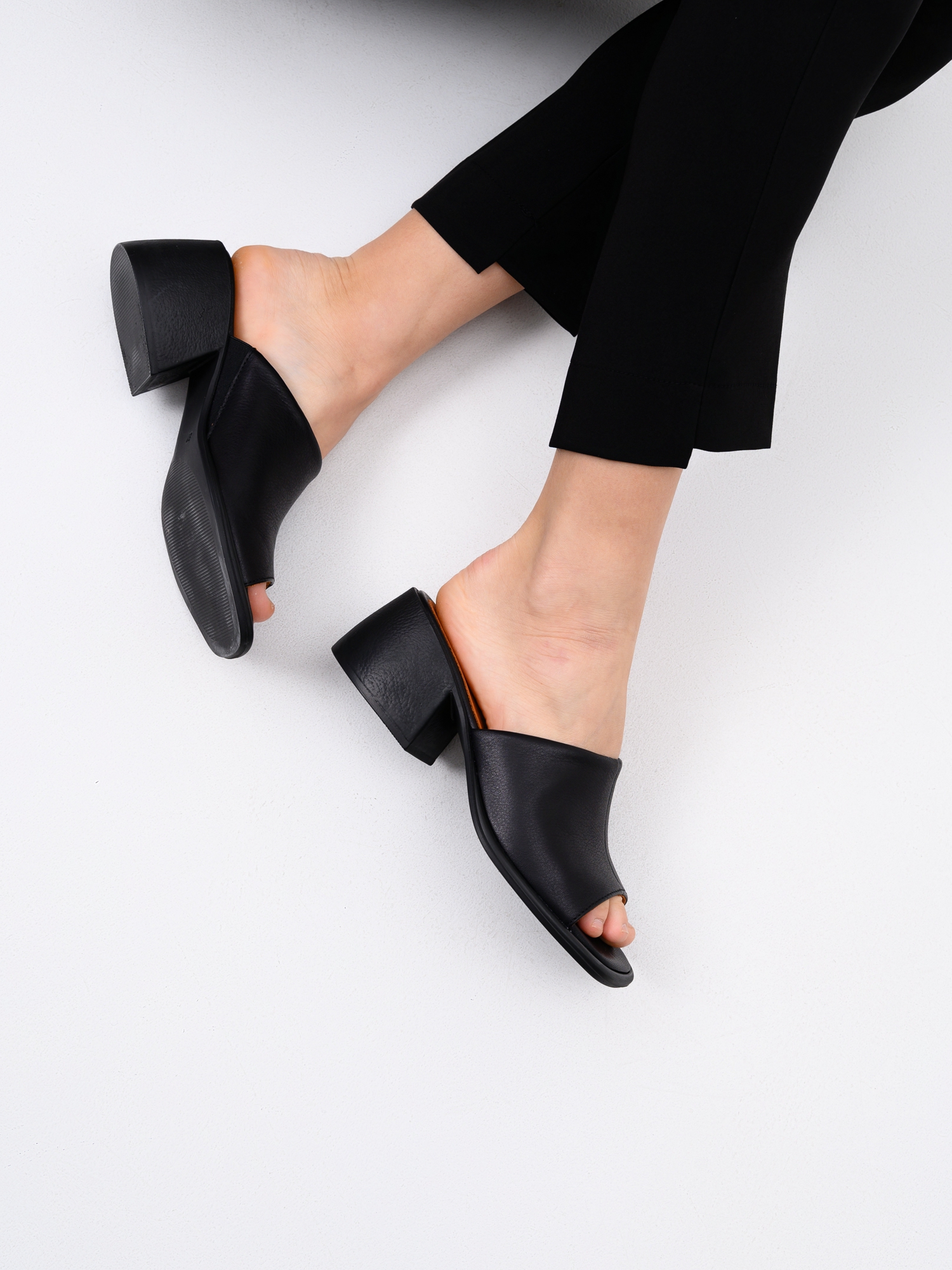 Сабо кожаные черные