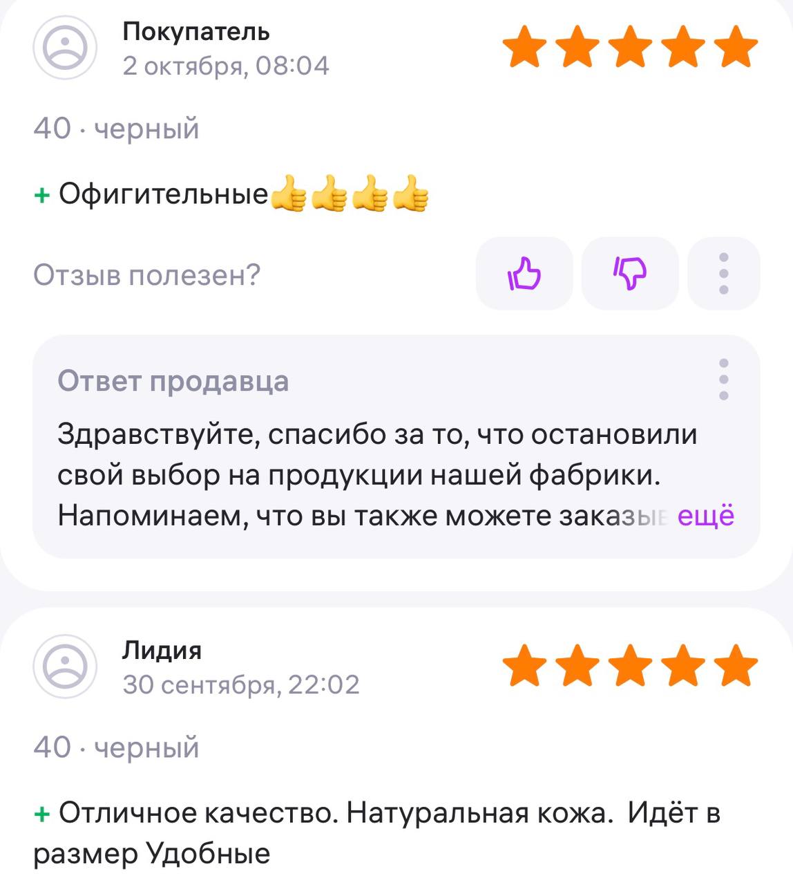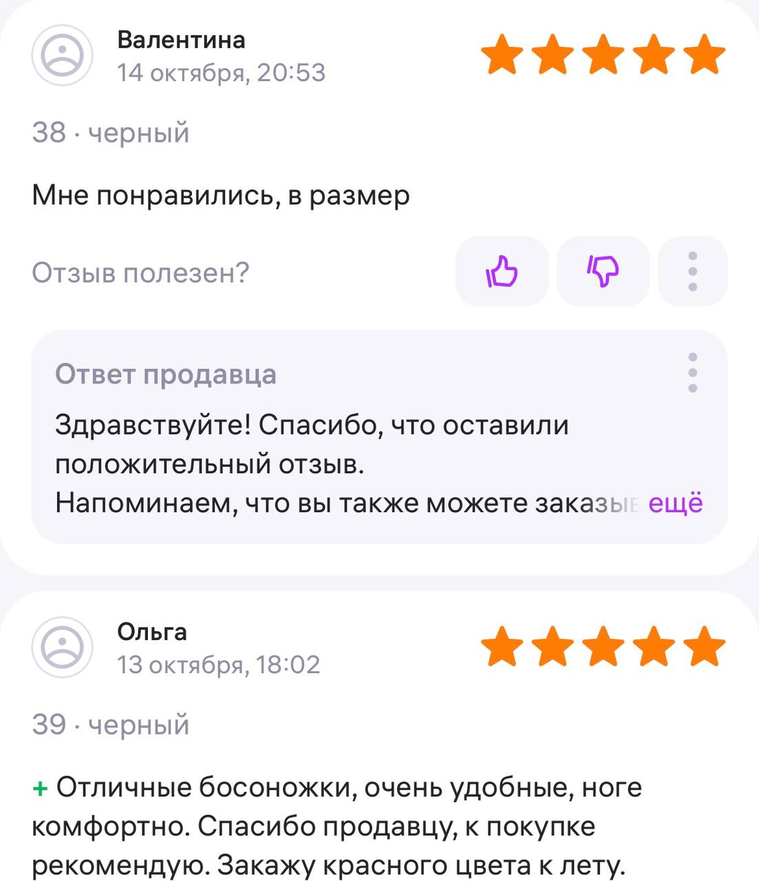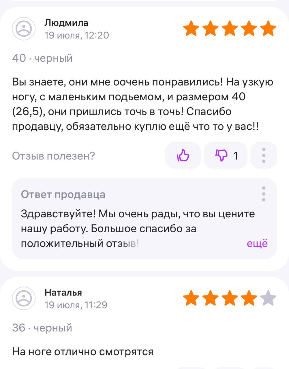 Ответ продавца