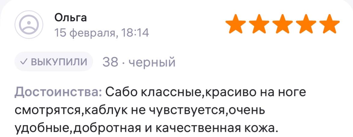 Ботинки хорошие, кажа мягкая, размеру соответствуют, но на пятке пришита заплатка из какой то пленки блесящей и когда первый раз померла она вся сморщилась и такое впечатление что сейчас лопнет. И я думаю со временем так и будет. Если бы не эта заплатка взяла бы удобные и мягкие