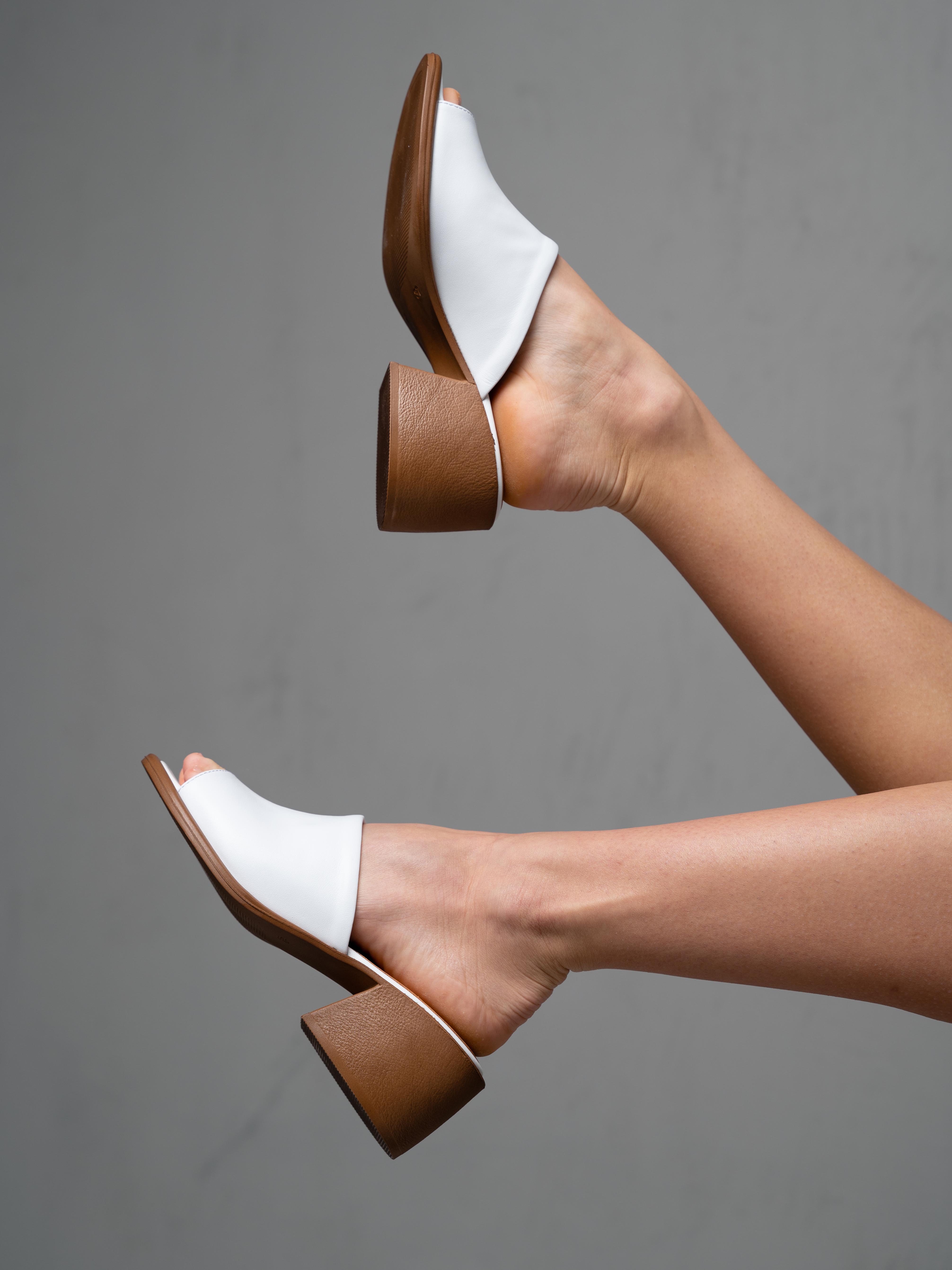Сабо кожаные белые