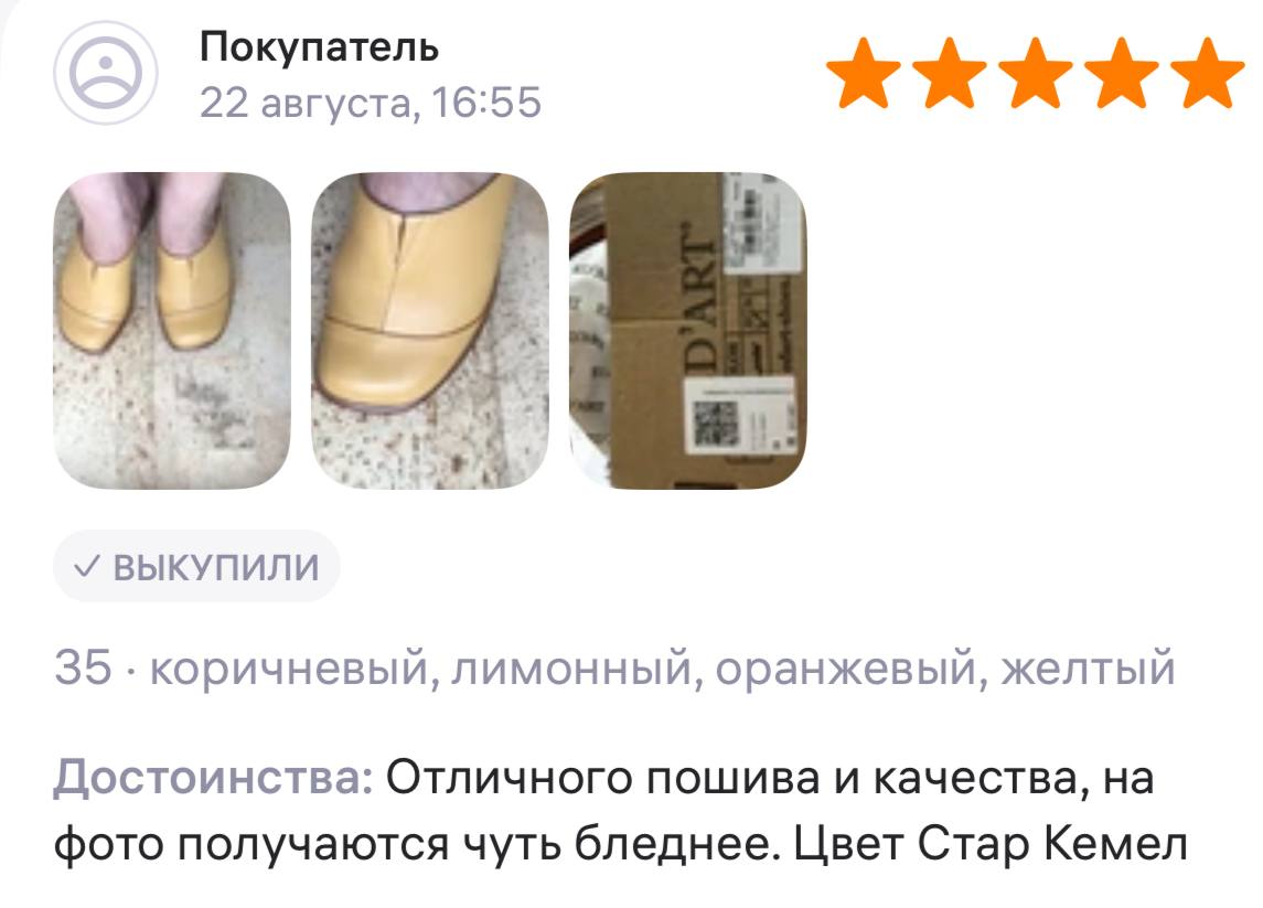 Ботинки хорошие, кажа мягкая, размеру соответствуют, но на пятке пришита заплатка из какой то пленки блесящей и когда первый раз померла она вся сморщилась и такое впечатление что сейчас лопнет. И я думаю со временем так и будет. Если бы не эта заплатка взяла бы удобные и мягкие