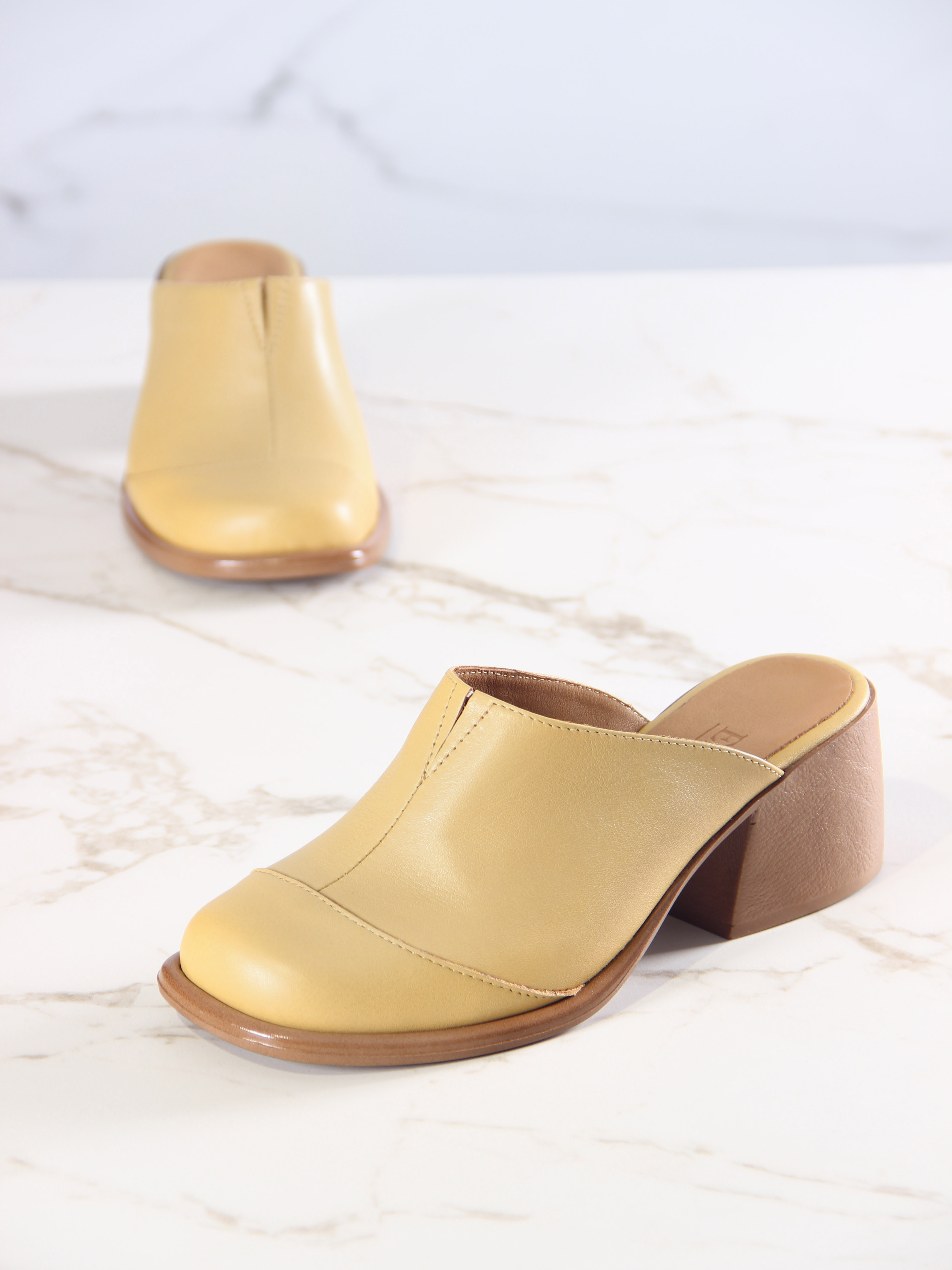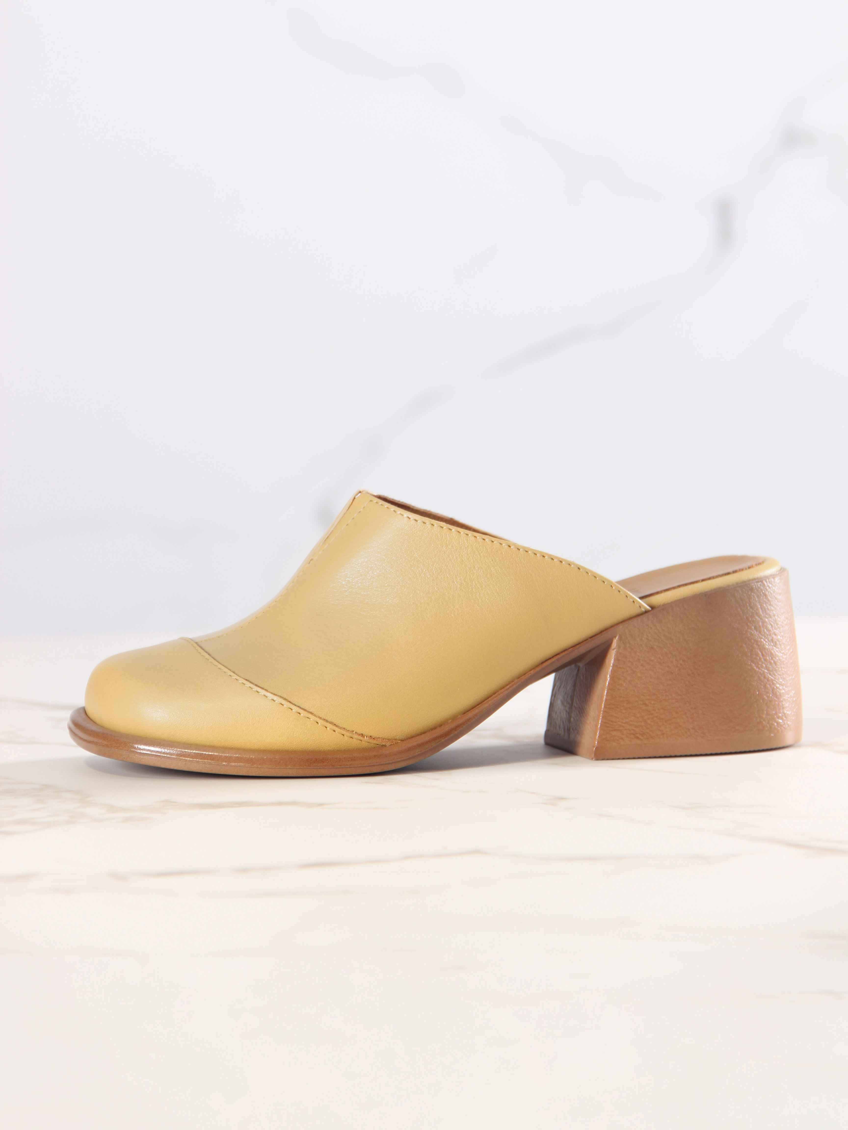 Сабо кожаные желтые