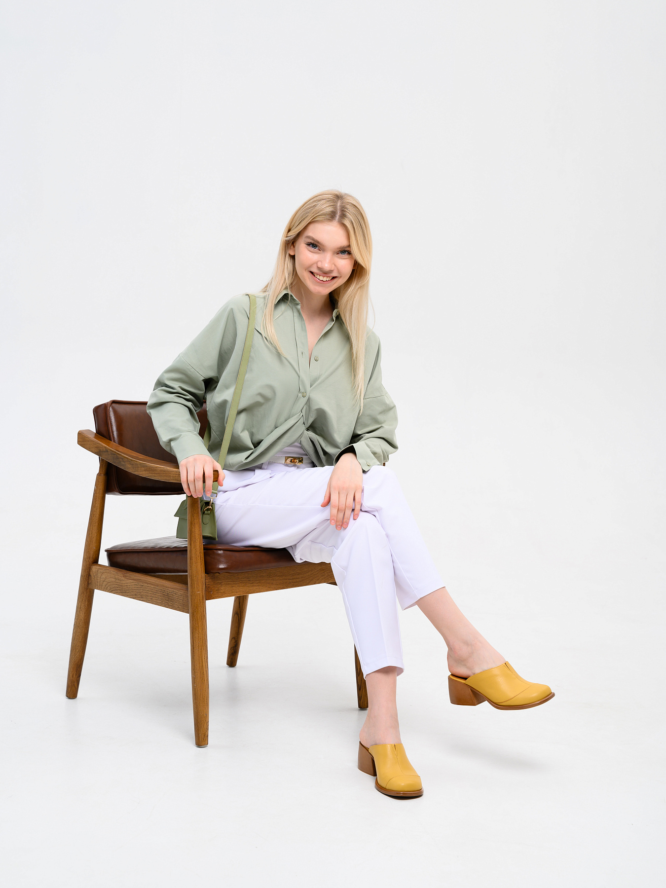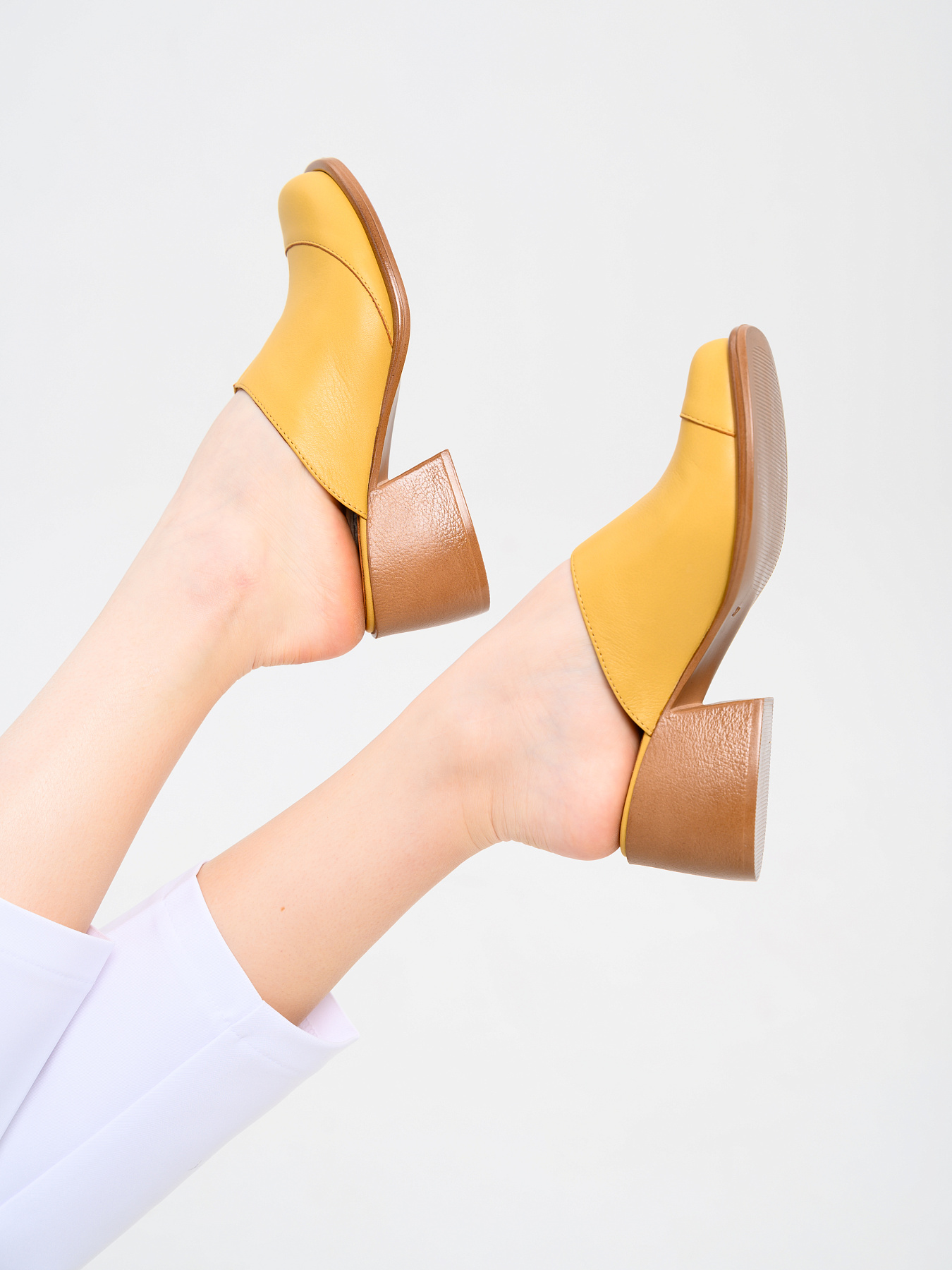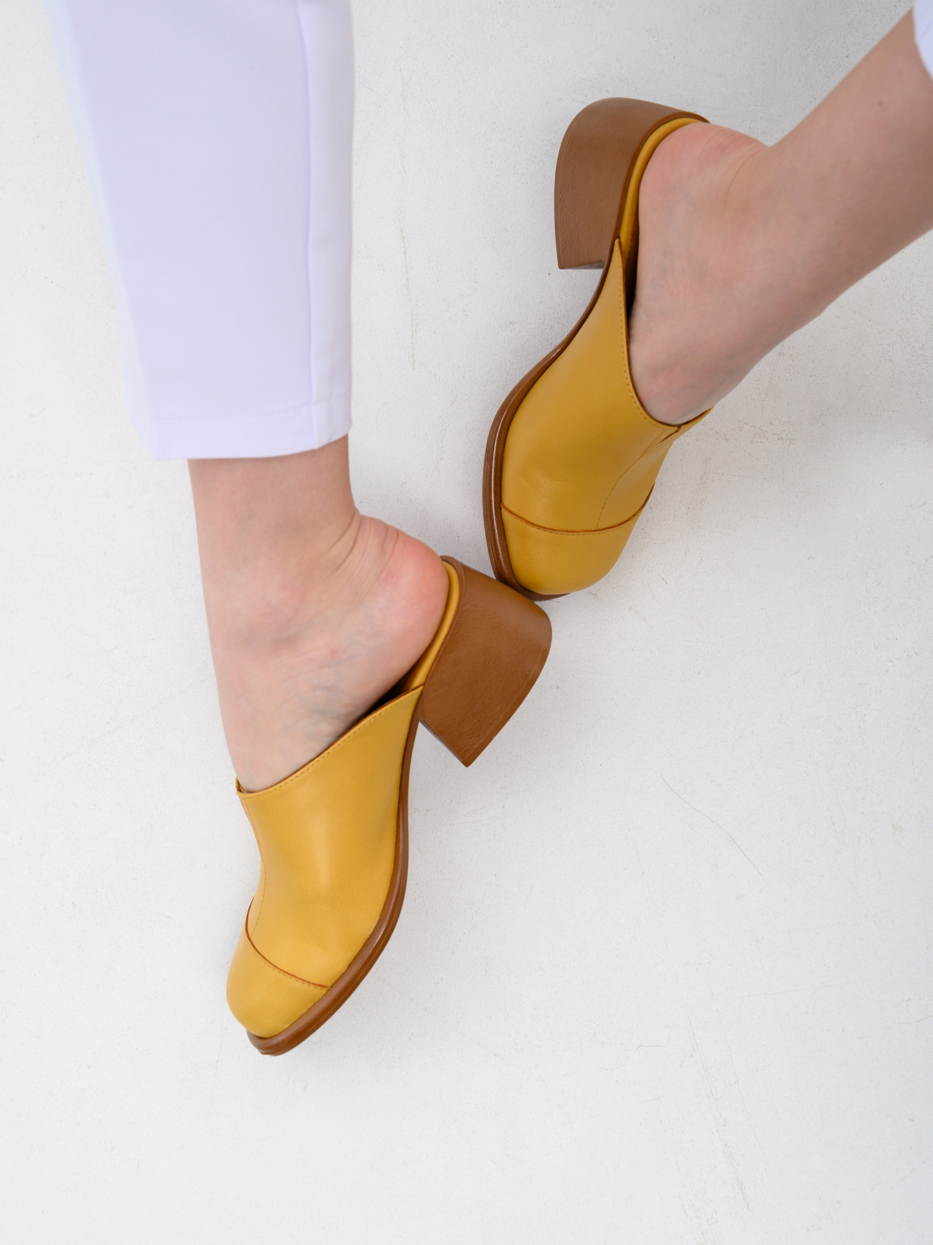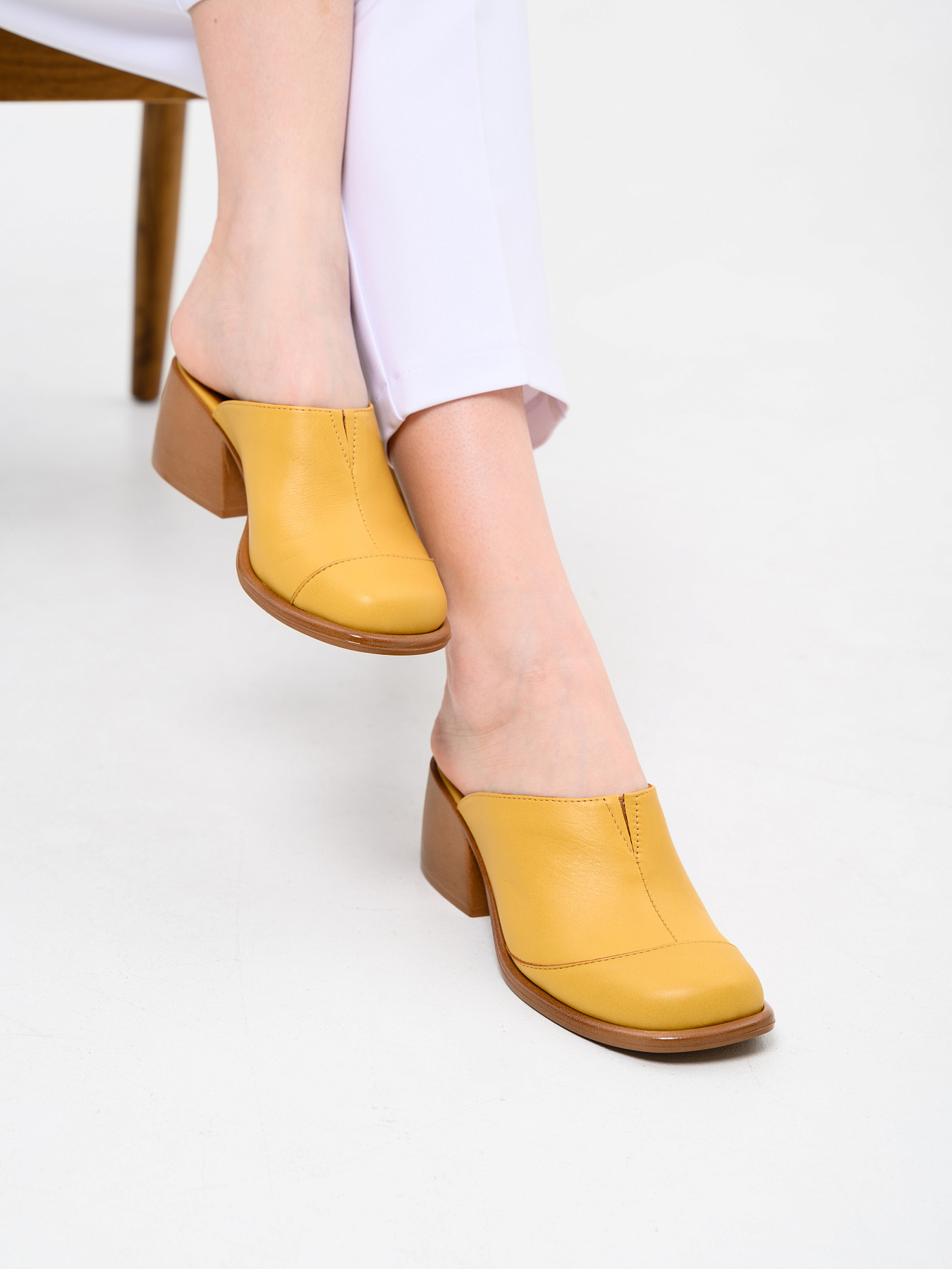 Сабо кожаные желтые