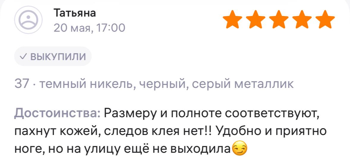 Задайте свой вопрос первым.Мы подскажем всё о посадке, размере и уходе за обувью