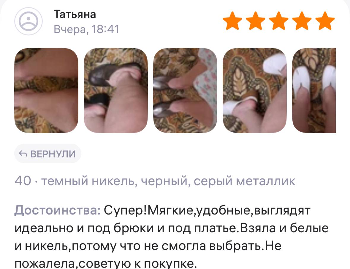 Ботинки хорошие, кажа мягкая, размеру соответствуют, но на пятке пришита заплатка из какой то пленки блесящей и когда первый раз померла она вся сморщилась и такое впечатление что сейчас лопнет. И я думаю со временем так и будет. Если бы не эта заплатка взяла бы удобные и мягкие