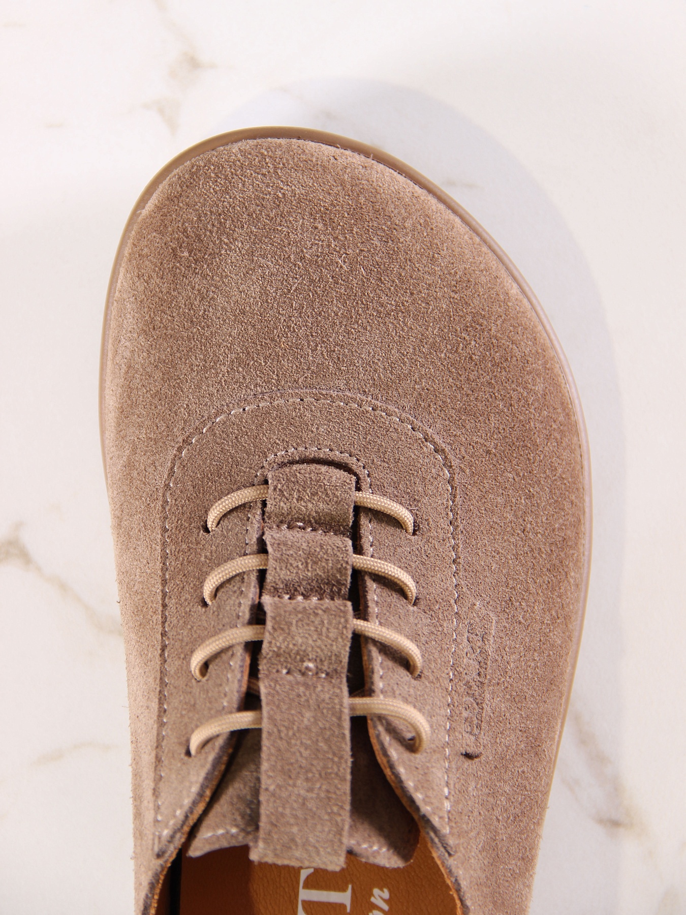 Туфли босоногие замшевые коричневые с перфорацией